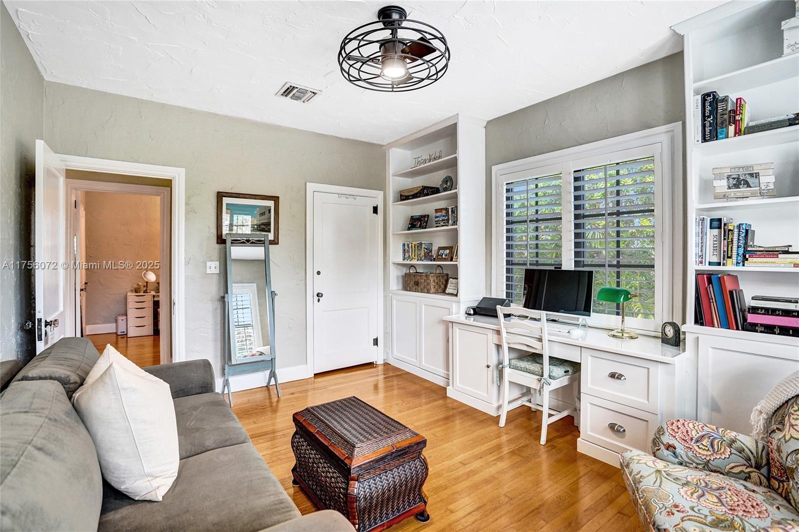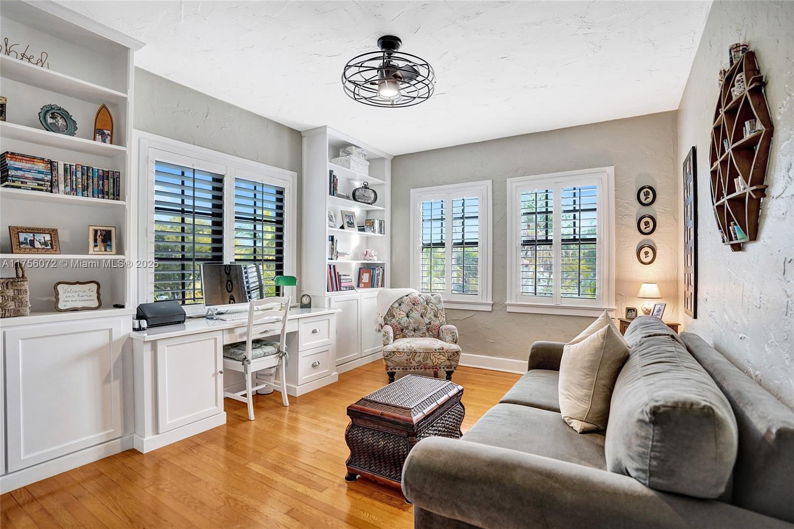 Nestled on a coveted corner lot in the heart of Flamingo Park, this 1925 gem blends timeless charm with modern updates. This turn-key home has stunning original wood floors, ALL-impact windows and doors, and a newer roof featuring elegant clay barrel tiles--plus, an arched mahogany front door with original screen. A beautifully rebuilt pool, surrounded by a travertine deck, offers a private retreat. Inside, enjoy a sunroom with Cuban tile and pecky cypress ceiling, a grand ornate fireplace, and custom built-ins throughout. The renovated upstairs bath features a clawfoot tub and walk-in shower. The detached guest house above the 2-car garage includes 1 bed, 1 bath, and a bonus room. Extra-wide driveway, landscape lighting, and a Chicago-brick walkway complete this exceptional property.