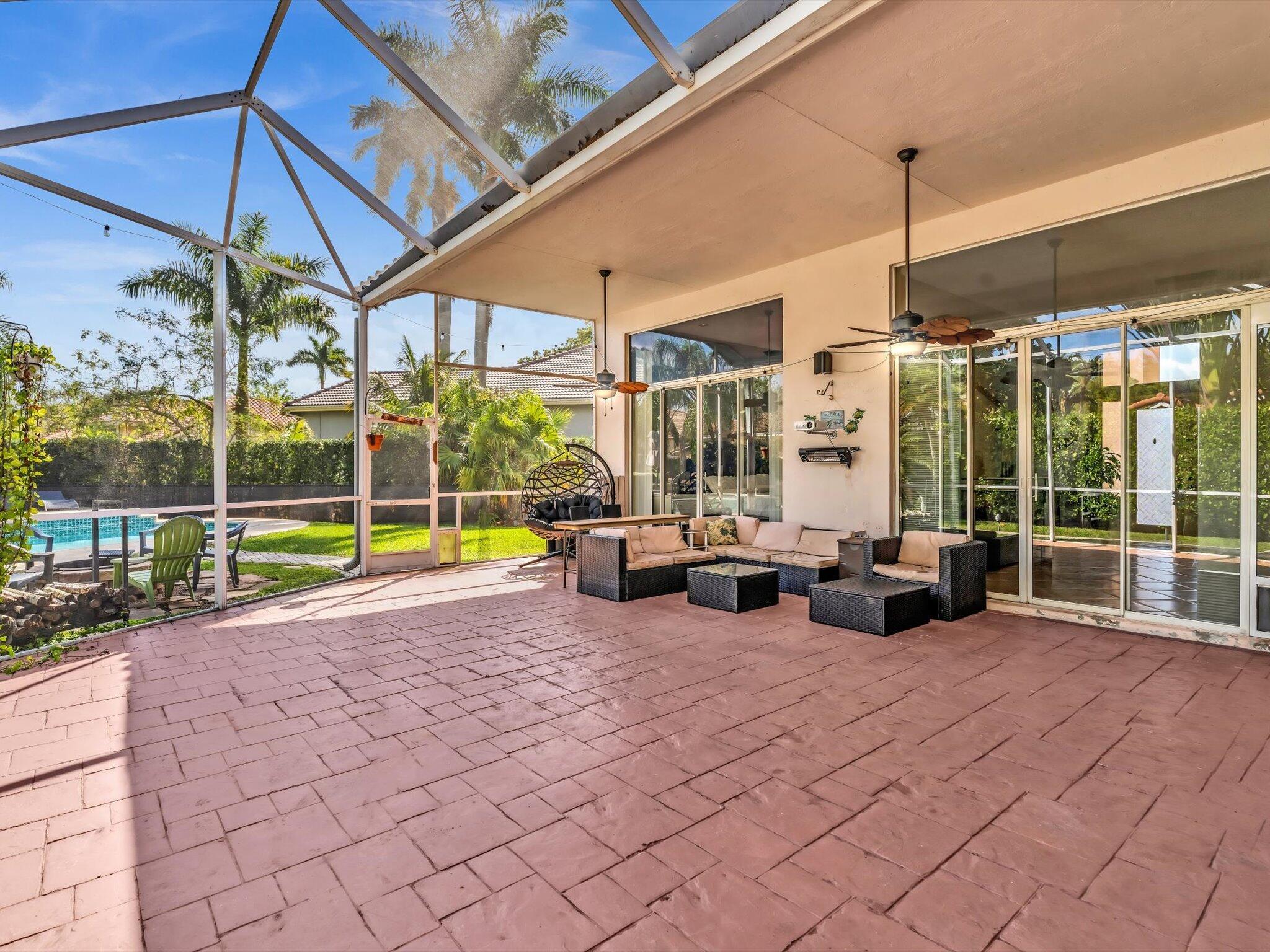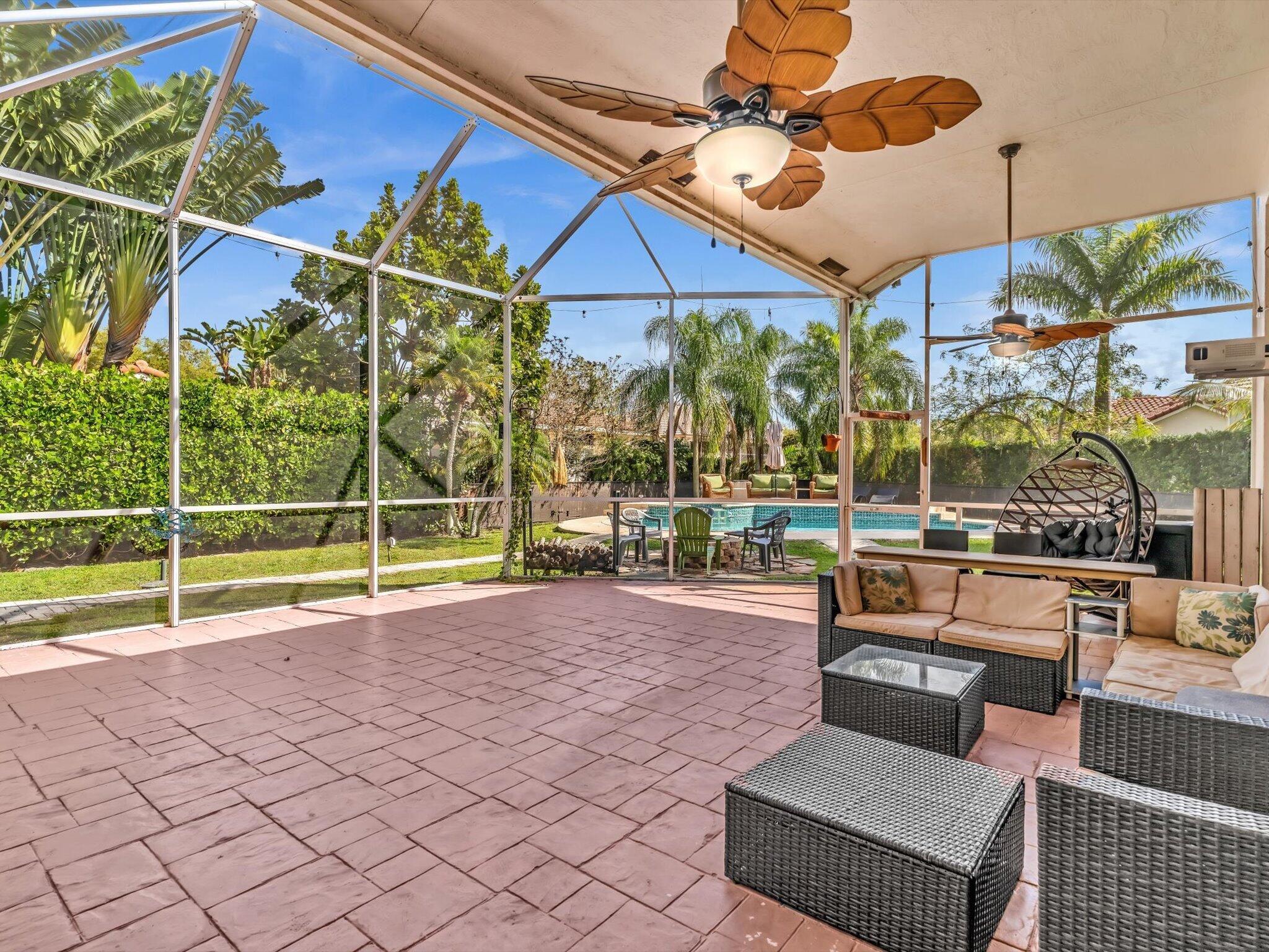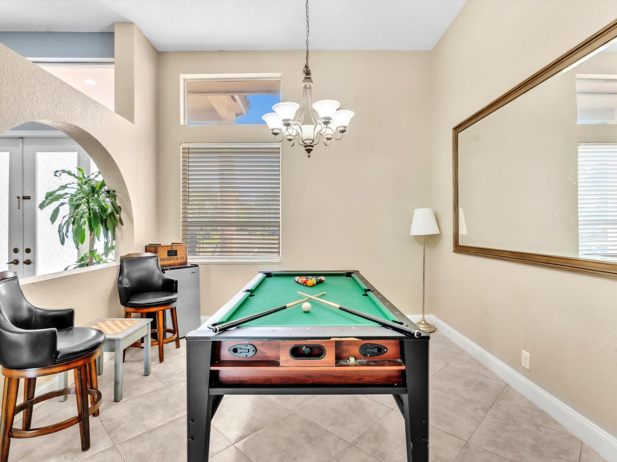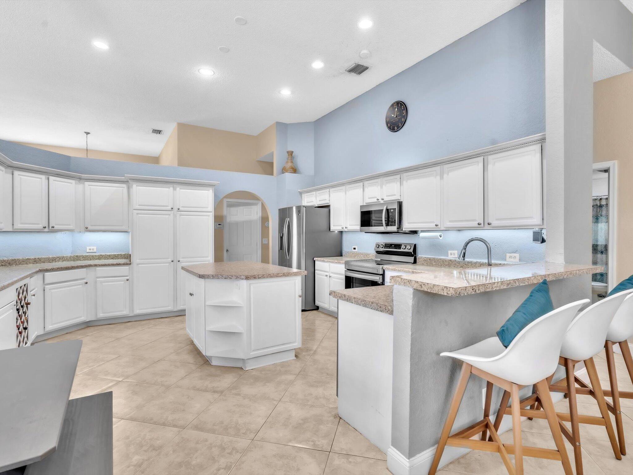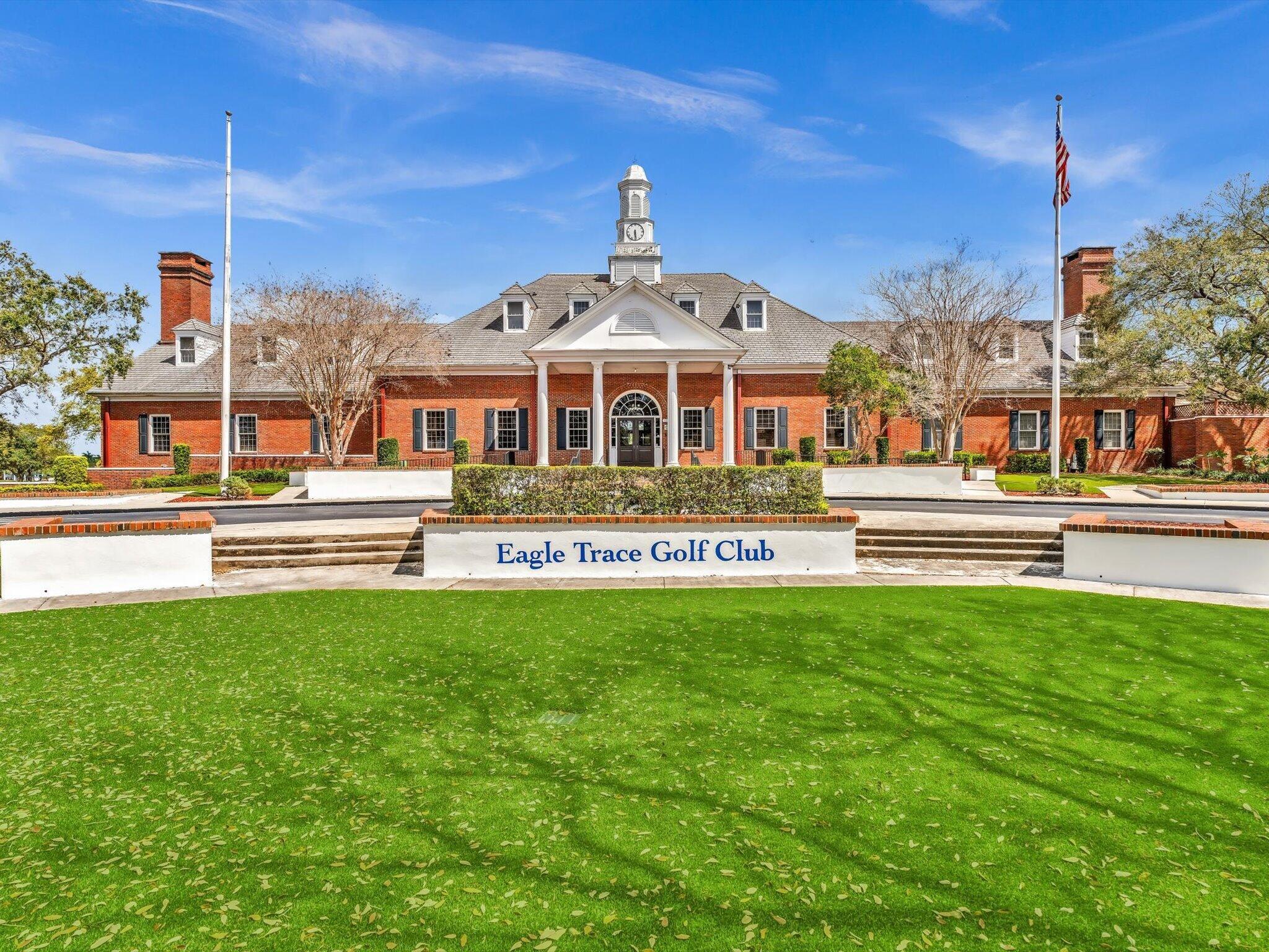 Assumable 4.85% Loan, Save Thausands. Experience luxury living with unbeatable value in this elegant 5-bedroom, 3-bathroom home located in the highly sought-after Eagle Trace Golf Community, no membership required! Tucked away on a quiet cul-de-sac, this beautifully maintained home boasts an open, light-filled floor plan with soaring ceilings, stylish tile and laminate flooring throughout.The spacious kitchen features a large island, abundant counter space, and seamlessly flows into the inviting family room, perfect for entertaining. Step outside to your private screened-in patio and unwind in the serene pool oasis complete with an updated cabana bath. Retreat to the bright and airy primary suite with 2 walk-in closets, a spa-like bathroom with soaking tub, separate shower, and dual vaniti