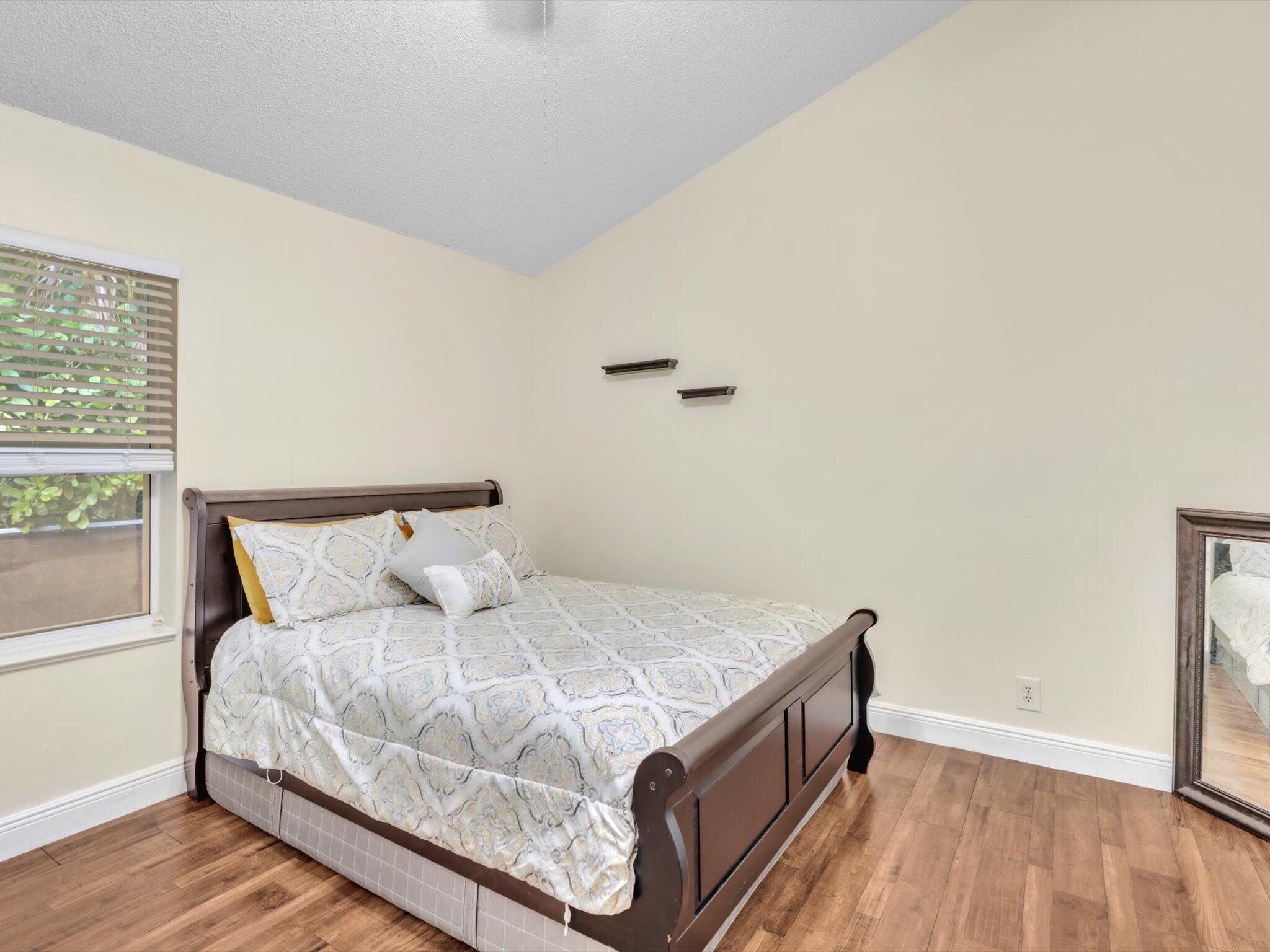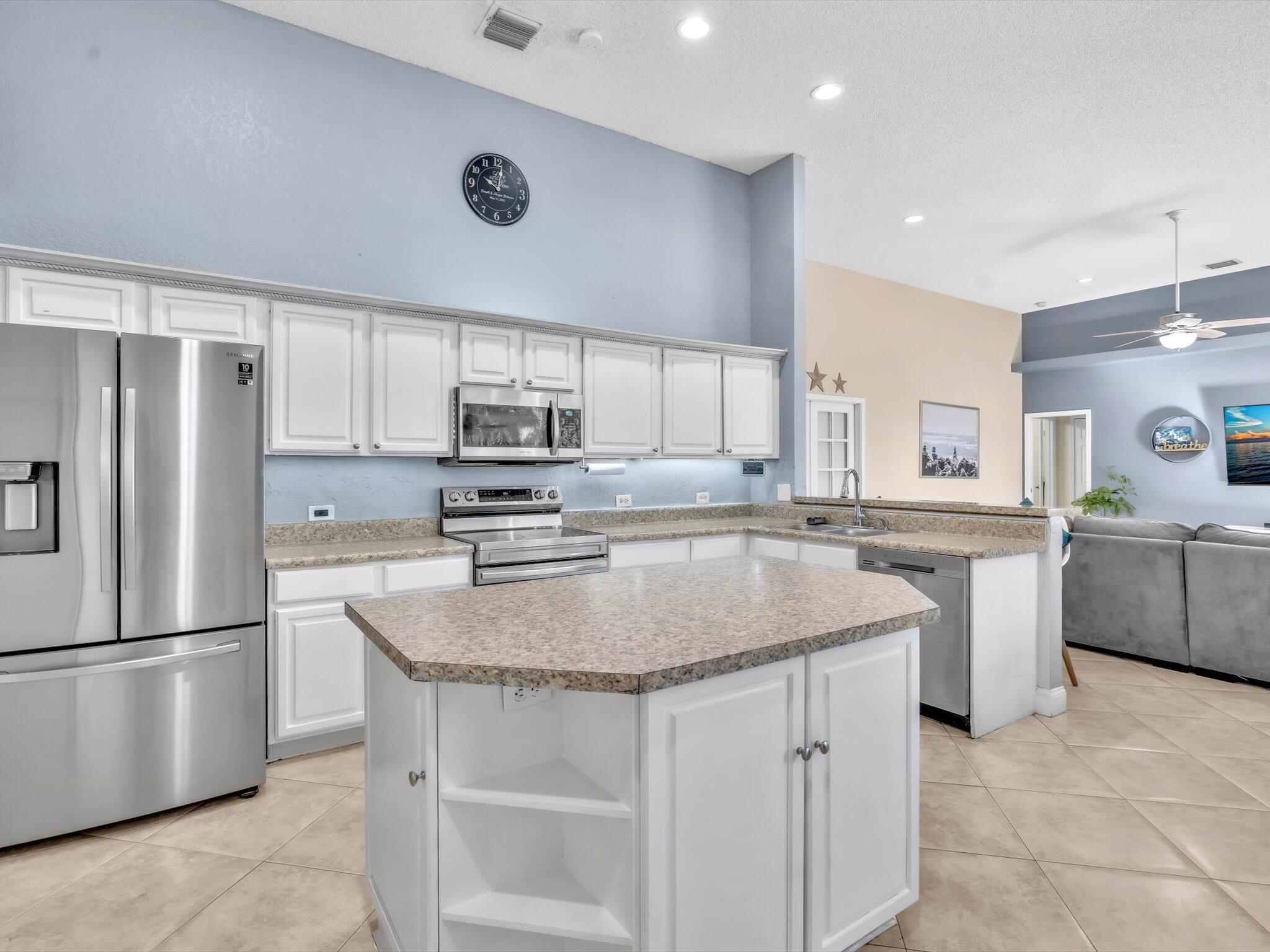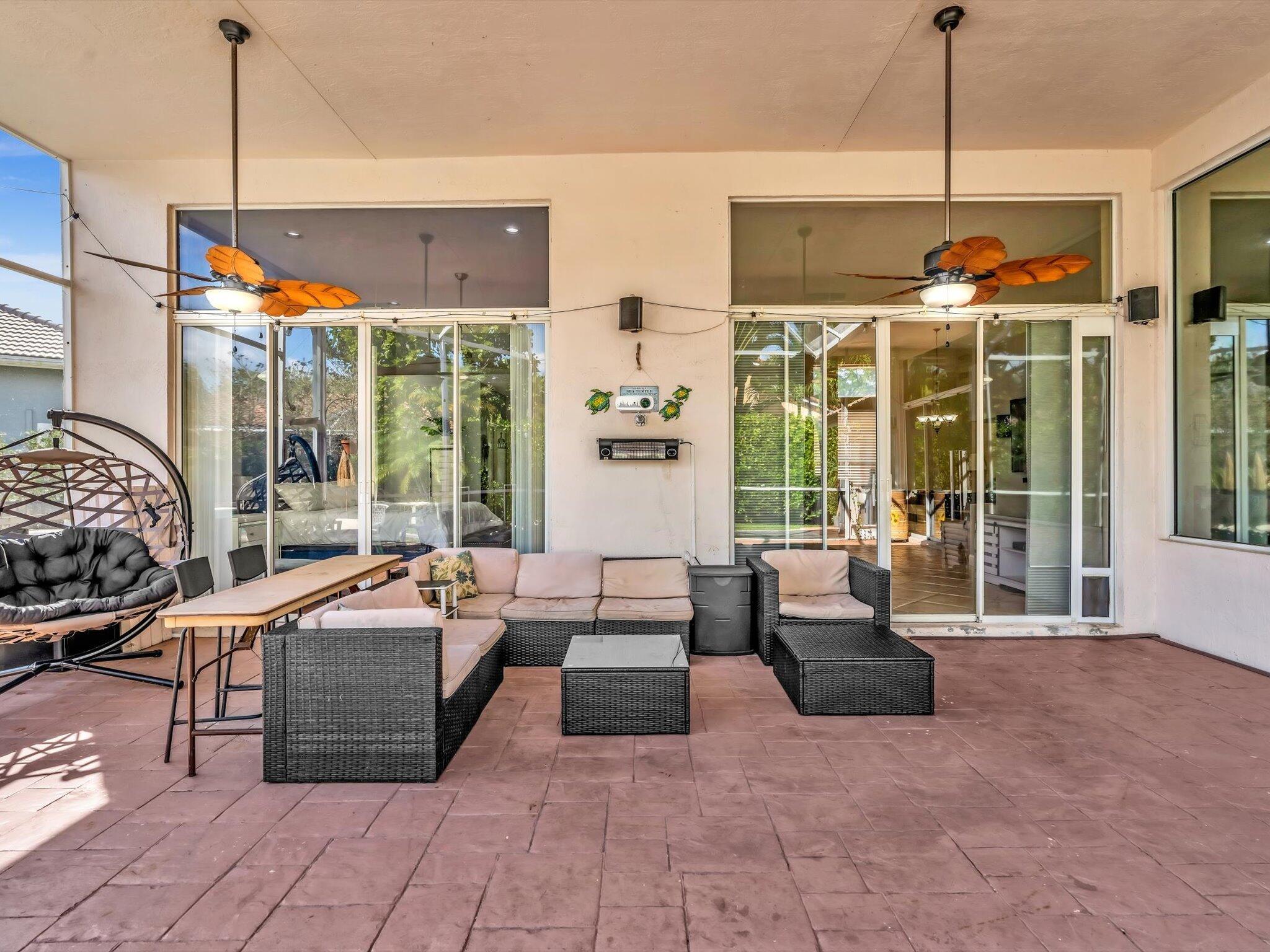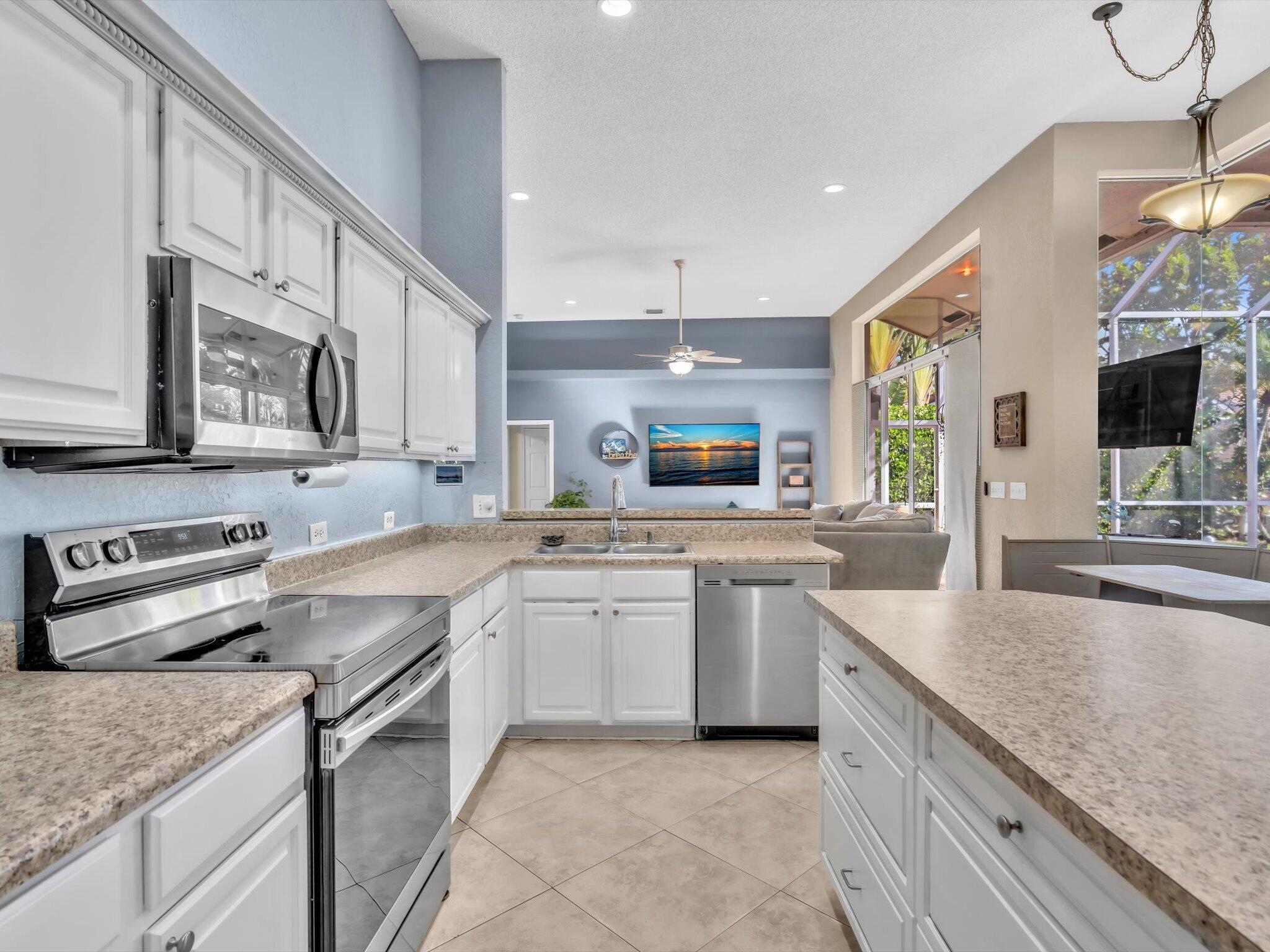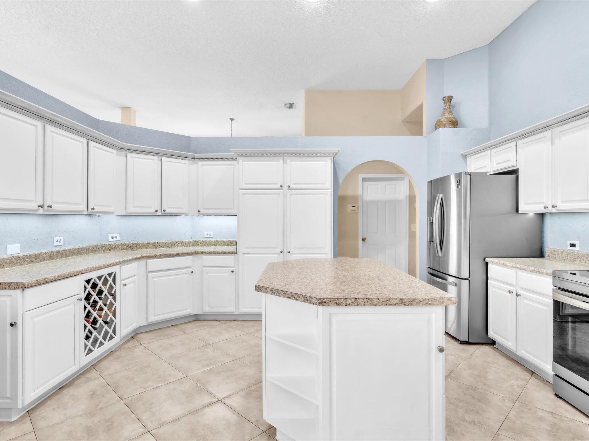 Assumable 4.85% Loan, Save Thausands. Experience luxury living with unbeatable value in this elegant 5-bedroom, 3-bathroom home located in the highly sought-after Eagle Trace Golf Community, no membership required! Tucked away on a quiet cul-de-sac, this beautifully maintained home boasts an open, light-filled floor plan with soaring ceilings, stylish tile and laminate flooring throughout.The spacious kitchen features a large island, abundant counter space, and seamlessly flows into the inviting family room, perfect for entertaining. Step outside to your private screened-in patio and unwind in the serene pool oasis complete with an updated cabana bath. Retreat to the bright and airy primary suite with 2 walk-in closets, a spa-like bathroom with soaking tub, separate shower, and dual vaniti