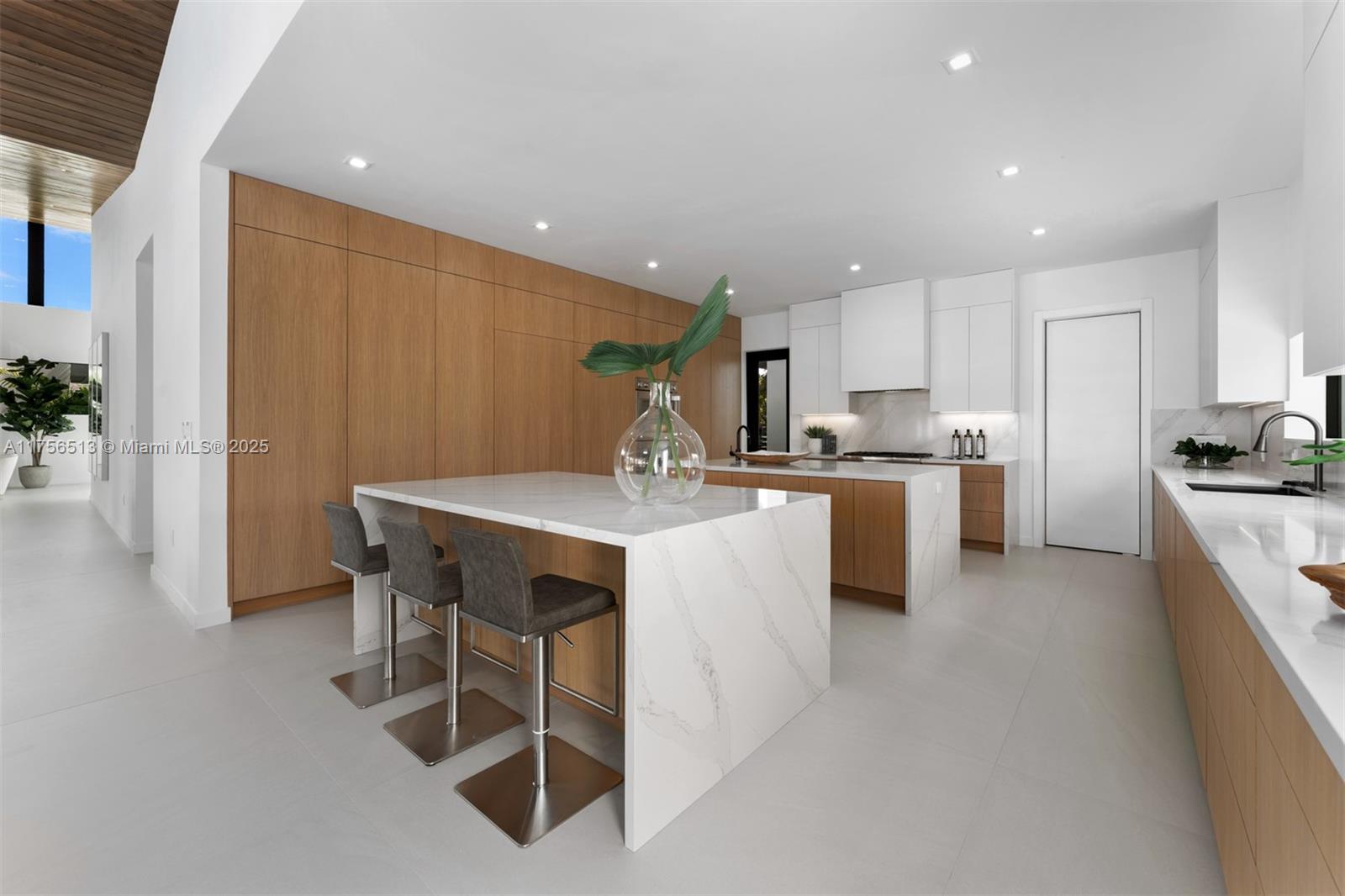 Discover mid-century modern in this brand-new 1-story estate, completed in 2025 in the exclusive cul-de-sac community of The Grove at Pinecrest. This architectural gem boasts a seamless open-concept layout, elegant finishes, and expansive impact windows. Enter through a sleek foyer with porcelain floors flowing into formal living and dining areas. A custom wet bar complements the spacious family room. The chef’s kitchen features custom cabinetry, top-of-the-line Thermidor appliances, gas stove, and Quartz countertops. Step outside to a private oasis with a stunning pool, tanning ledge, and lush landscaping. Use GPS: 6901 SW 91 St.