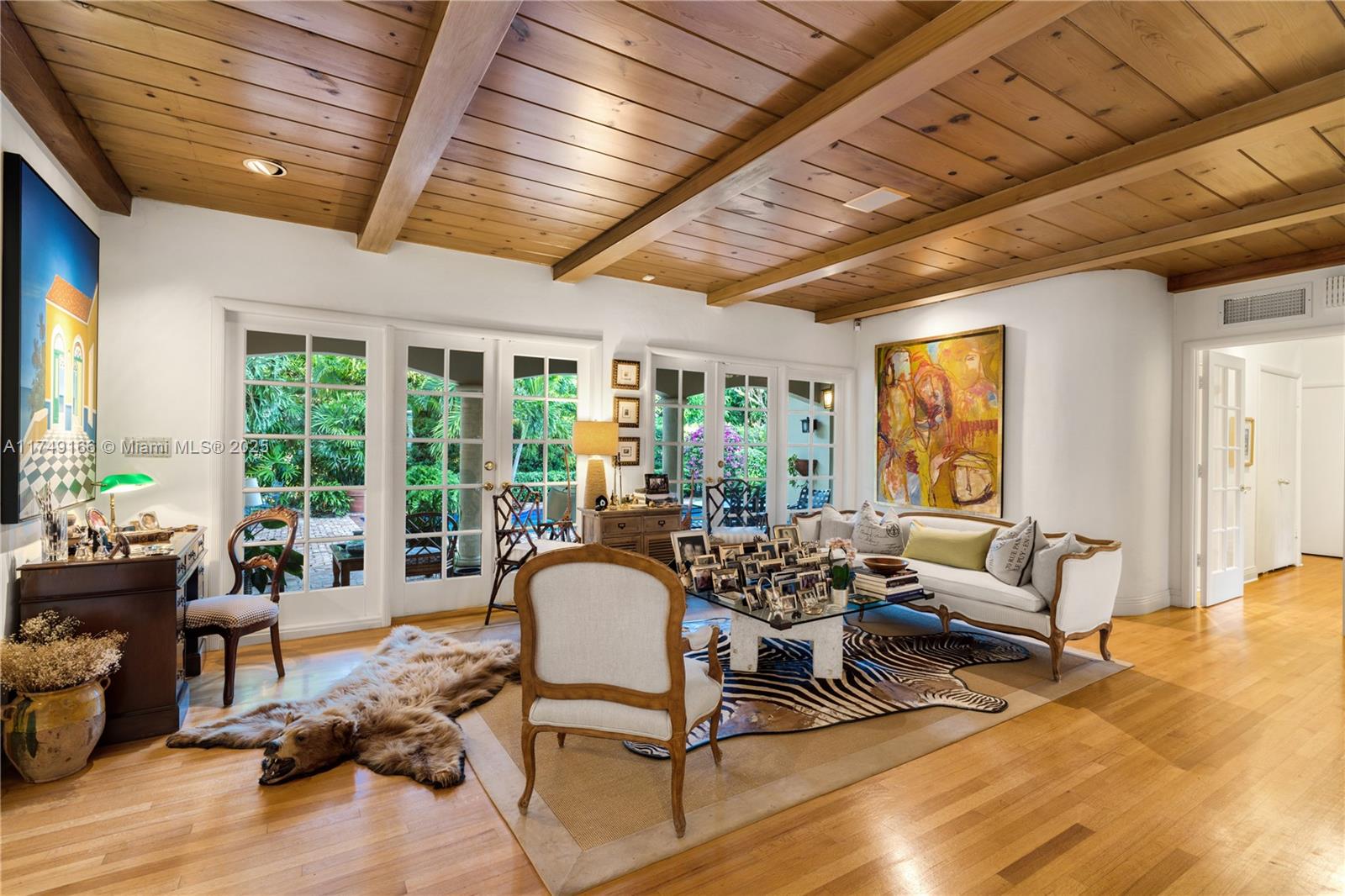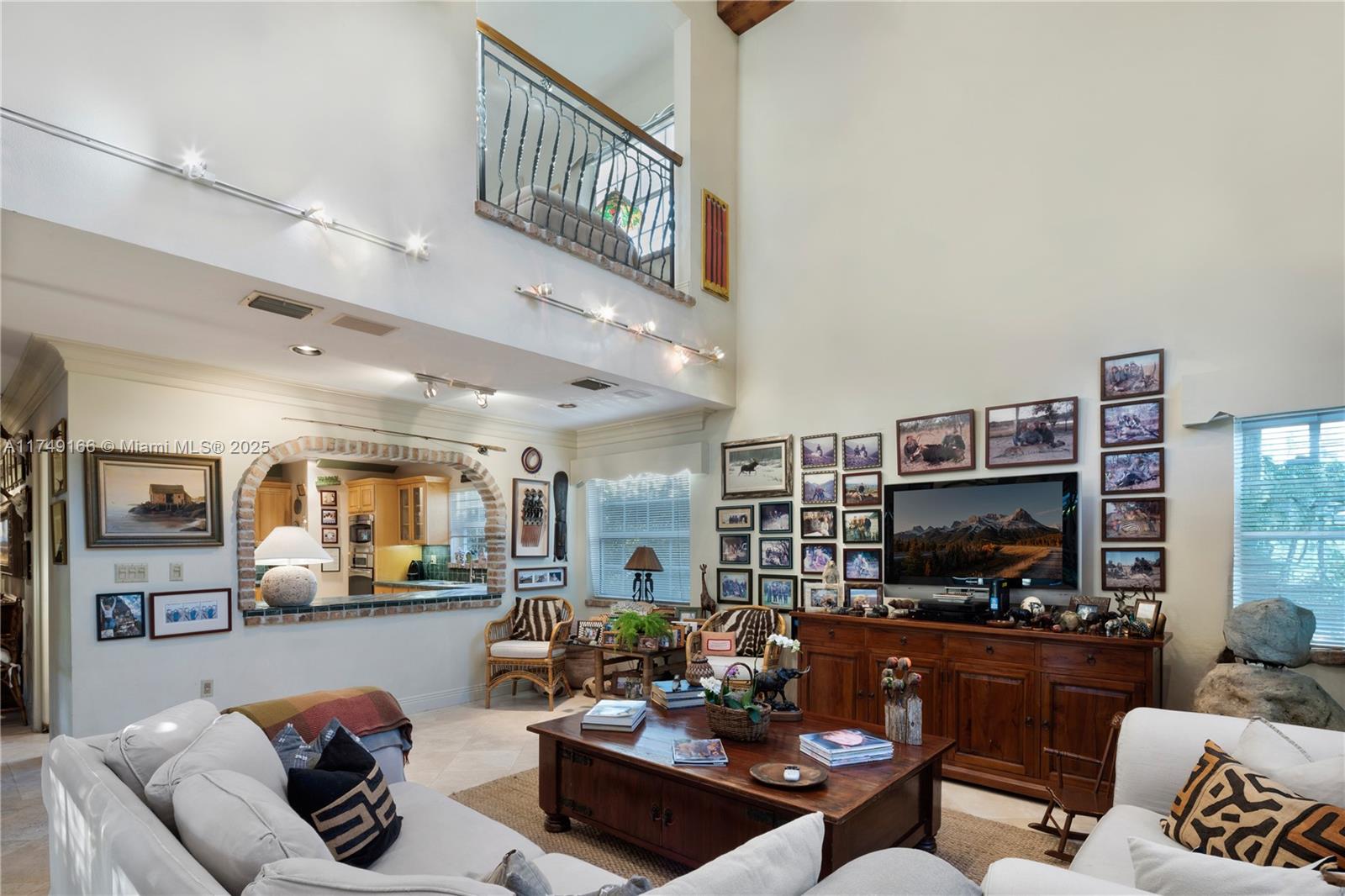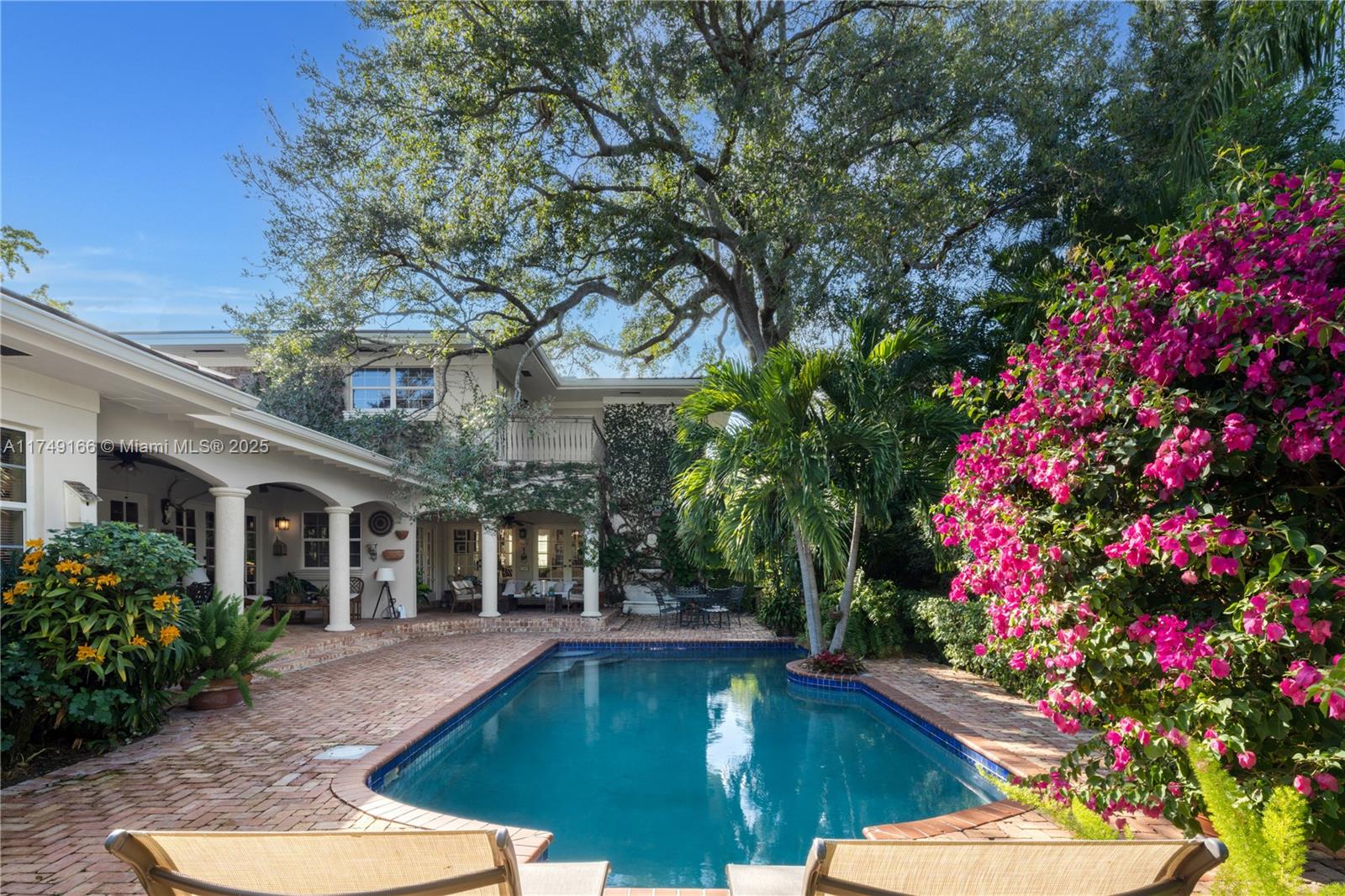 Discover this beautifully maintained residence, showcasing curated design and modern functionality. A grand, double-height family room, an architectural statement providing an open, airy atmosphere. Wood and marble floors throughout combine warmth and sophistication. The living room's fireplace creates a cozy focal point. The first floor offers 3 spacious bedrooms & 3 baths. The private second-floor primary suite features a sitting room, indulgent spa bath, and custom walk-in closets. Outdoor entertaining is effortless with a brick patio and covered terrace overlooking the pool. Integrated speakers enhance the ambiance inside and out. Equipped with double-pane windows, a whole-house generator, built-in garage workstation, and sprinkler system for ultimate comfort and security.