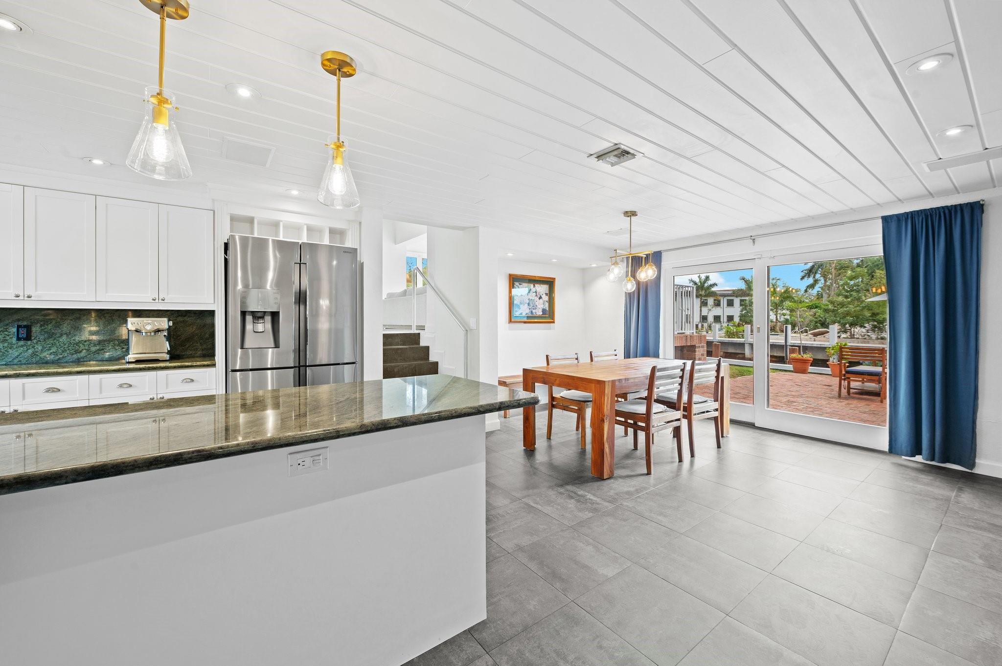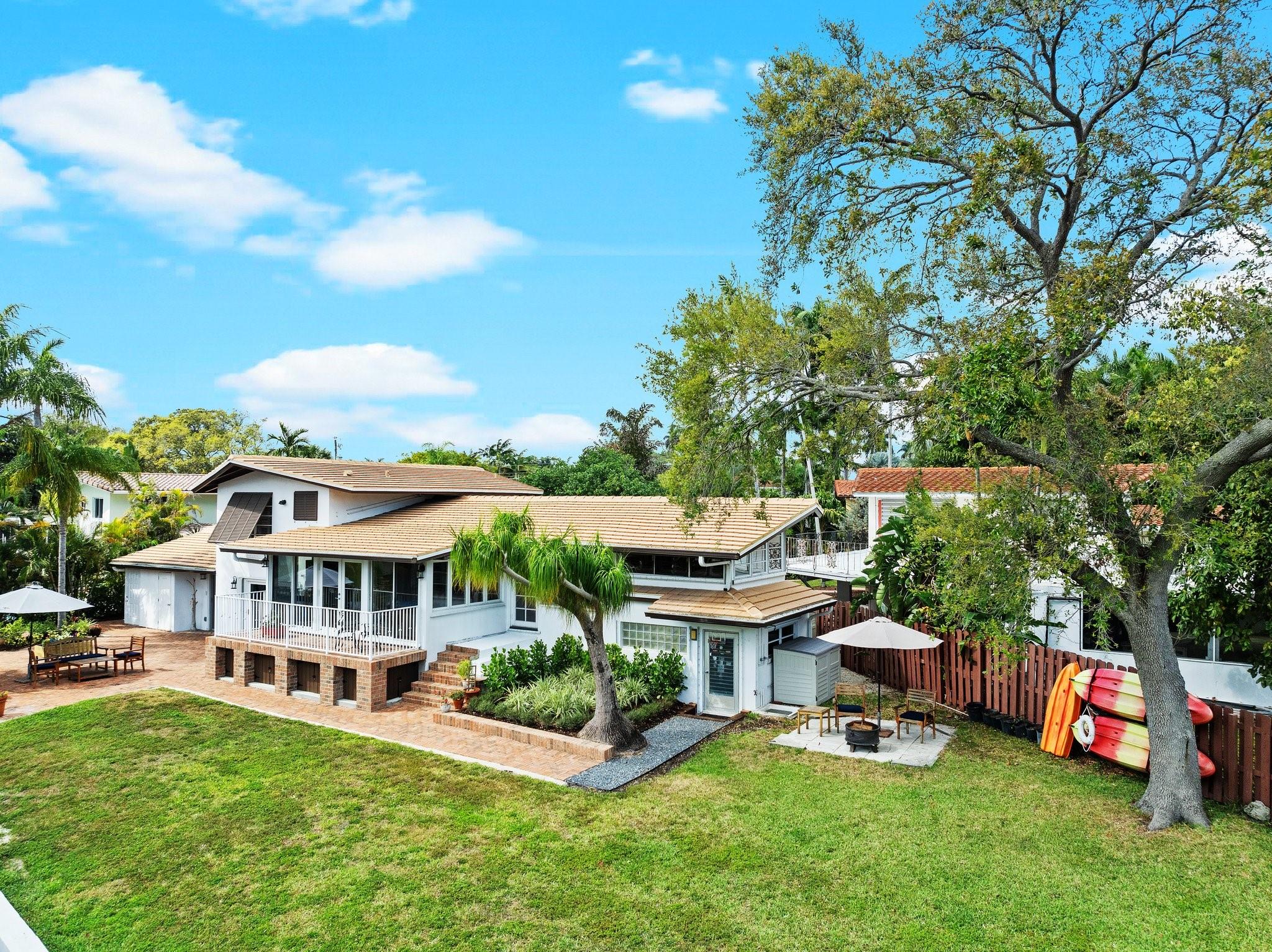 Waterfront home in Gill Isles! This 4BD/3BA tri-level home sits on a magnificent point lot with 155 ft of deepwater frontage offering direct ocean access with no fixed bridges and a convenient turnaround basin at your dock. Protect your yachts at this part of the river known as the Hurricane Hole. Built with solid CBS construction, this home boasts original terrazzo and oak floors, a stunning kitchen with gas stove and stainless appliances, updated baths, and expansive living spaces. The unique tri-level design provides separate yet connected living areas, maximizing waterfront views and natural light. Nestled along a quiet part of the New River, yet minutes from marinas, the airport, highways, downtown, and the beach. Enjoy the perfect blend of privacy, character, and modern convenience!
