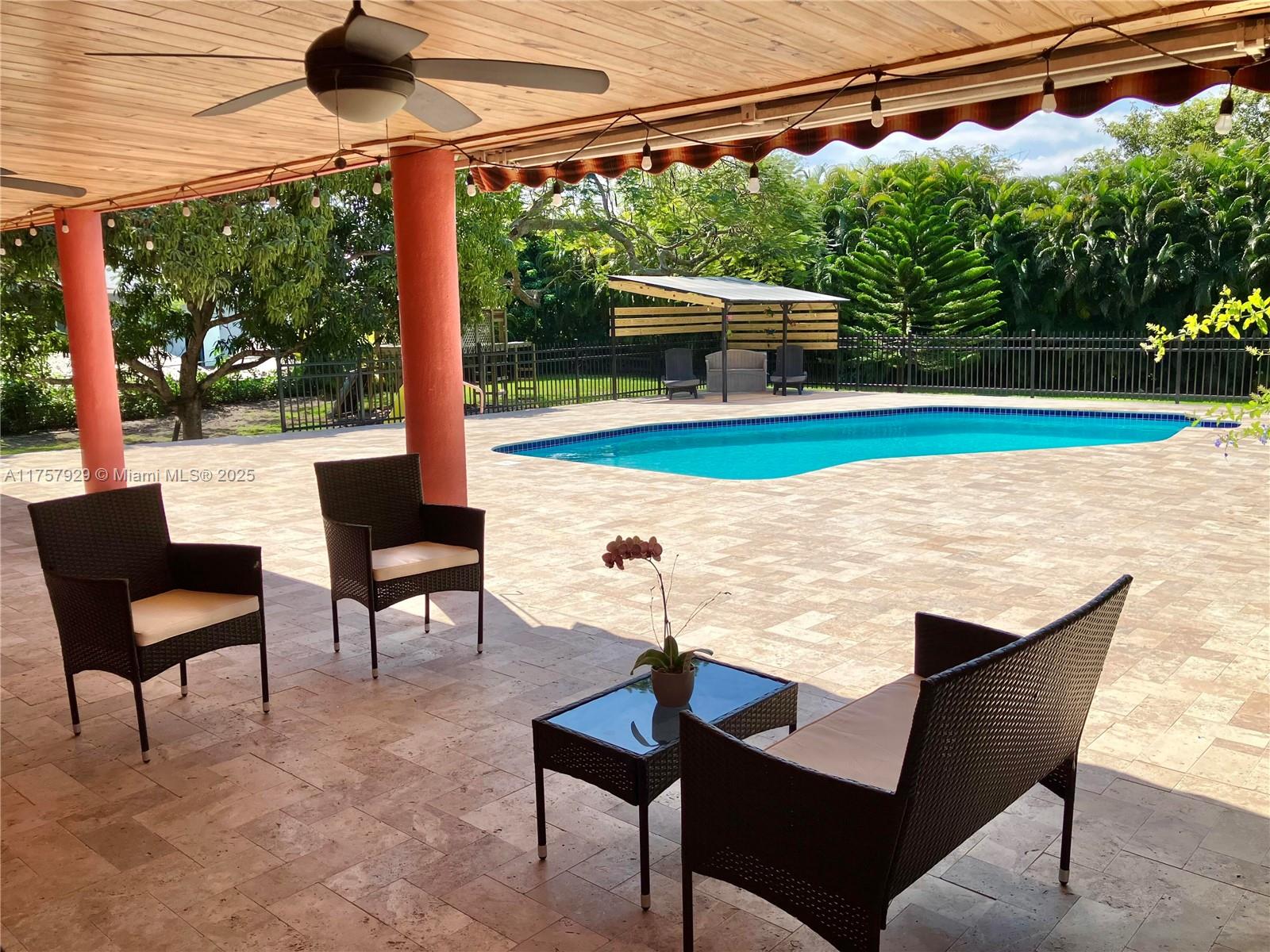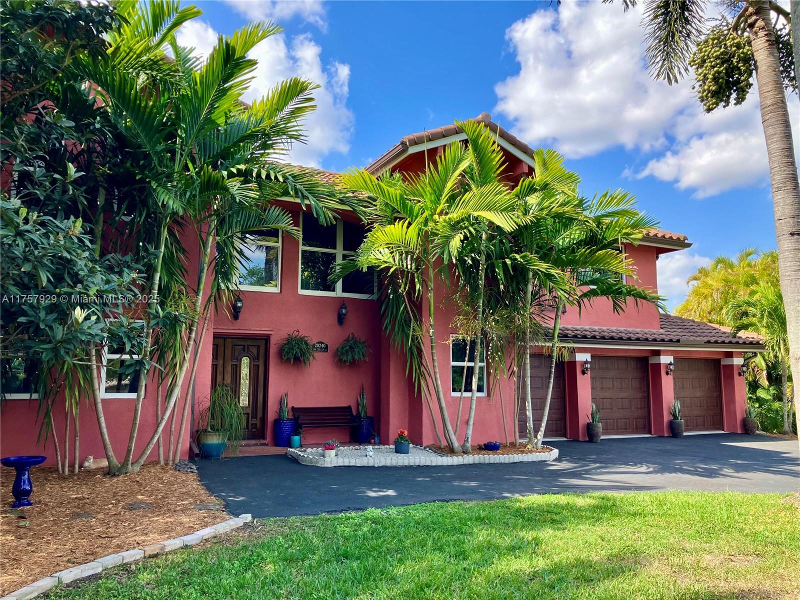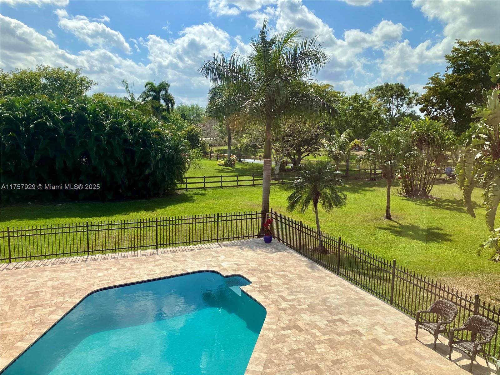 Welcome to this stunning property in Southwest Ranches, offering a serene and spacious living experience in a welcoming neighborhood. This area has no through traffic, so you can enjoy peaceful walks and bike rides. Great setup for family and for entertaining. Interior features include: impact windows providing plentiful natural light; custom kitchen with functional design and abundant storage; oversized primary wing with dual-shower, clawfoot tub, walk-through closet, and balcony with pool access. Outdoor features include: saltwater pool, huge travertine patio with large covered area, cabana, kitchen, outdoor shower, fenced backyard, mature mango, loquat, and poinciana trees. Deep well prevents orange water stains. 3-car garage has epoxy flooring. New roof 2021
