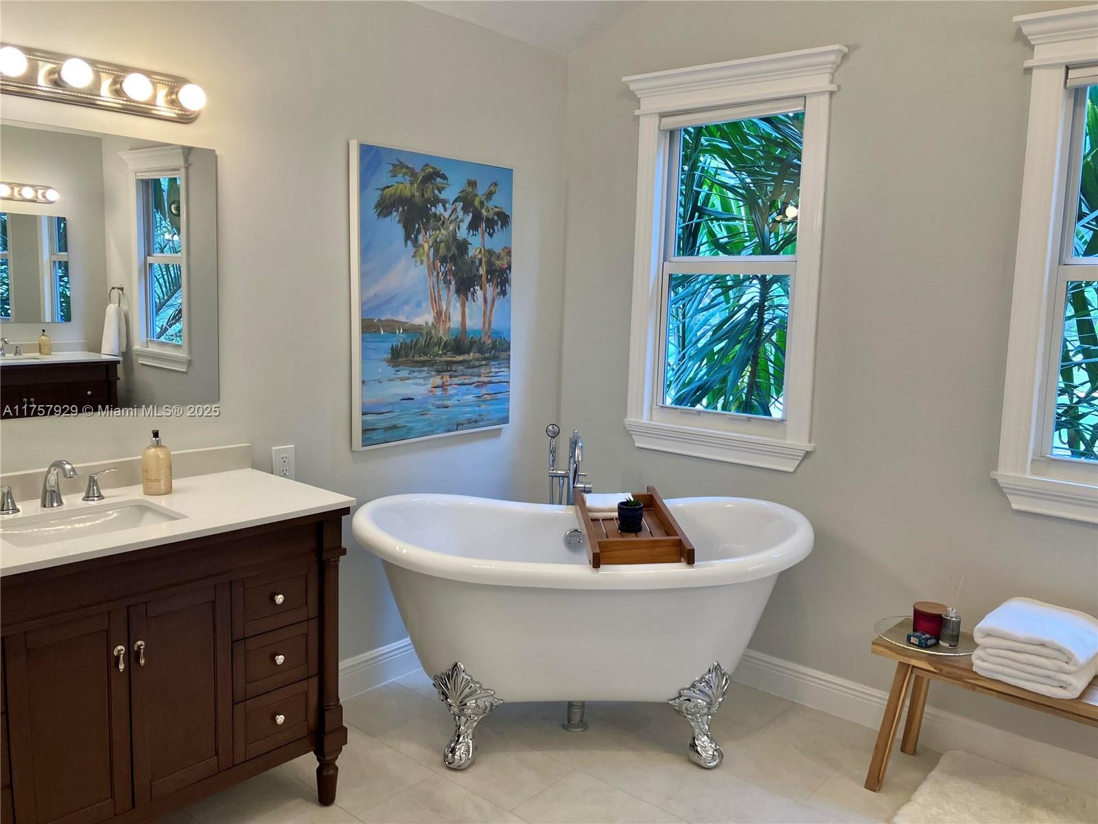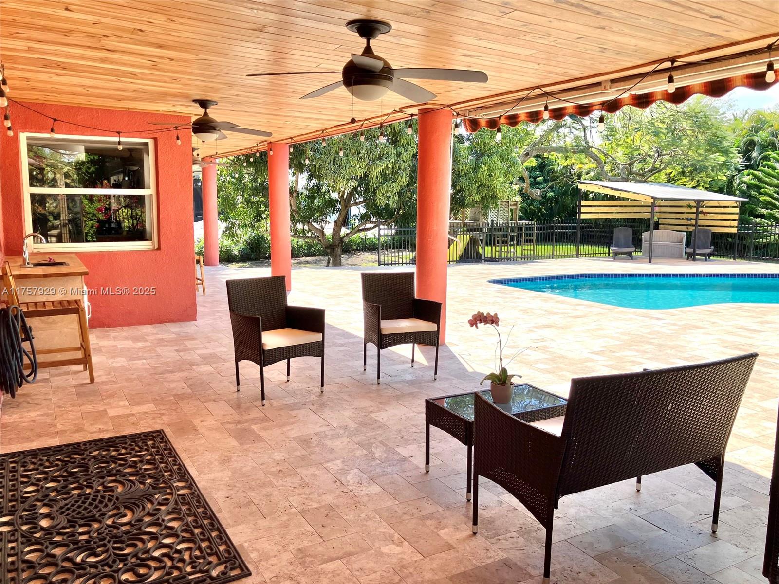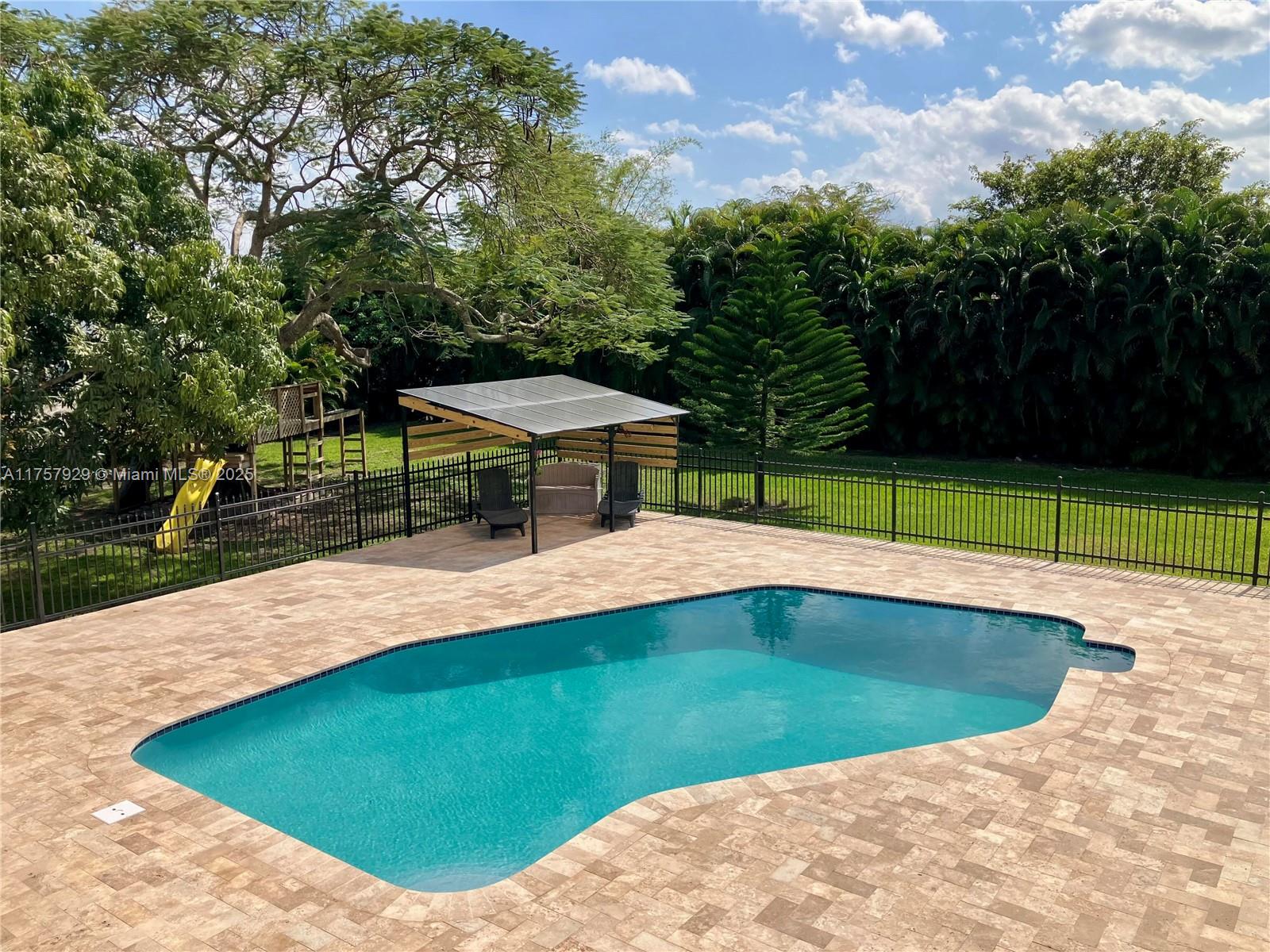 Welcome to this stunning property in Southwest Ranches, offering a serene and spacious living experience in a welcoming neighborhood. This area has no through traffic, so you can enjoy peaceful walks and bike rides. Great setup for family and for entertaining. Interior features include: impact windows providing plentiful natural light; custom kitchen with functional design and abundant storage; oversized primary wing with dual-shower, clawfoot tub, walk-through closet, and balcony with pool access. Outdoor features include: saltwater pool, huge travertine patio with large covered area, cabana, kitchen, outdoor shower, fenced backyard, mature mango, loquat, and poinciana trees. Deep well prevents orange water stains. 3-car garage has epoxy flooring. New roof 2021