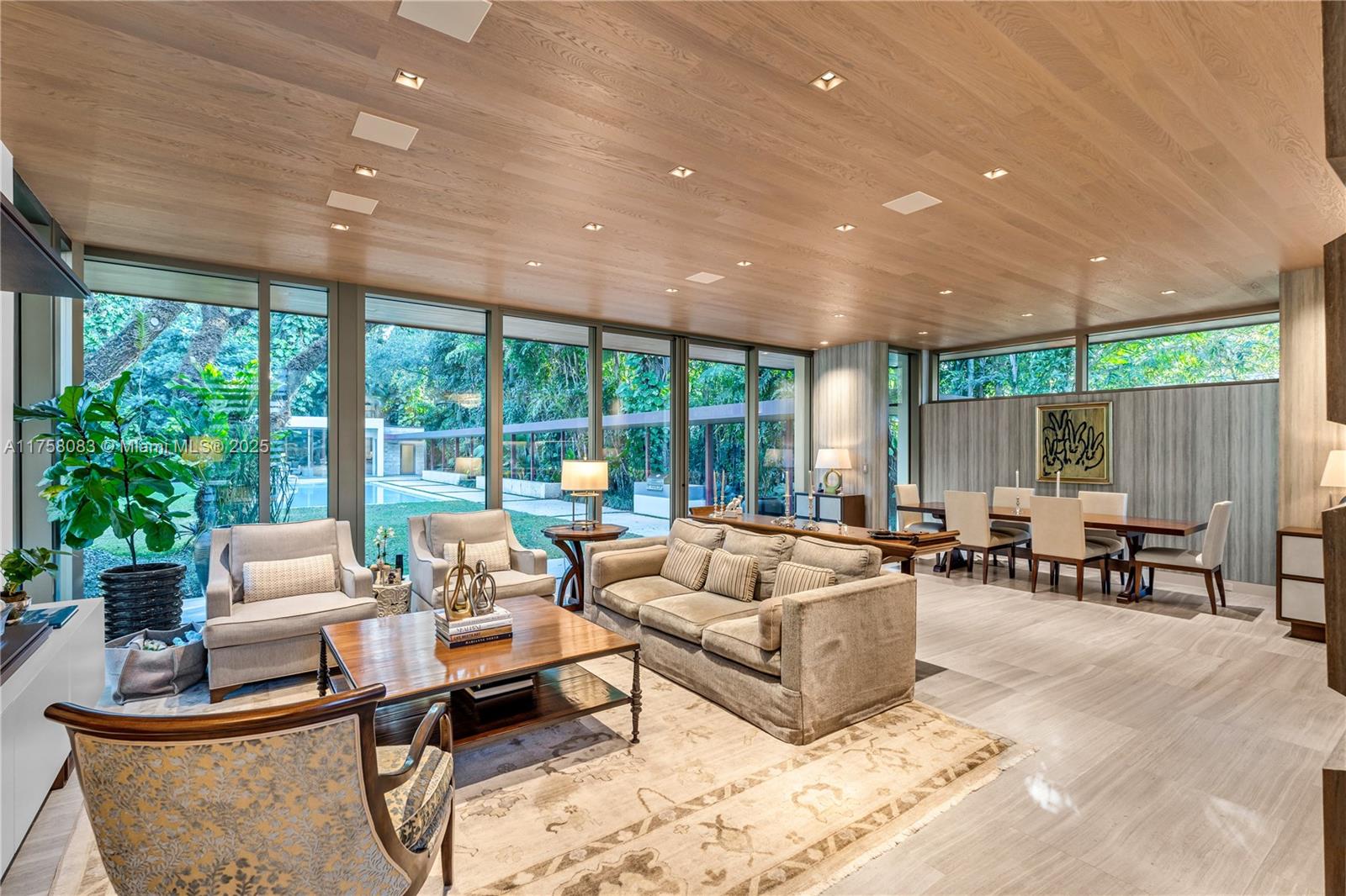 Reminiscent of the work of Richard Neutra, this Mid-Century Modern estate, designed by Taylor & Taylor & built by Coastal Construction, is located in coveted Hammock Lakes. Tucked away in a gated community, & extremely private & secure, the home is situated among countless Mature Oak trees on a full acre of land. This recently updated 2-story, 8-bedroom home features natural stone & wood floors. Elegantly & stylishly appointed by a top-flight designer, this estate is perfect for the buyer who wants to move in tomorrow. Features include a Ground Floor Primary; large living room with fireplace; oversized dining room; gourmet kitchen; spacious pool, open lawns and cabana/guest house; Smart House; an abundance of natural light throughout the day both indoors and outdoors. NO expense spared.