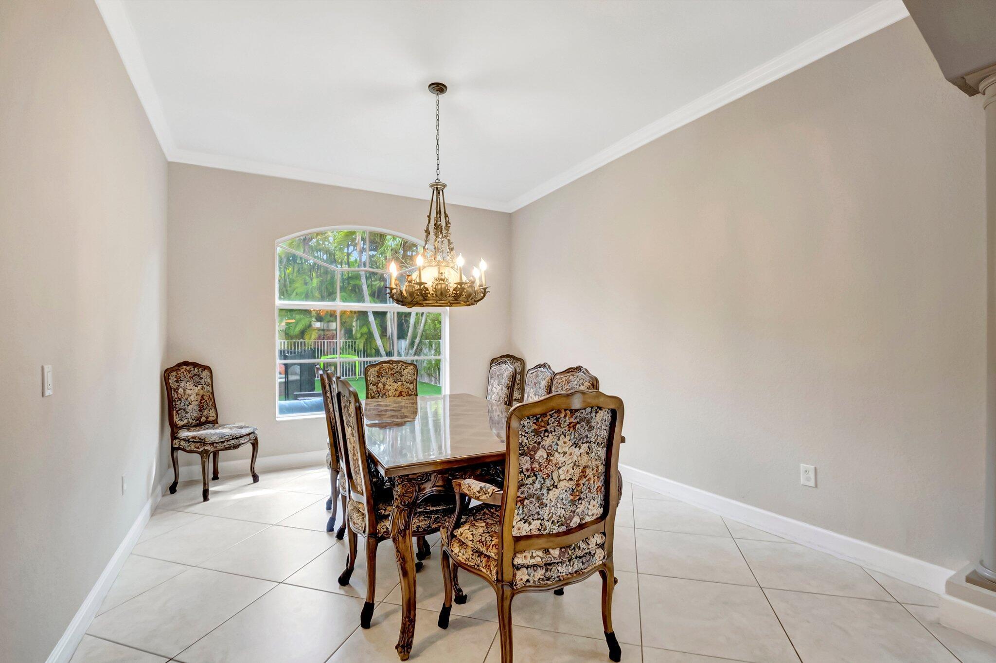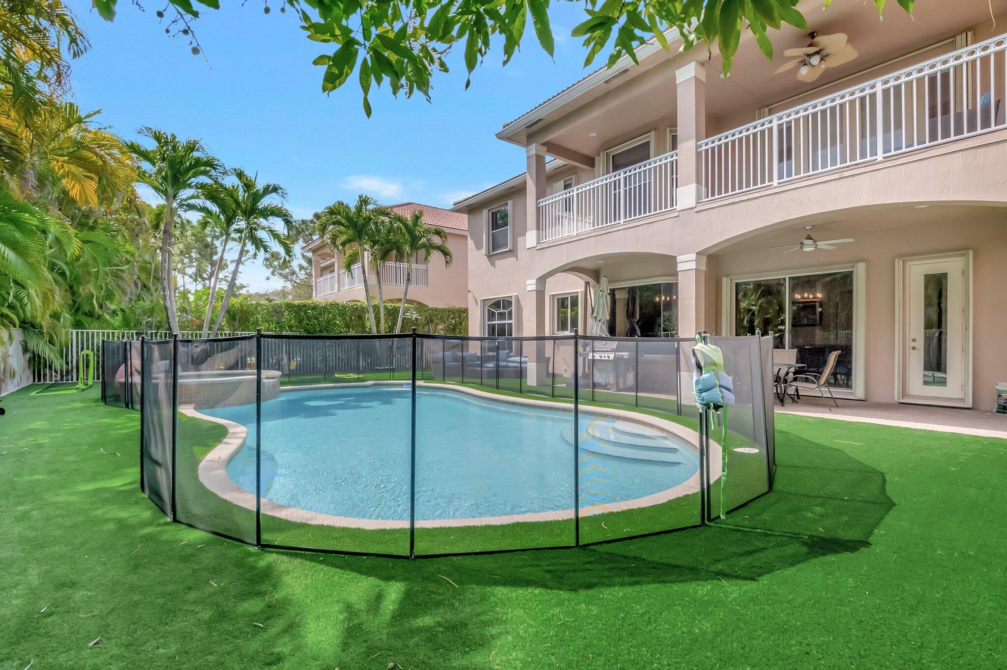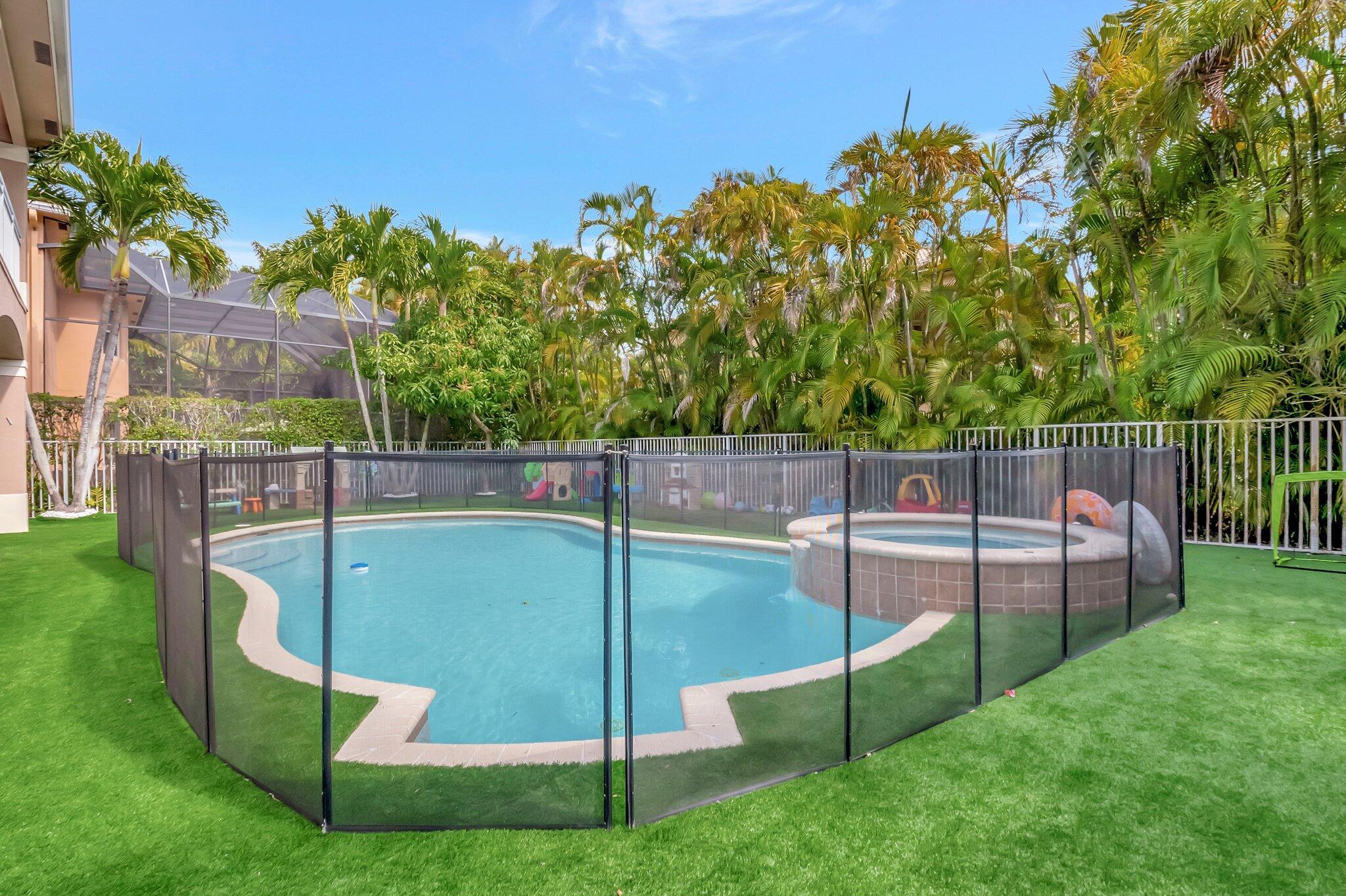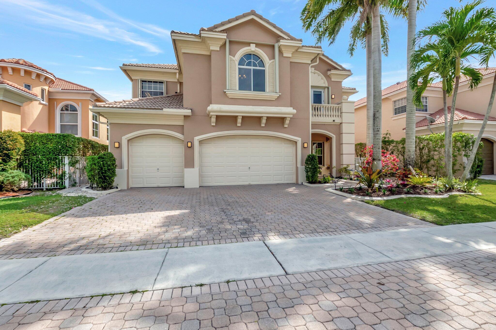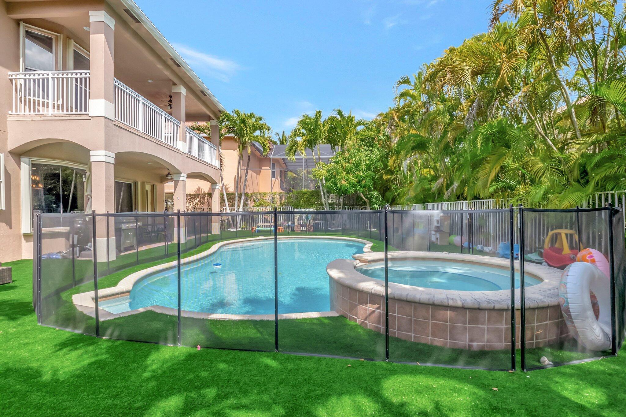 Beautiful Castellana model offers 6 bedrooms, 5.1 baths, & 3-car garage on a private and secluded homesite. The park and playground are close by. Ceramic flooring throughout the living area & beautiful engineered wood flooring on the 2nd floor. The kitchen features granite counter tops, dishwasher, double oven & a complete walk-in pantry. A 2nd dishwasher is in the laundry room. The garage has an additional full size refrigerator & freezer which are included in the purchase. The upstairs primary suite has a sitting area, his & her bath & a covered balcony overlooking the pool. The closets are fully built-out. Crown molding detailing is in every bedroom. The backyard has a heated pool with salt-water chlorination & a waterfall spa. Artificial turf completes the tropical feel.