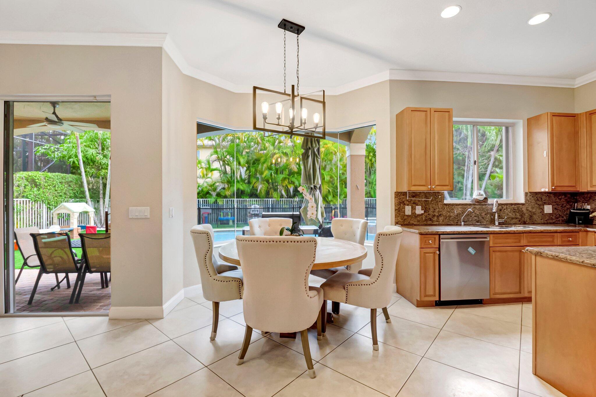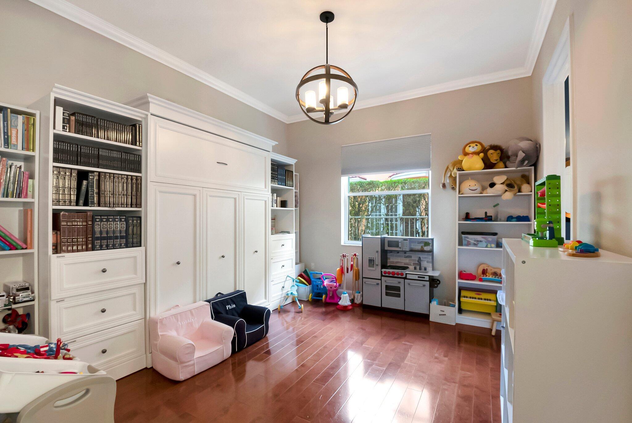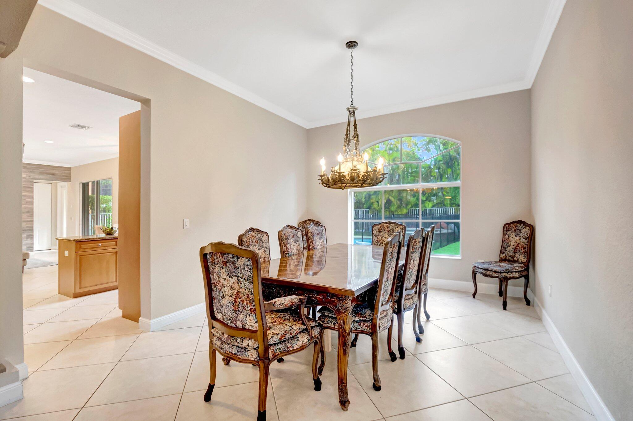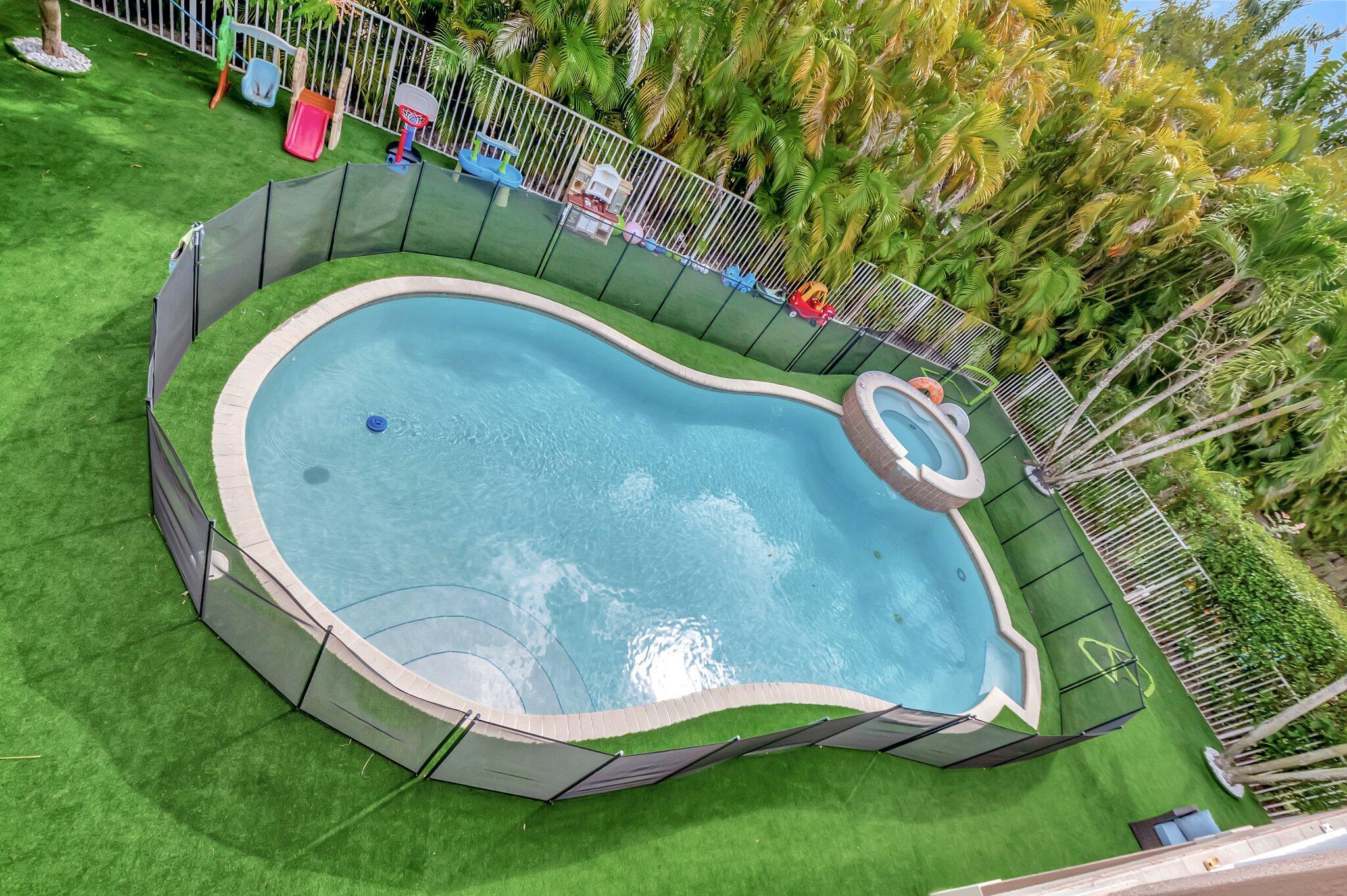 Beautiful Castellana model offers 6 bedrooms, 5.1 baths, & 3-car garage on a private and secluded homesite. The park and playground are close by. Ceramic flooring throughout the living area & beautiful engineered wood flooring on the 2nd floor. The kitchen features granite counter tops, dishwasher, double oven & a complete walk-in pantry. A 2nd dishwasher is in the laundry room. The garage has an additional full size refrigerator & freezer which are included in the purchase. The upstairs primary suite has a sitting area, his & her bath & a covered balcony overlooking the pool. The closets are fully built-out. Crown molding detailing is in every bedroom. The backyard has a heated pool with salt-water chlorination & a waterfall spa. Artificial turf completes the tropical feel.