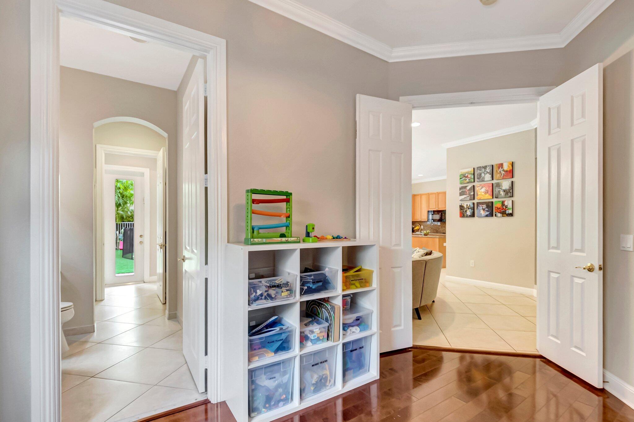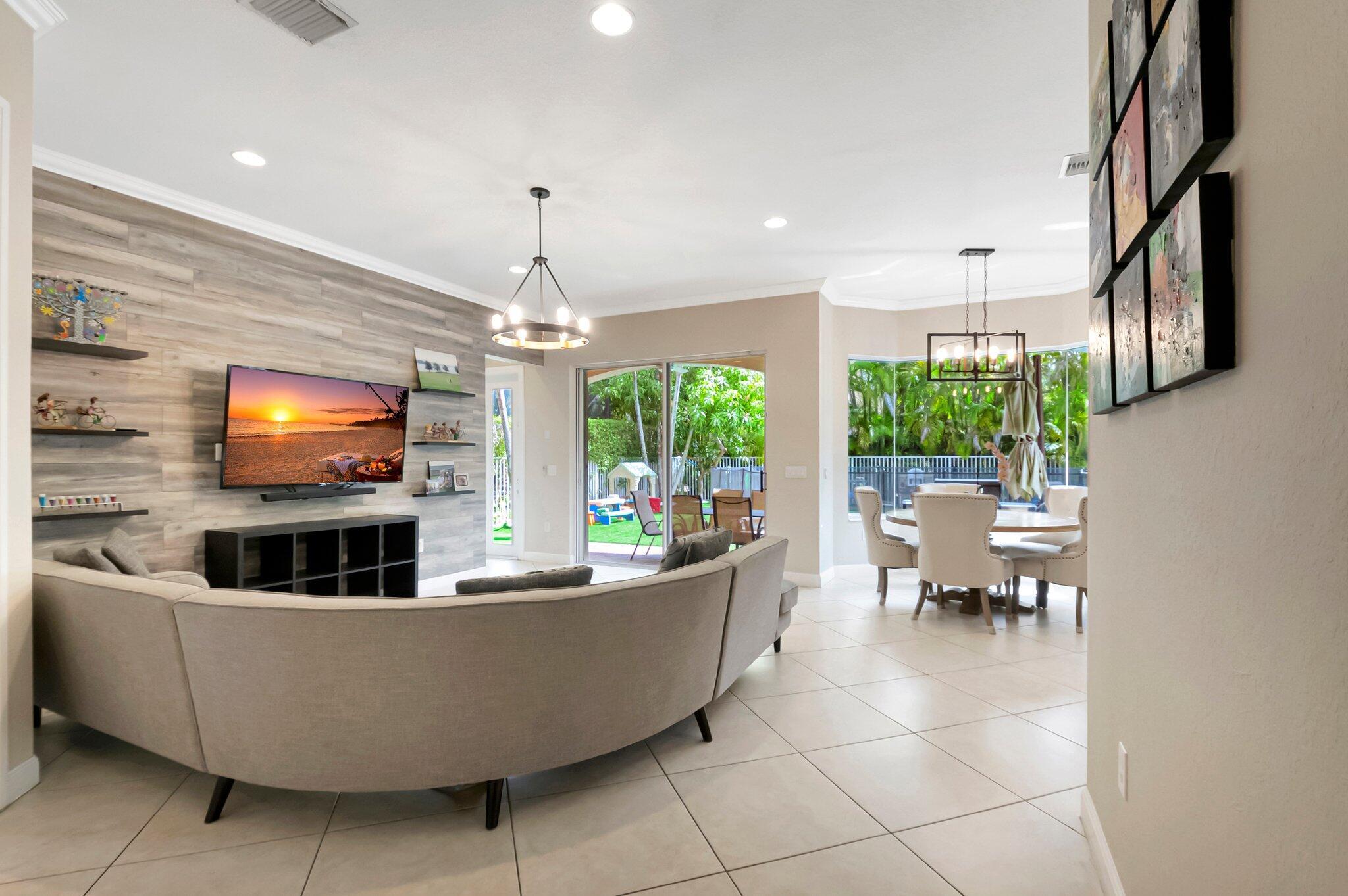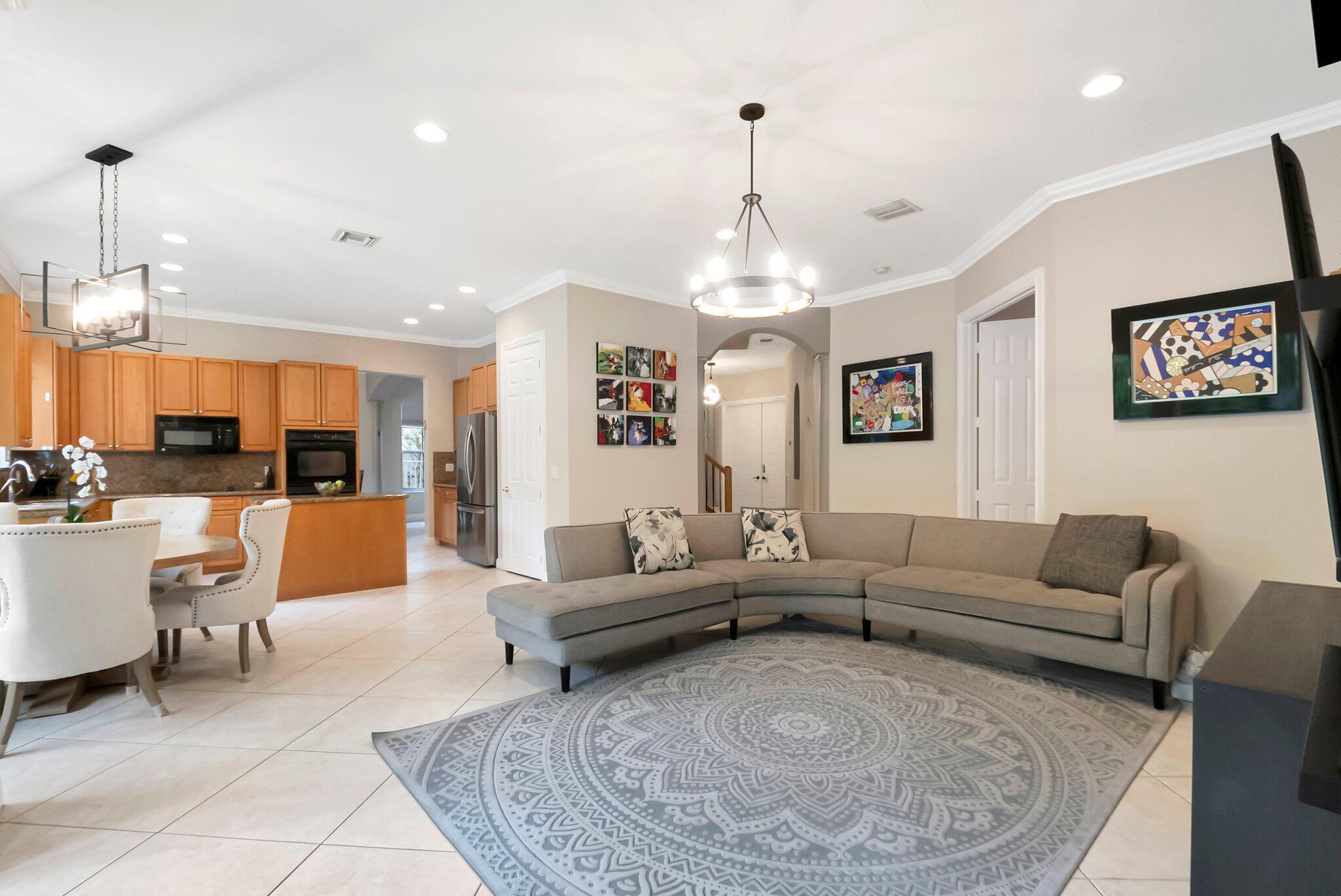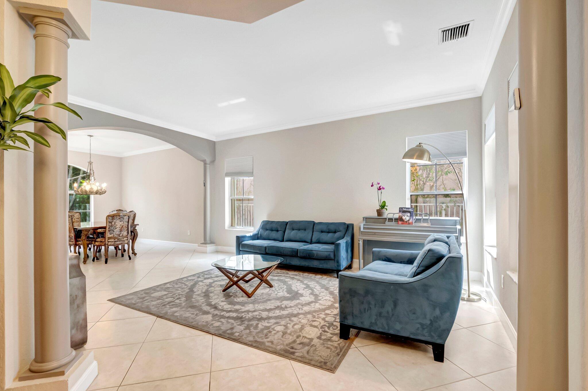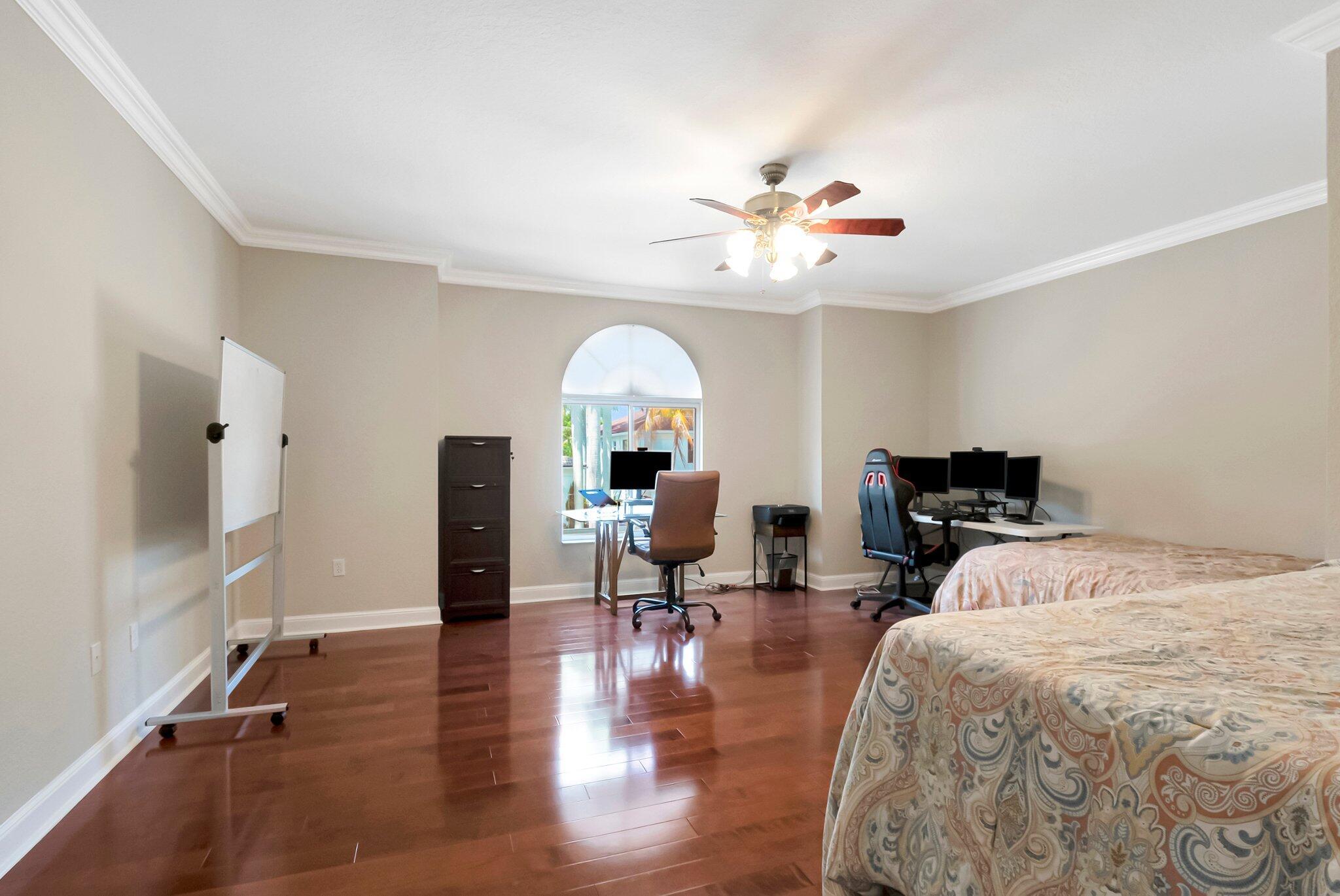 Beautiful Castellana model offers 6 bedrooms, 5.1 baths, & 3-car garage on a private and secluded homesite. The park and playground are close by. Ceramic flooring throughout the living area & beautiful engineered wood flooring on the 2nd floor. The kitchen features granite counter tops, dishwasher, double oven & a complete walk-in pantry. A 2nd dishwasher is in the laundry room. The garage has an additional full size refrigerator & freezer which are included in the purchase. The upstairs primary suite has a sitting area, his & her bath & a covered balcony overlooking the pool. The closets are fully built-out. Crown molding detailing is in every bedroom. The backyard has a heated pool with salt-water chlorination & a waterfall spa. Artificial turf completes the tropical feel.