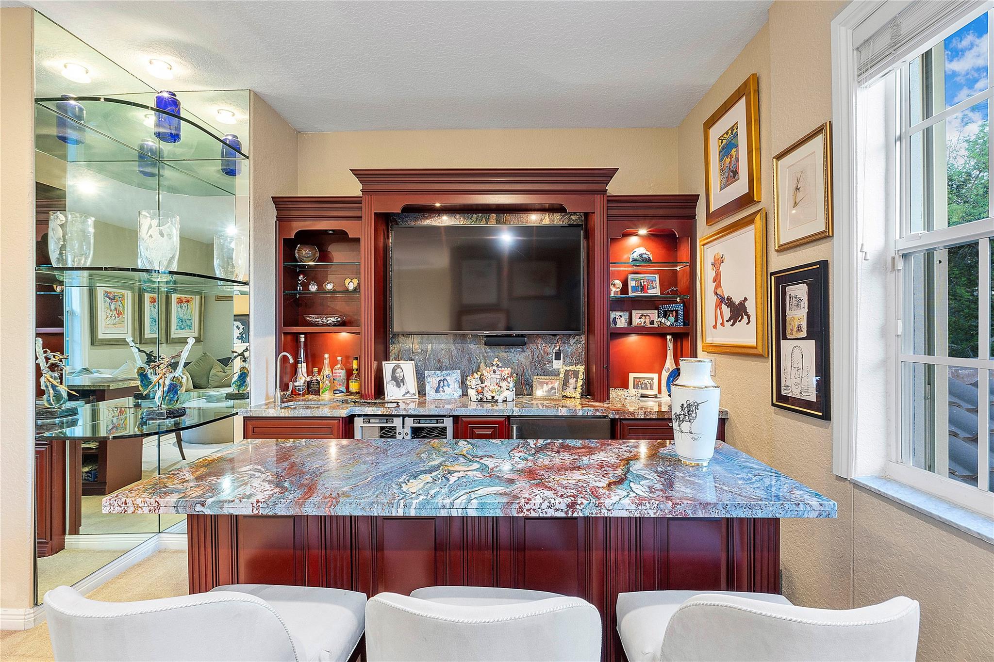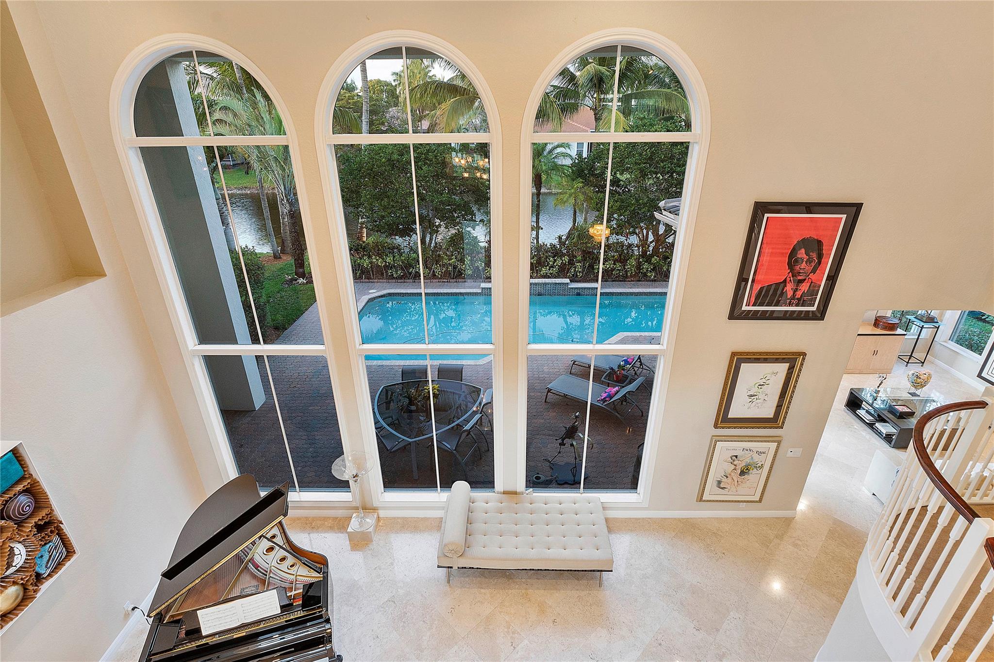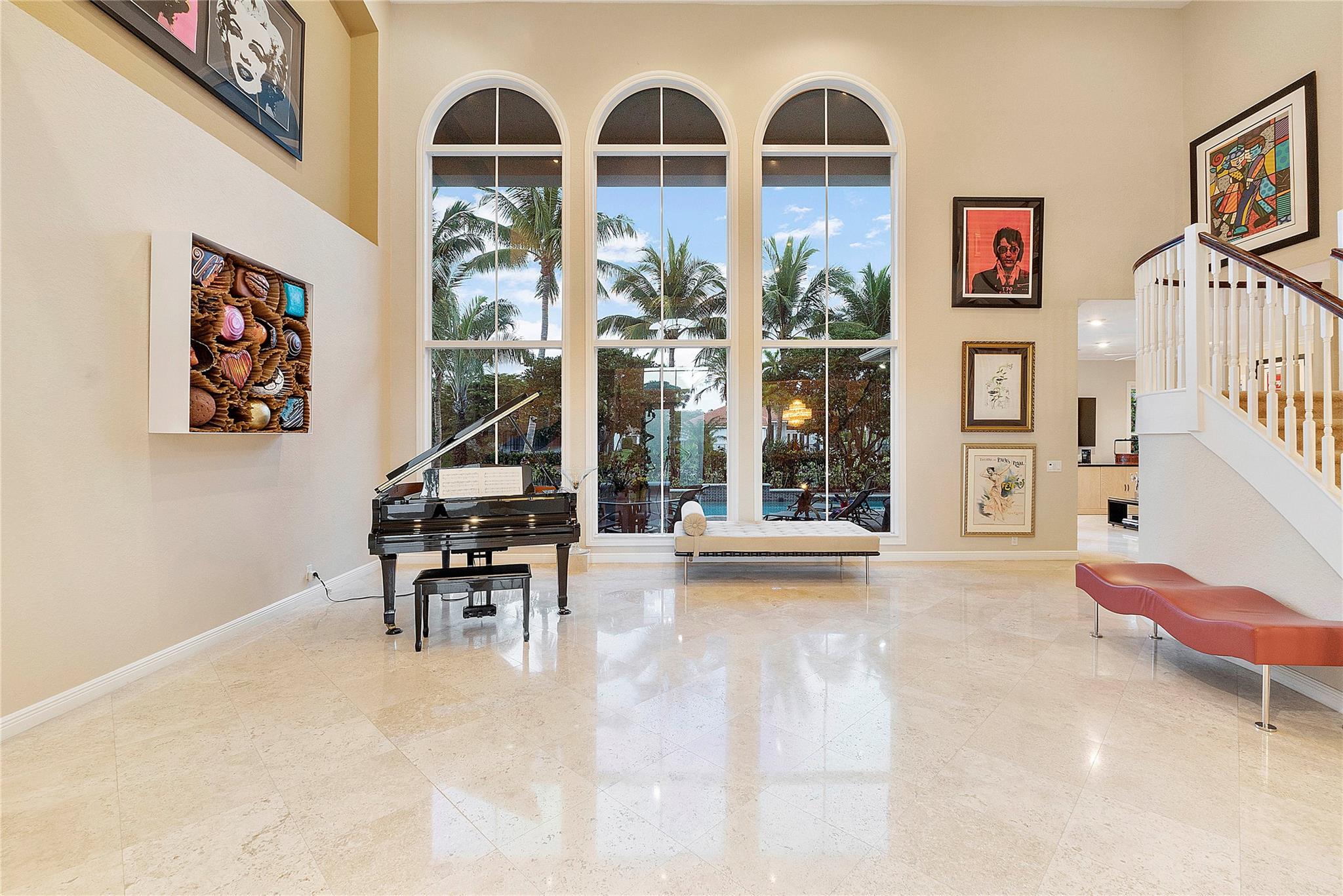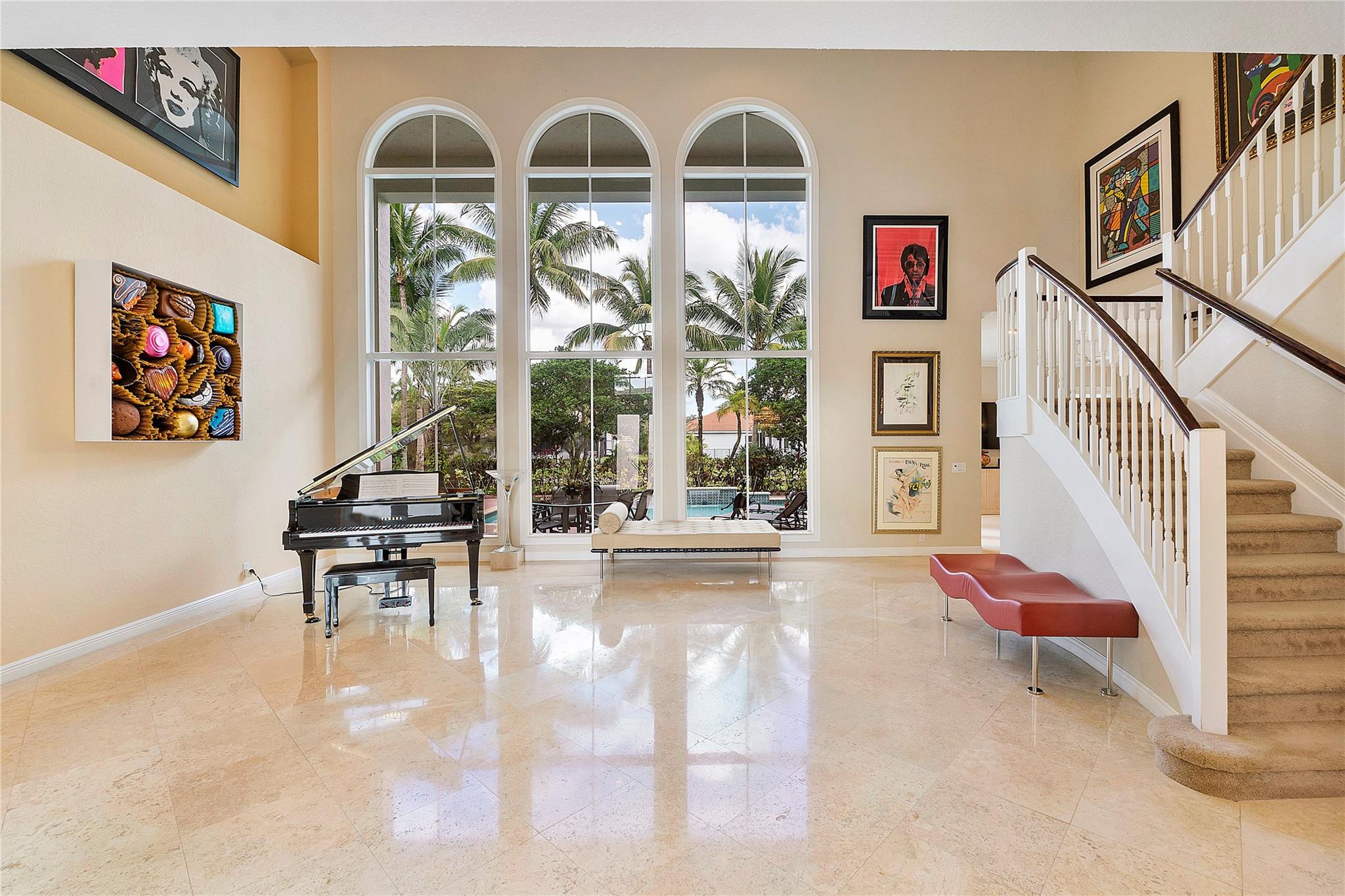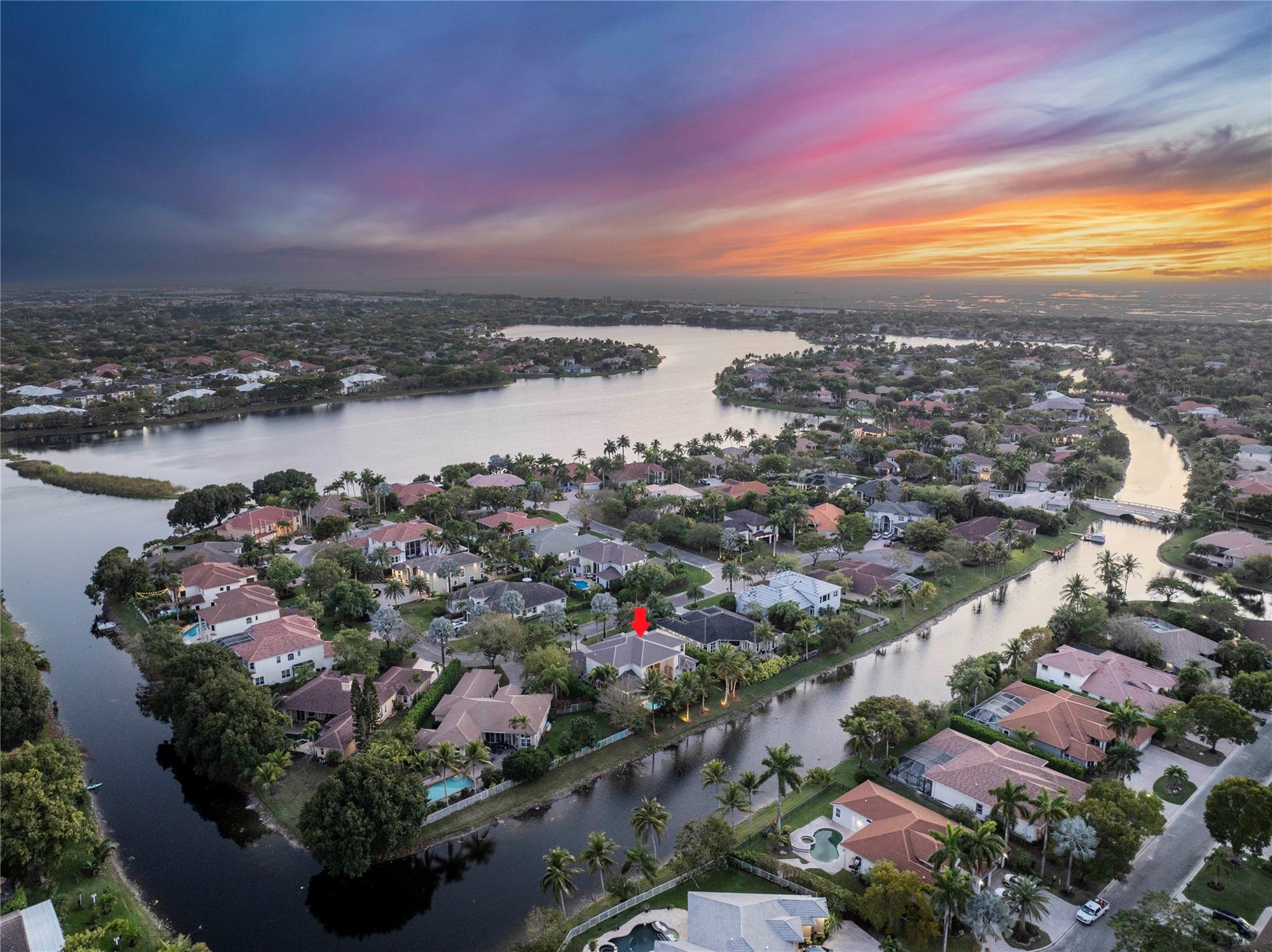 Stunning estate home on water, access to 125 acre navigable LAKE CORAL SPRINGS. New roof Jan. 2025. Hurricane protection for entire home. Exceptional quality, prestigious Maui by Centerline Homes. Dramatic entry reveals 21' ceilings, palladium windows, Saturnia marble floors & panoramic views of pool-patio-water from almost every room. Living room provides room for grand piano & more. Formal dining room. Big custom kitchen, breakfast room with window seat & built-in, large family room. Primary bedroom with sitting area, & large office downstairs. Upstairs additional entertaining area has sweeping views and custom built-in bar. Two ensuite bedrooms. Three car garage plus an air-conditioned bonus room/workshop/office. Guard gated 24 hrs. Close to shops, schools, parks, Sawgrass expwy.