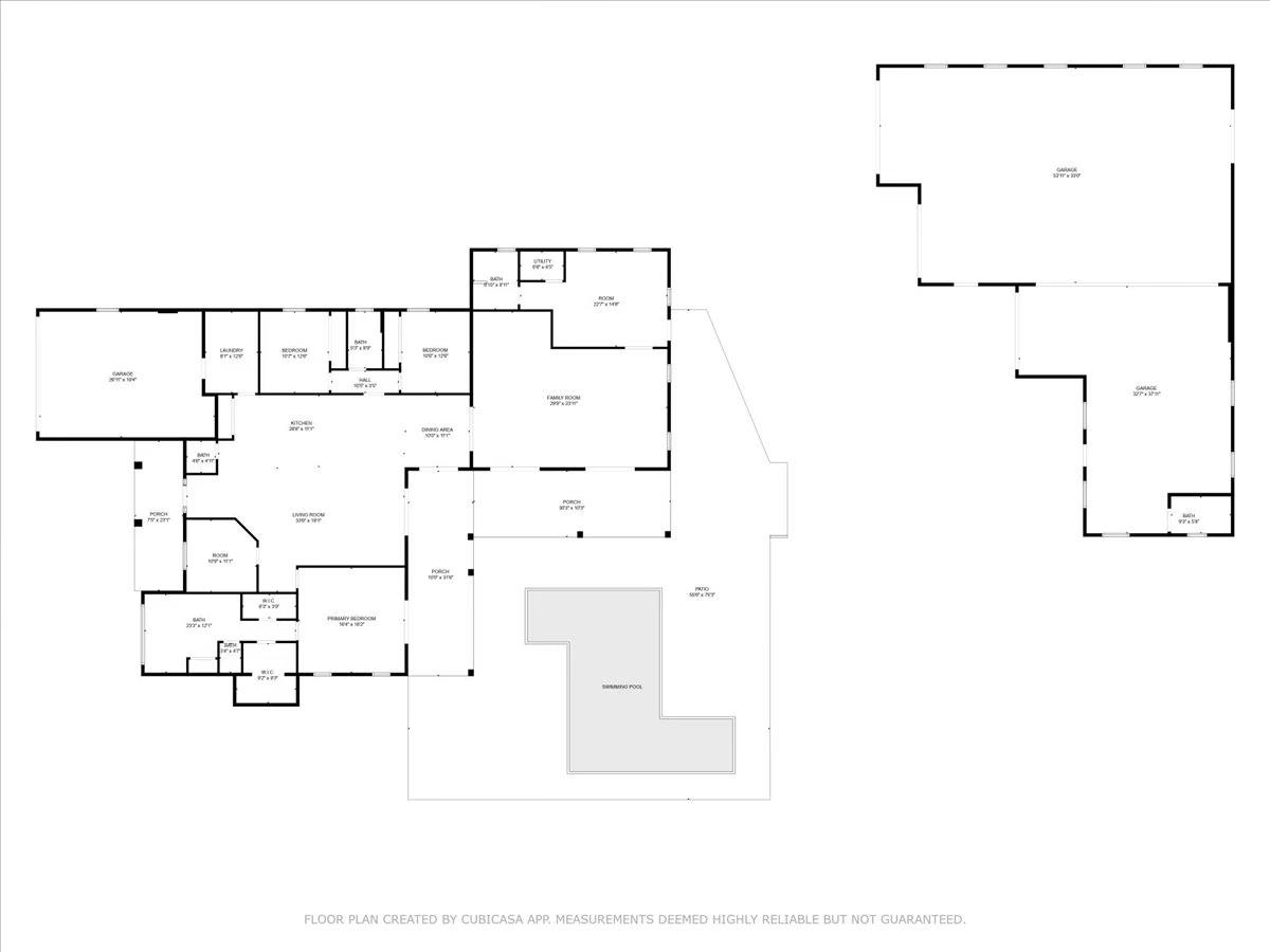 Come see this beautiful home built in 2022 then massively upgraded since including a large addition to the main house which features a huge family room and a bonus convertible room with full bath and seperate entrance, a 2814 sq. ft detached garage large enough to accommodate your largest RV or Boat PLUS the rest of your toys and it includes a 24x22' workshop with a private entrance and full bath. The 30x24' salt water pool, 1000 gal propane tank installation, slab and hookup ready for a whole house generator and a concrete and paver circular drive that goes around the entire lushly landscaped, fenced property with two beautiful, wide, electronic gates were all completed in 2024. Beautiful lighting features can be seen throughout the home as well as many other beautiful upgrades.