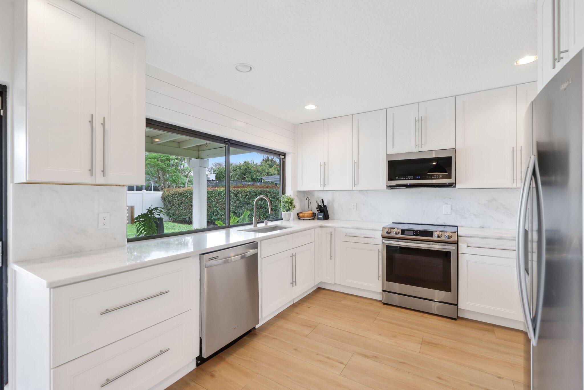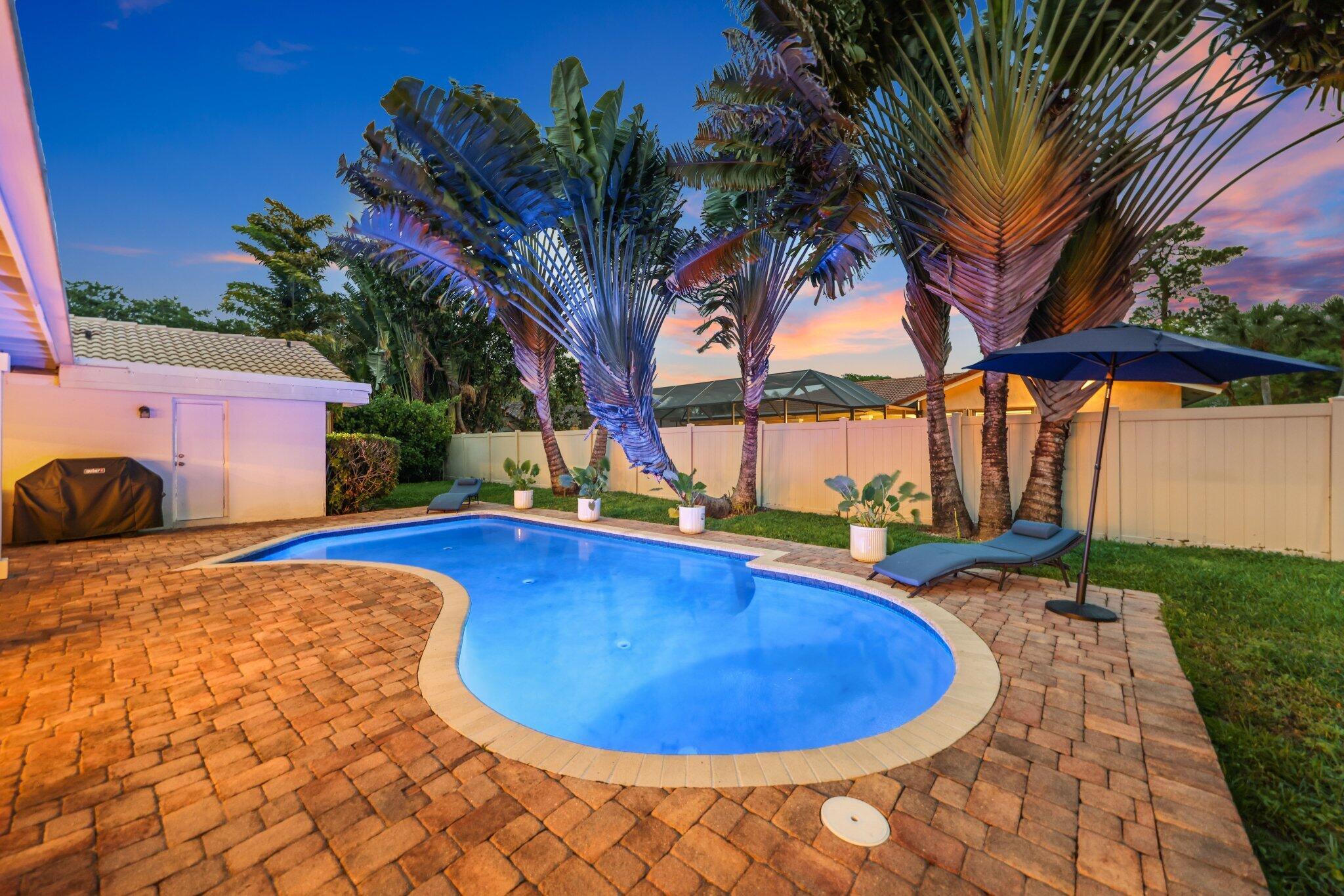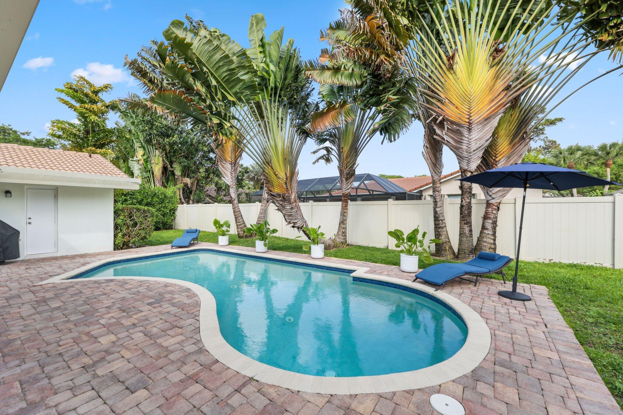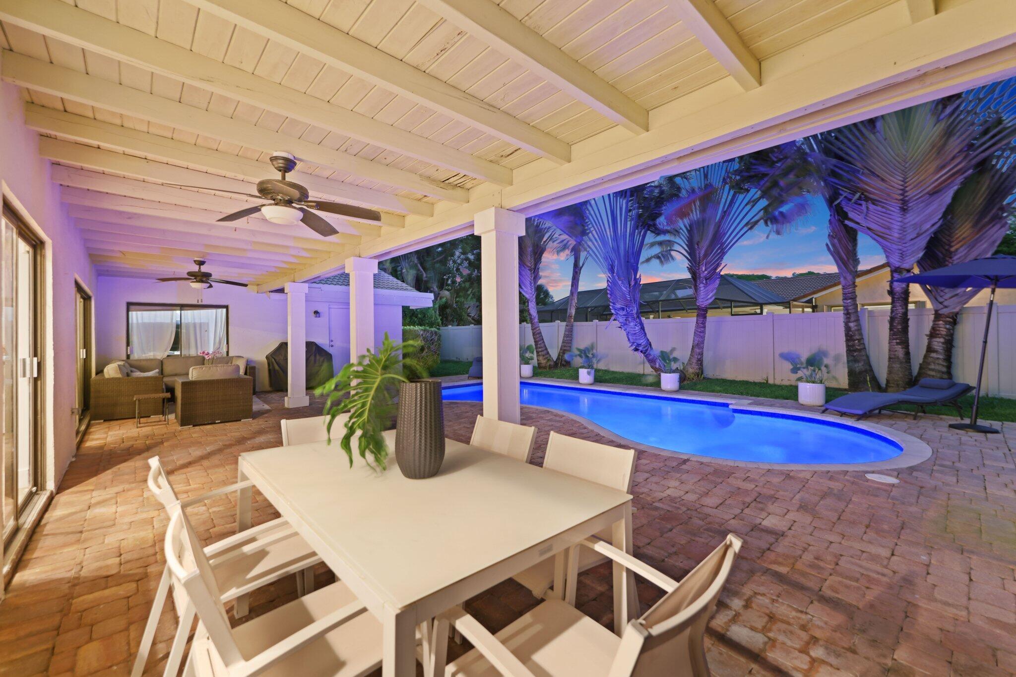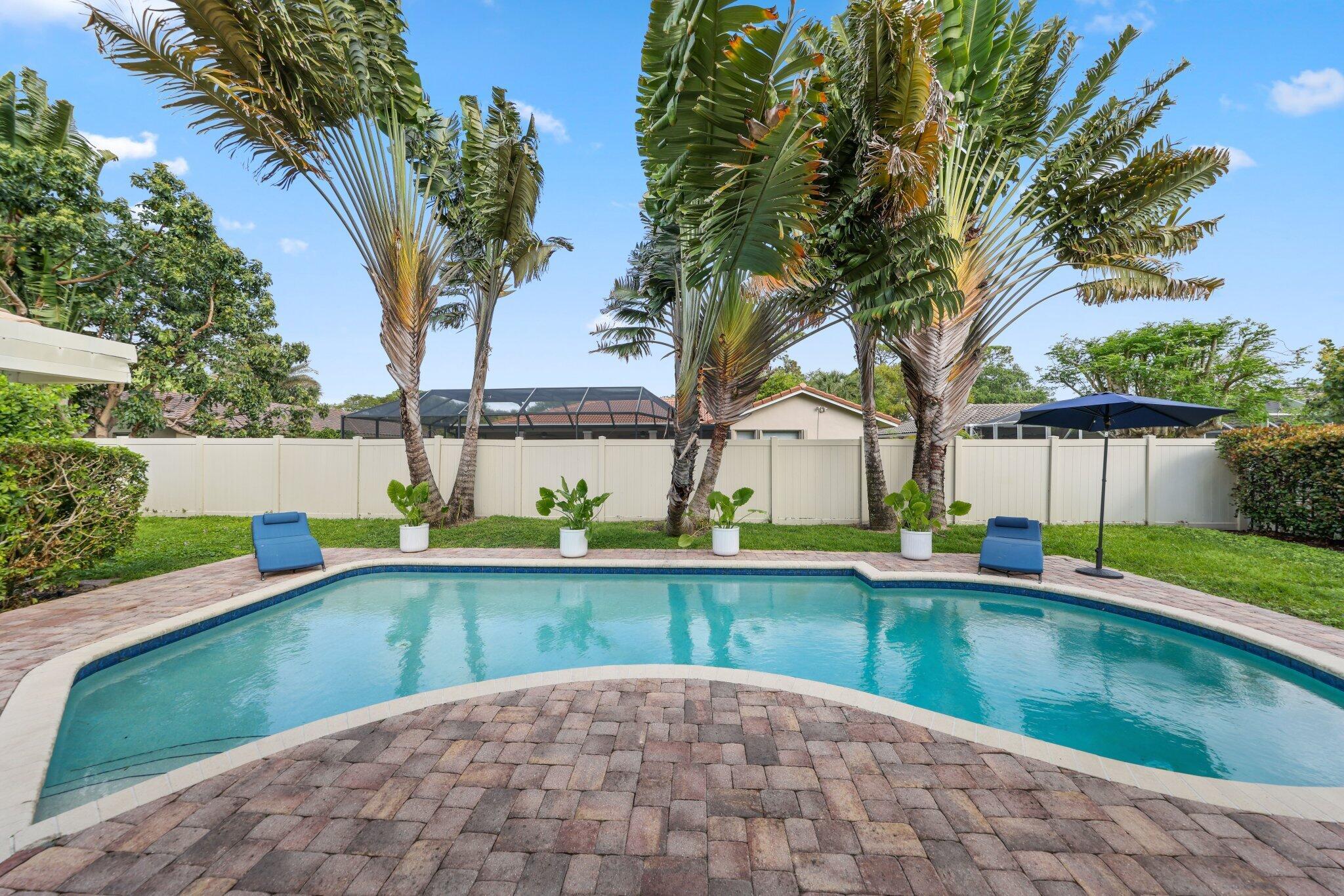 Welcome to this stunning, fully renovated home in Paseos, one of Boca Raton's most sought-after communities--where homes rarely become available. As you step inside, you'll immediately notice the open-concept design, enhanced by beautiful oversized white oak plank tile throughout. The kitchen is a true centerpiece, featuring a stunning translucent quartzite oversized peninsula with seating for 6-8. White oak floating shelves, custom soft-close pull-out drawers, and ample cabinetry. A dedicated movie room offers the perfect space to unwind for a cozy night in or entertain guests. This versatile room can also be converted into a bedroom, office, or playroom to fit your needs and lifestyle. Additional features include a brand-new washer and dryer, some impact windows, shutters throughout, a