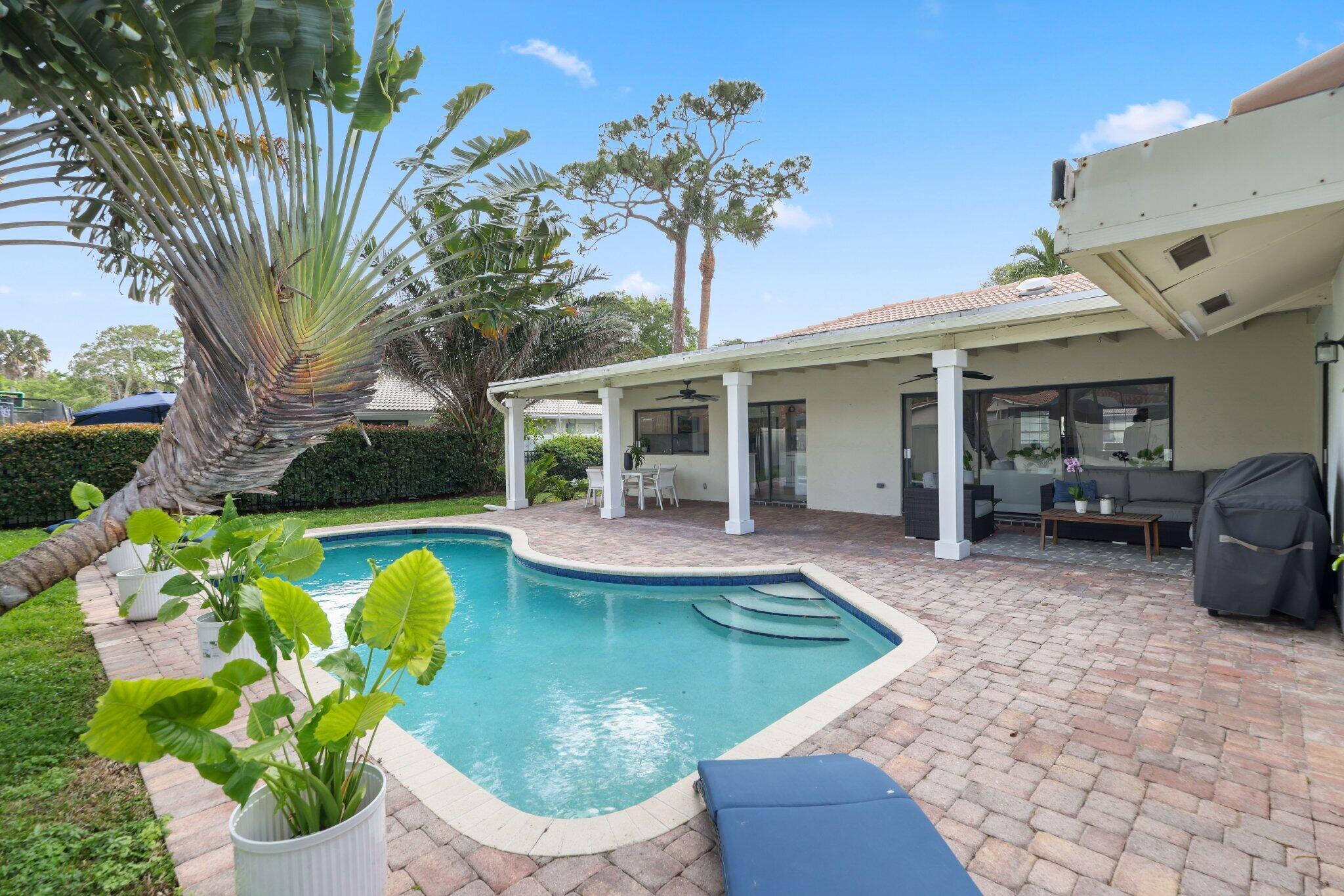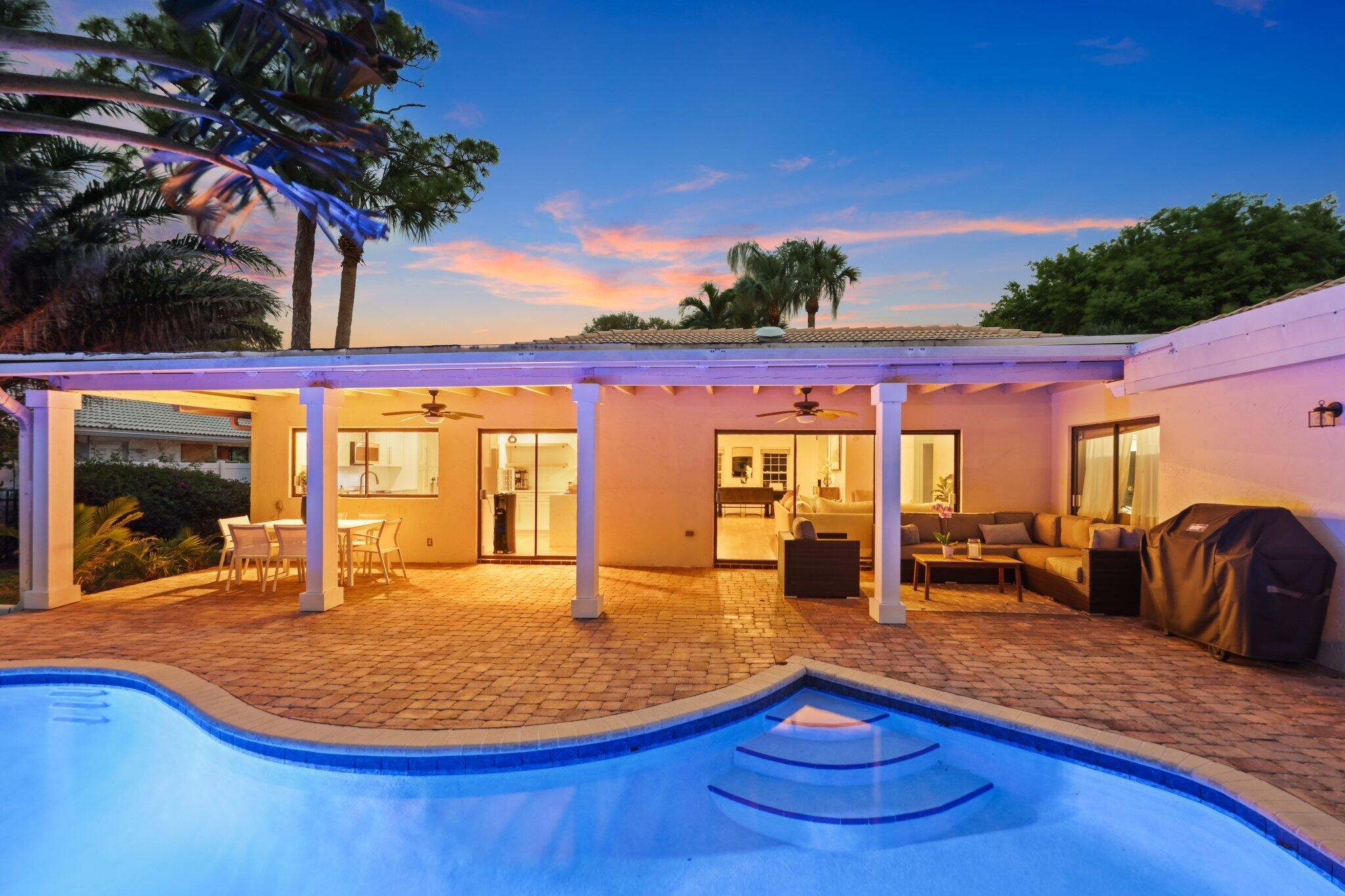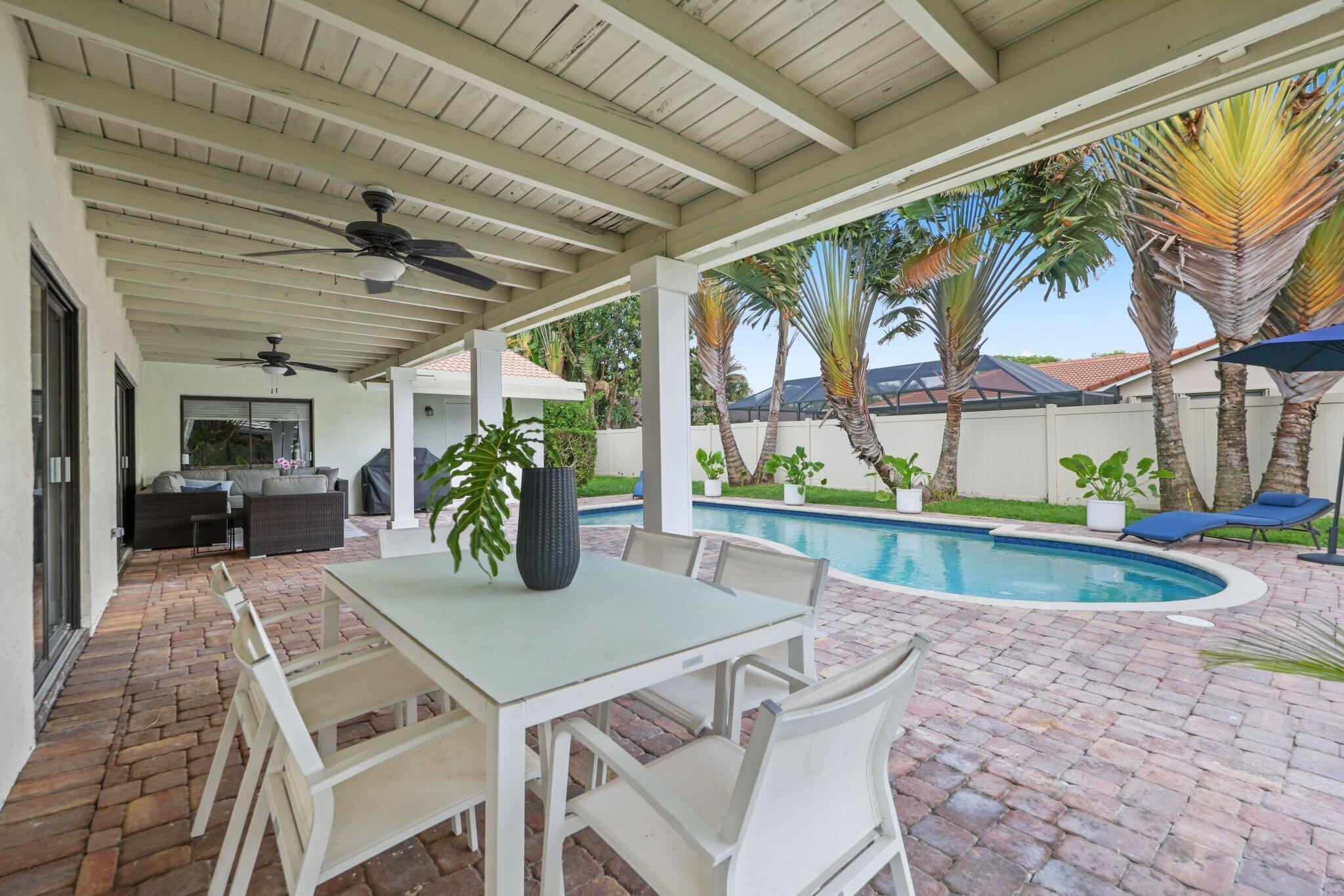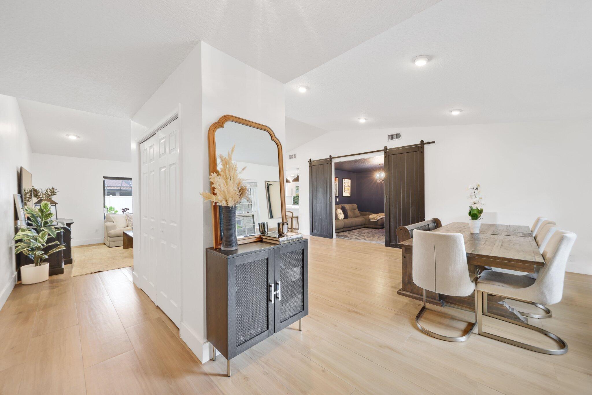 Welcome to this stunning, fully renovated home in Paseos, one of Boca Raton's most sought-after communities--where homes rarely become available. As you step inside, you'll immediately notice the open-concept design, enhanced by beautiful oversized white oak plank tile throughout. The kitchen is a true centerpiece, featuring a stunning translucent quartzite oversized peninsula with seating for 6-8. White oak floating shelves, custom soft-close pull-out drawers, and ample cabinetry. A dedicated movie room offers the perfect space to unwind for a cozy night in or entertain guests. This versatile room can also be converted into a bedroom, office, or playroom to fit your needs and lifestyle. Additional features include a brand-new washer and dryer, some impact windows, shutters throughout, a
