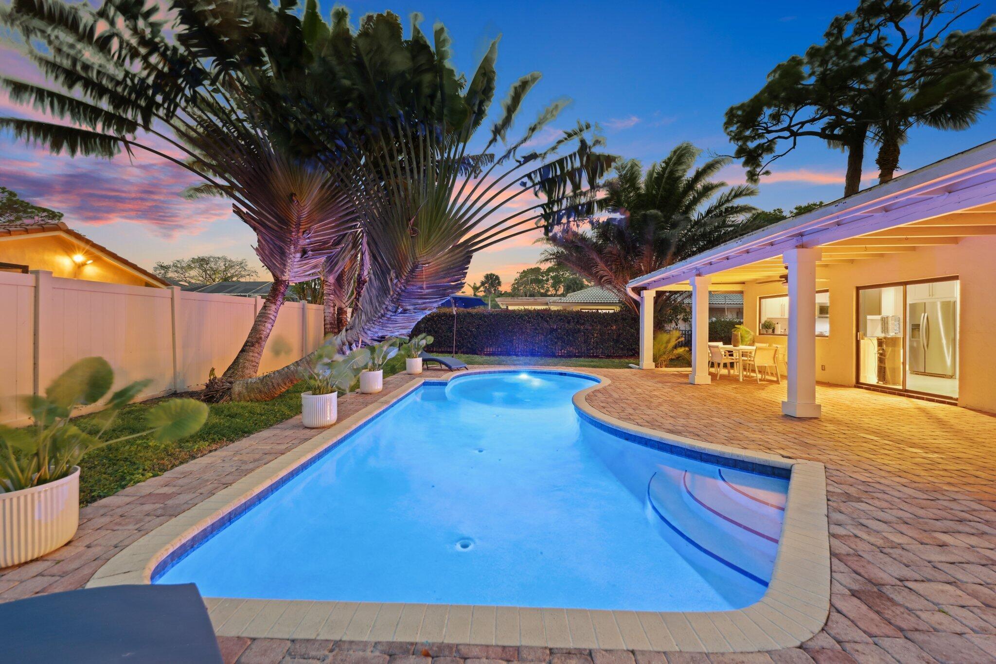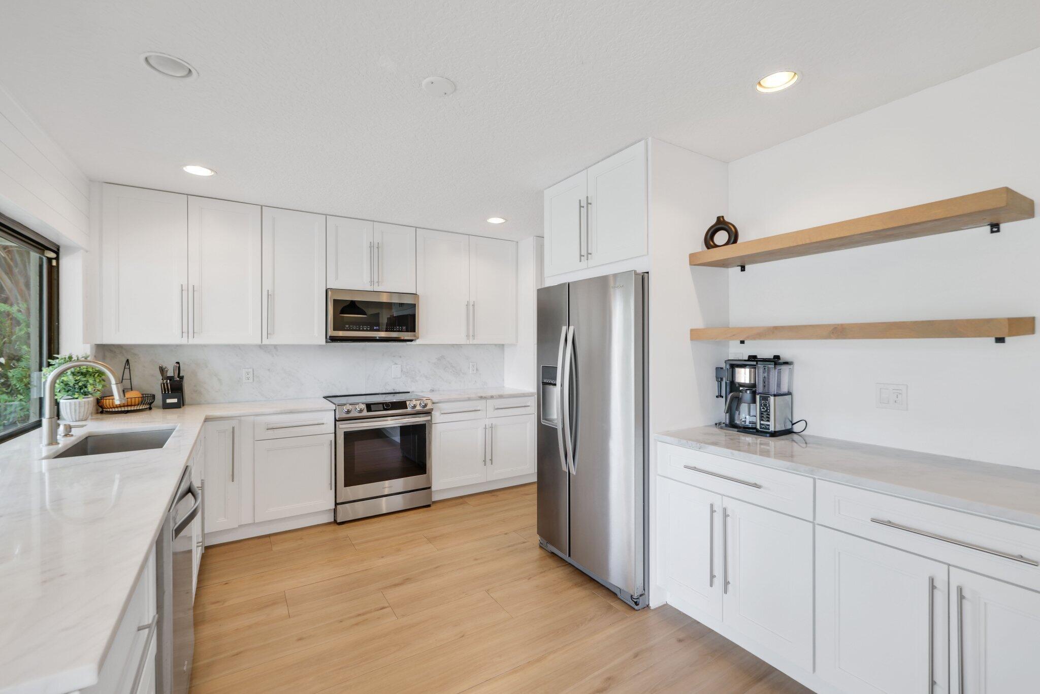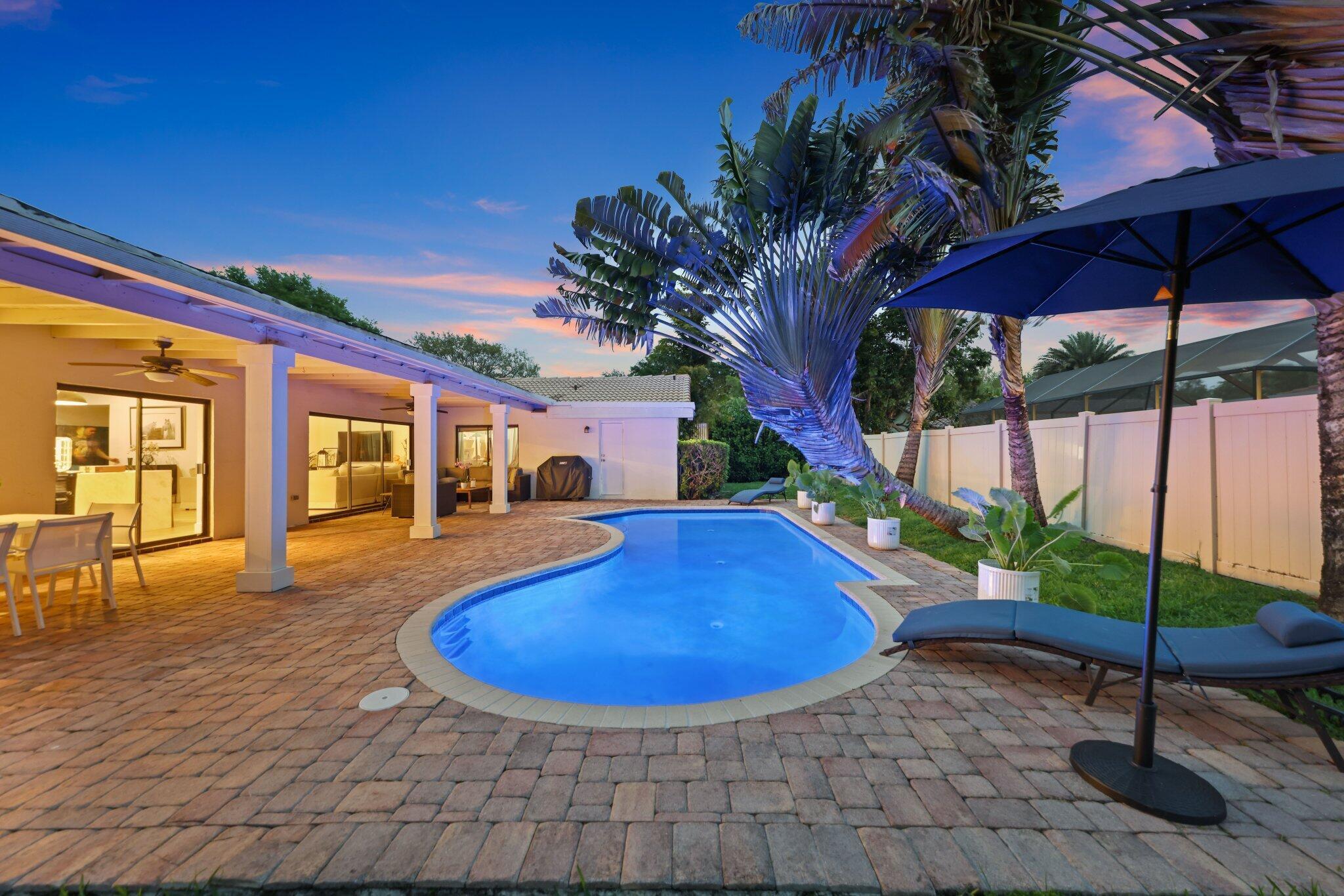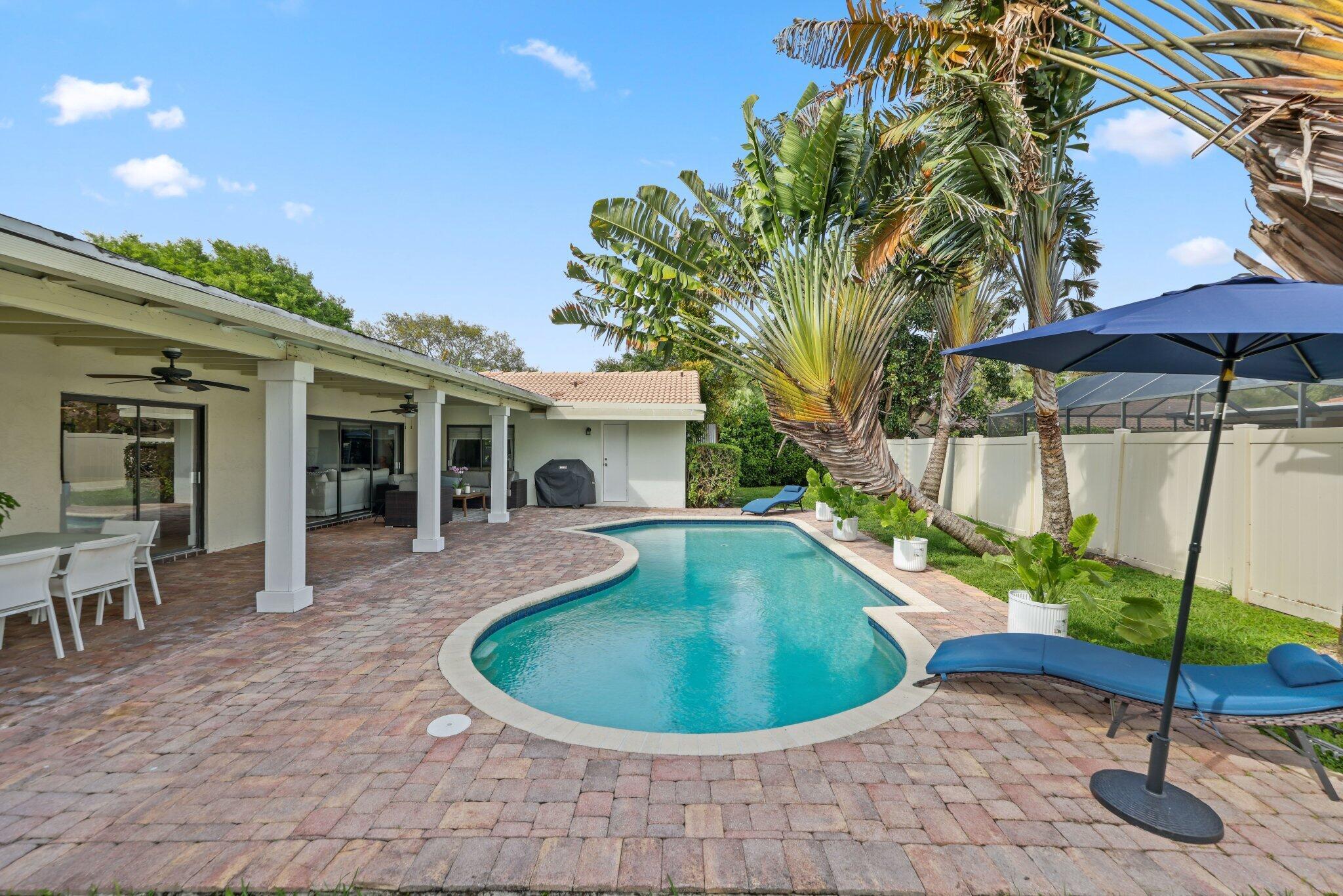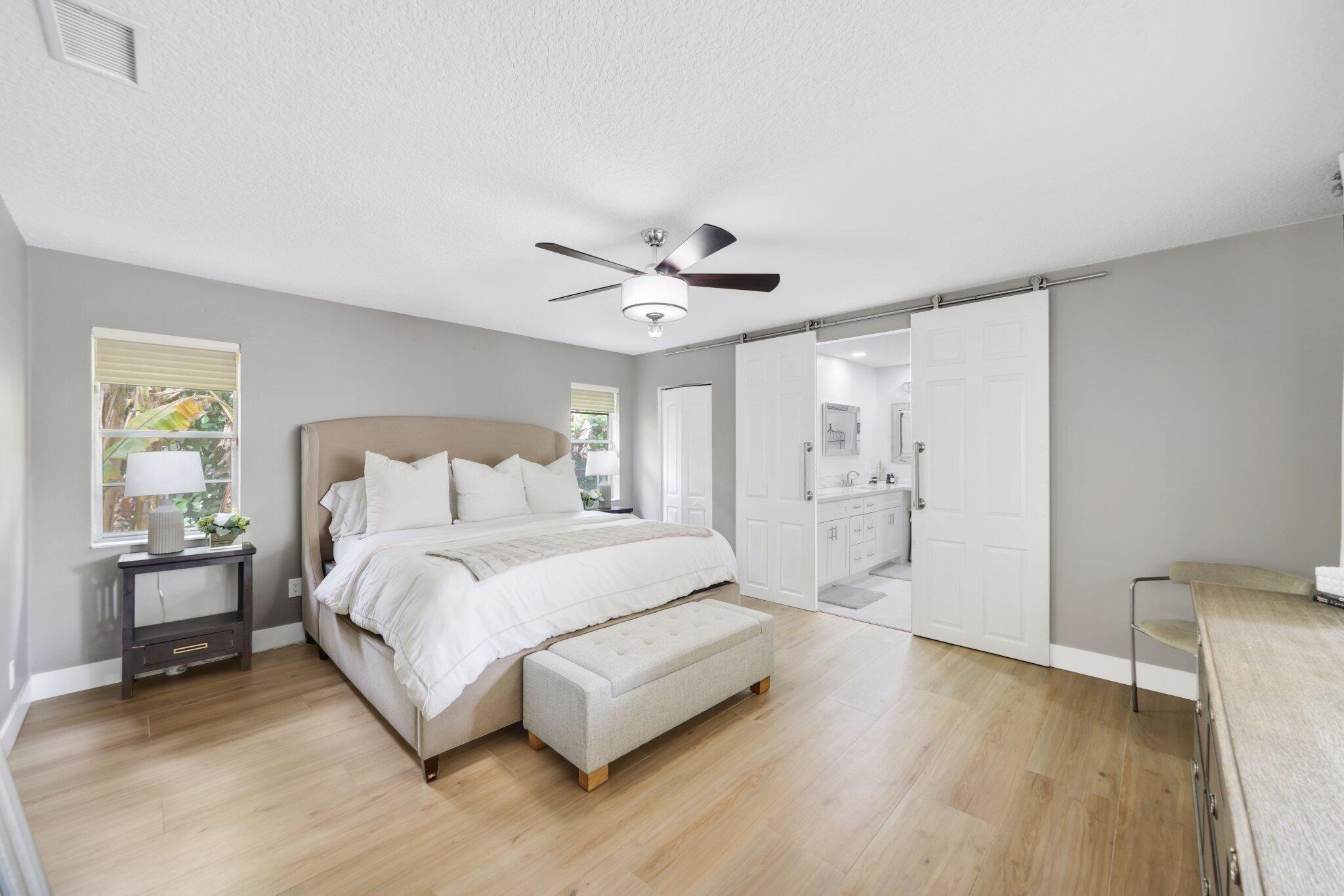 Welcome to this stunning, fully renovated home in Paseos, one of Boca Raton's most sought-after communities--where homes rarely become available. As you step inside, you'll immediately notice the open-concept design, enhanced by beautiful oversized white oak plank tile throughout. The kitchen is a true centerpiece, featuring a stunning translucent quartzite oversized peninsula with seating for 6-8. White oak floating shelves, custom soft-close pull-out drawers, and ample cabinetry. A dedicated movie room offers the perfect space to unwind for a cozy night in or entertain guests. This versatile room can also be converted into a bedroom, office, or playroom to fit your needs and lifestyle. Additional features include a brand-new washer and dryer, some impact windows, shutters throughout, a