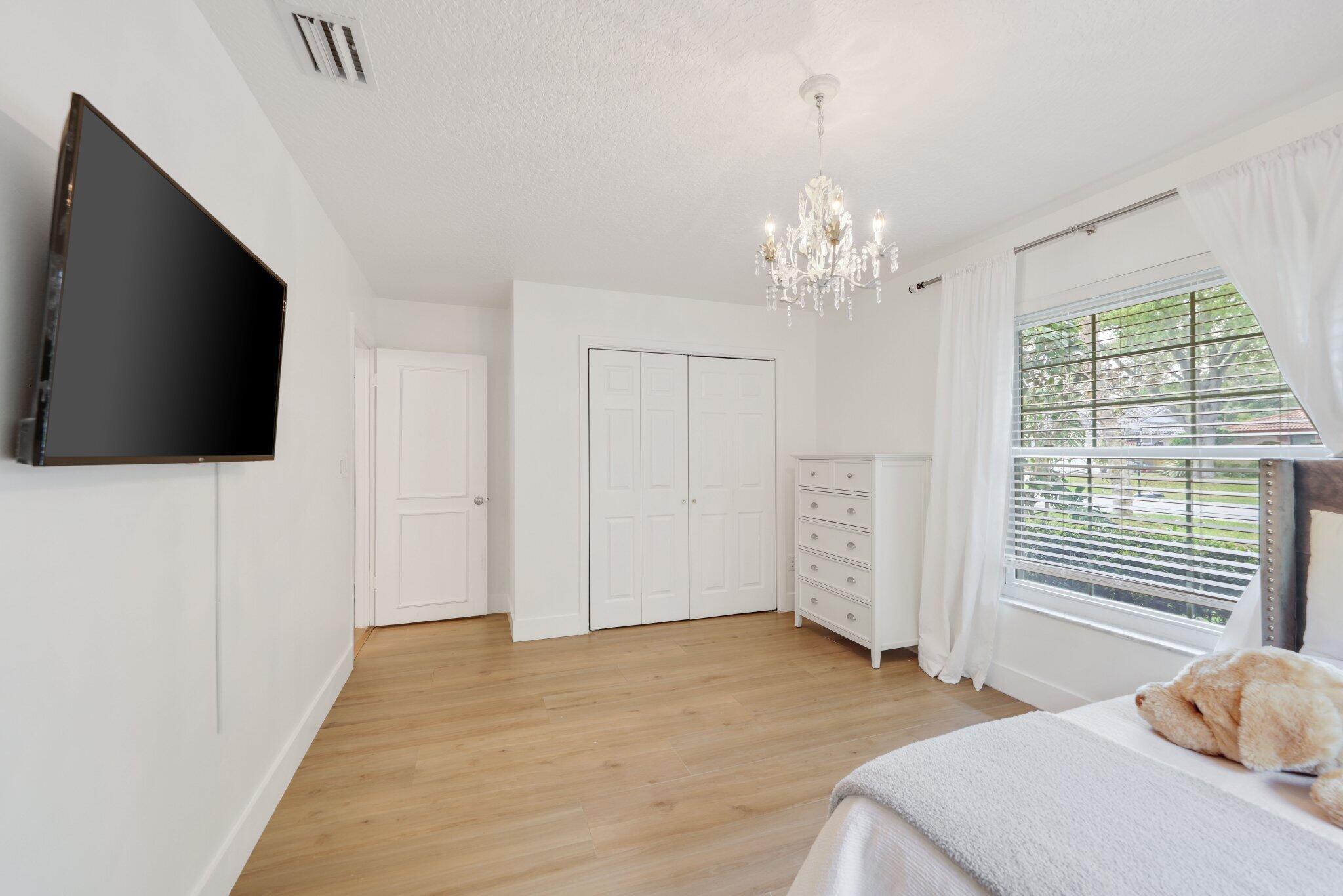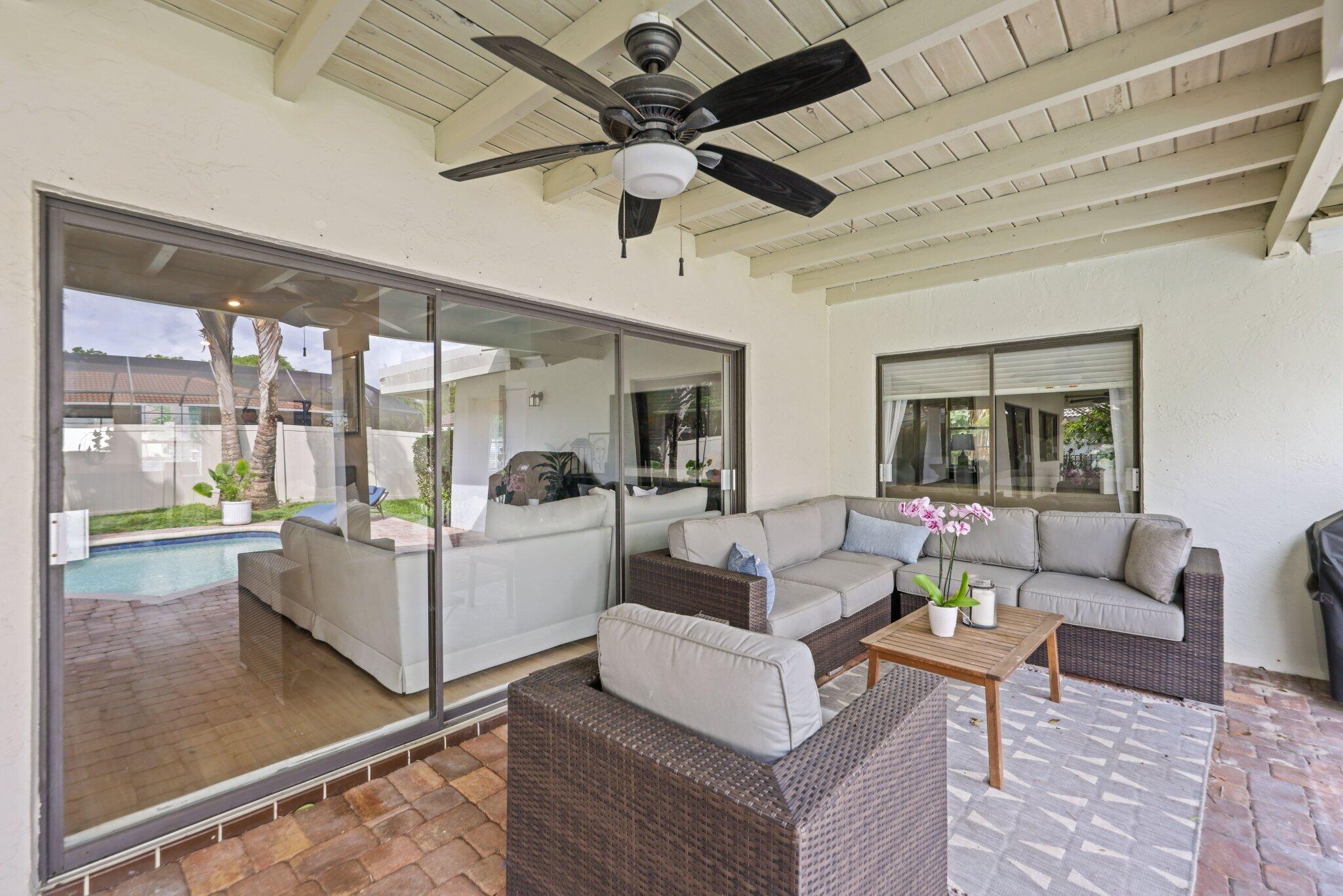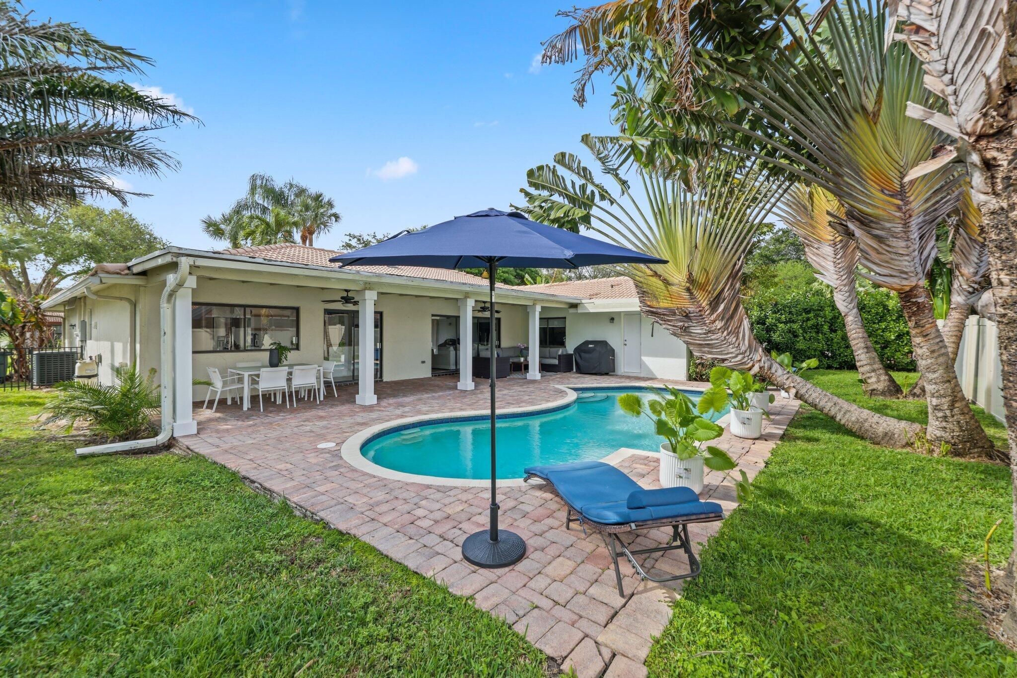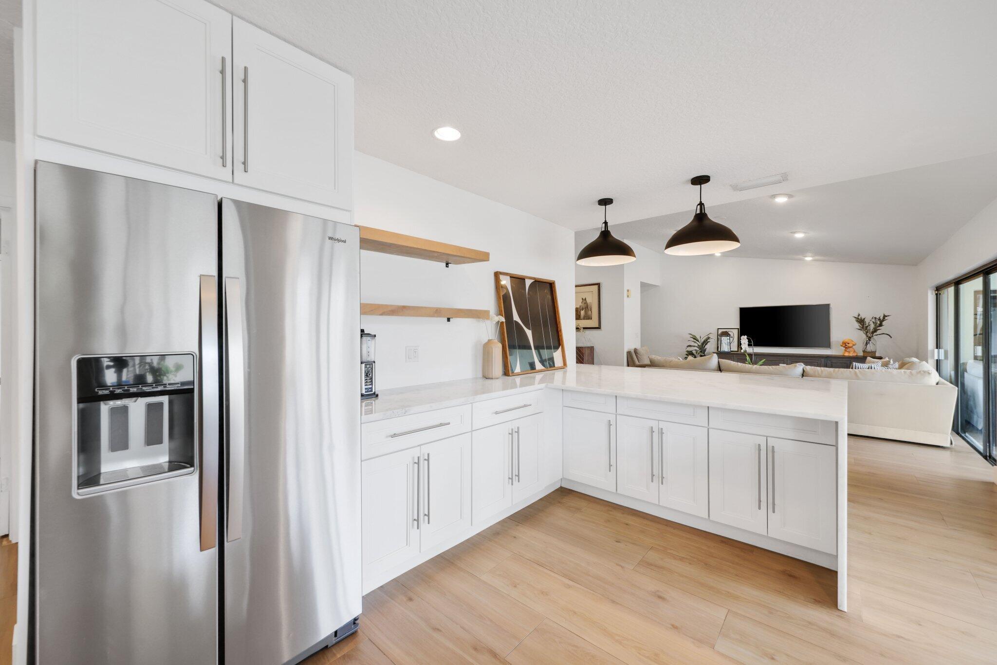 Welcome to this stunning, fully renovated home in Paseos, one of Boca Raton's most sought-after communities--where homes rarely become available. As you step inside, you'll immediately notice the open-concept design, enhanced by beautiful oversized white oak plank tile throughout. The kitchen is a true centerpiece, featuring a stunning translucent quartzite oversized peninsula with seating for 6-8. White oak floating shelves, custom soft-close pull-out drawers, and ample cabinetry. A dedicated movie room offers the perfect space to unwind for a cozy night in or entertain guests. This versatile room can also be converted into a bedroom, office, or playroom to fit your needs and lifestyle. Additional features include a brand-new washer and dryer, some impact windows, shutters throughout, a
