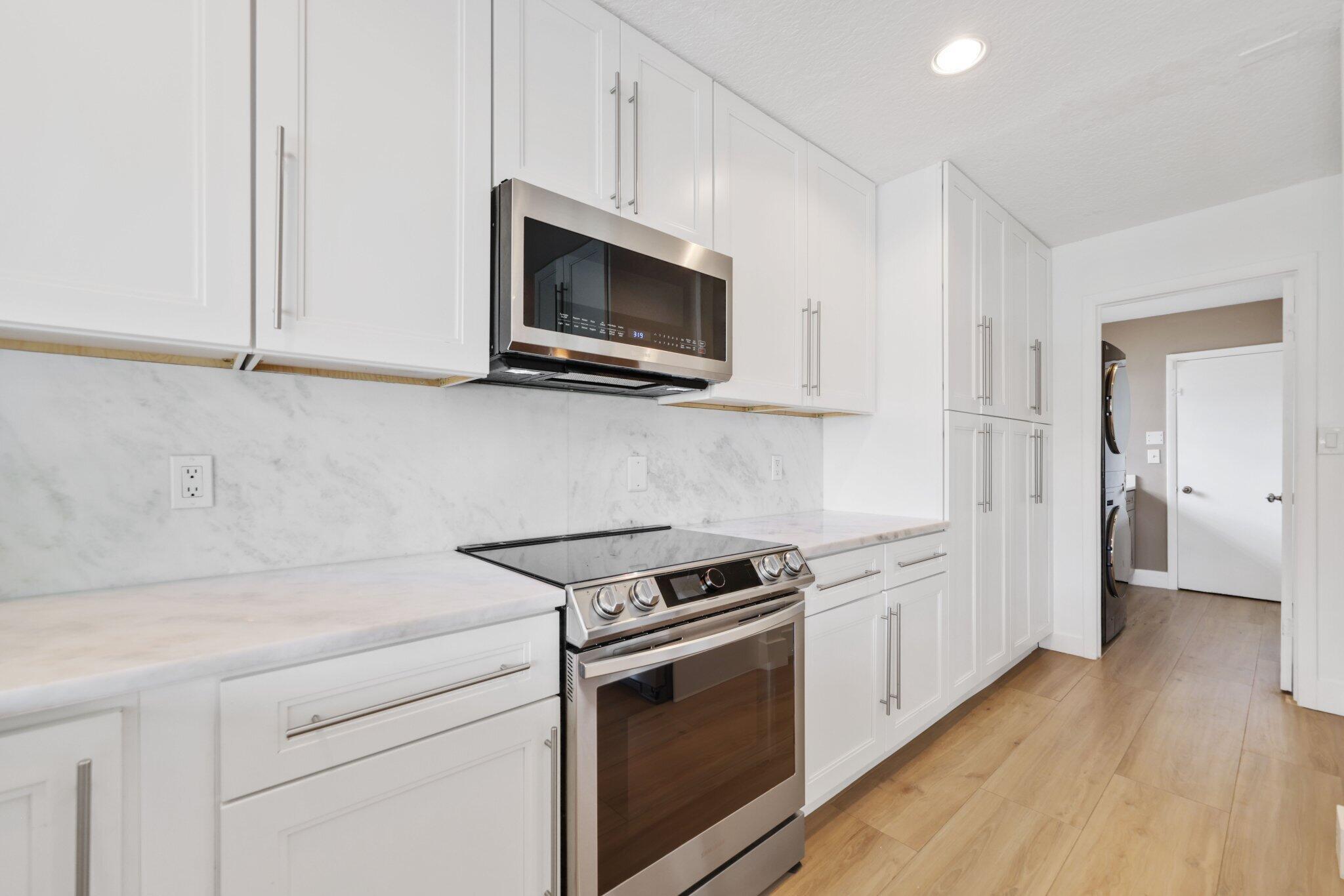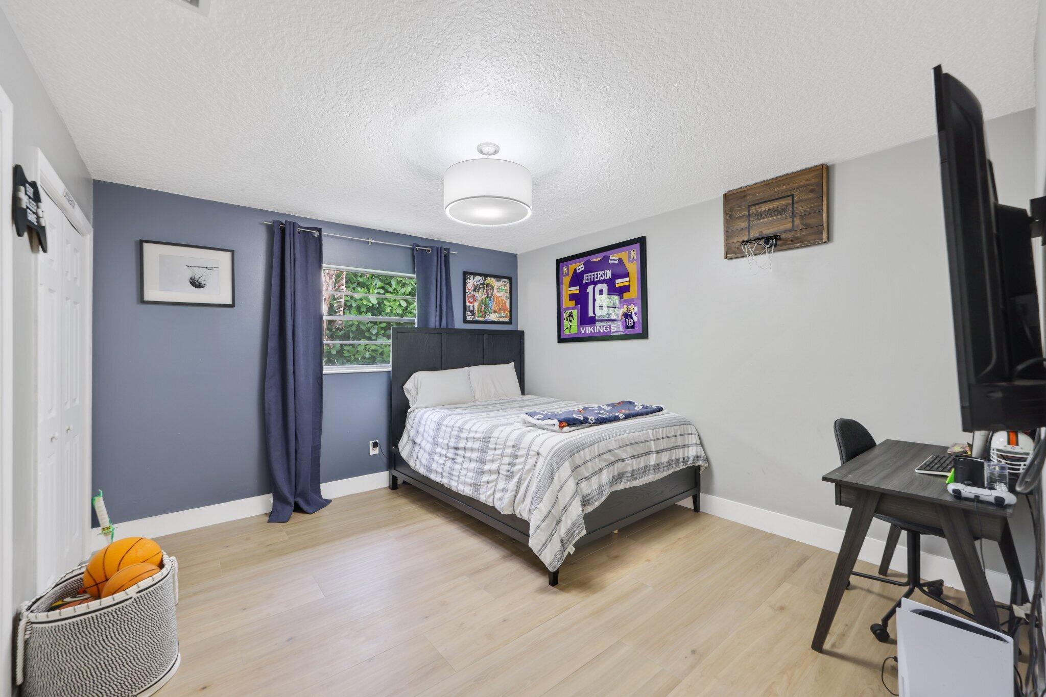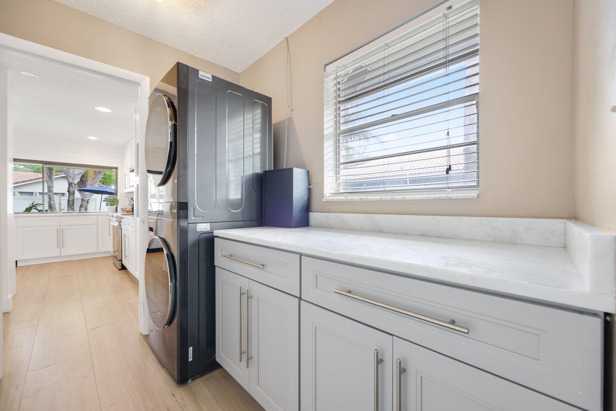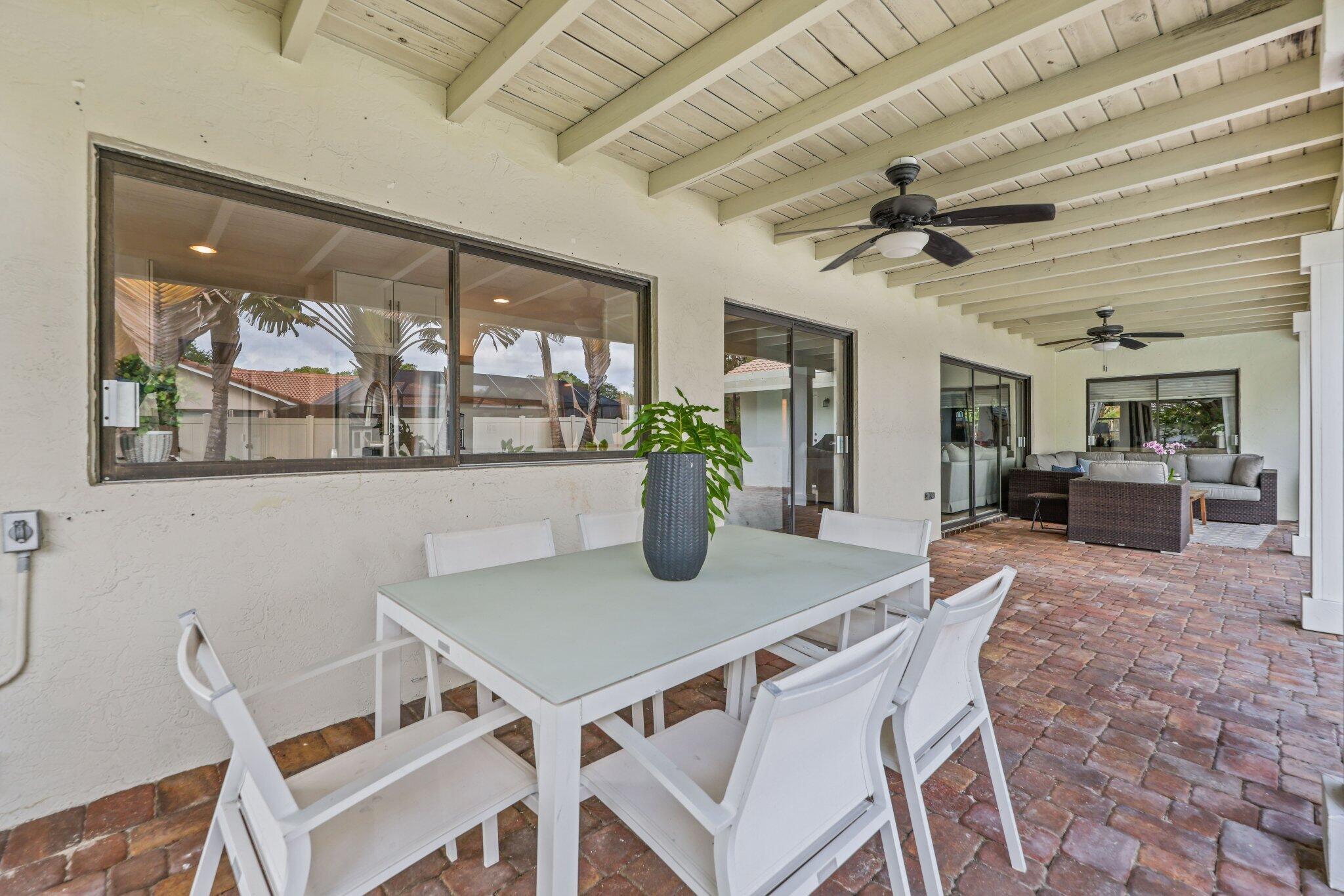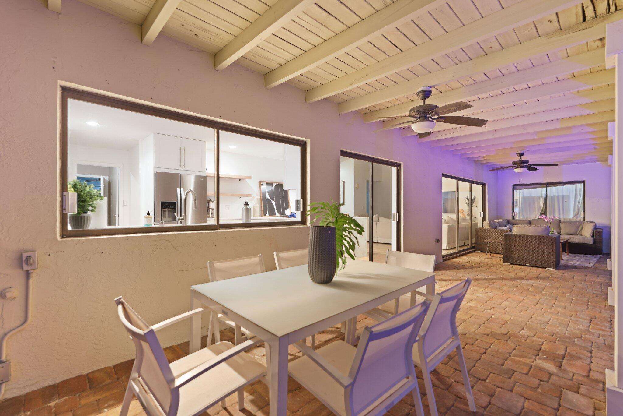 Welcome to this stunning, fully renovated home in Paseos, one of Boca Raton's most sought-after communities--where homes rarely become available. As you step inside, you'll immediately notice the open-concept design, enhanced by beautiful oversized white oak plank tile throughout. The kitchen is a true centerpiece, featuring a stunning translucent quartzite oversized peninsula with seating for 6-8. White oak floating shelves, custom soft-close pull-out drawers, and ample cabinetry. A dedicated movie room offers the perfect space to unwind for a cozy night in or entertain guests. This versatile room can also be converted into a bedroom, office, or playroom to fit your needs and lifestyle. Additional features include a brand-new washer and dryer, some impact windows, shutters throughout, a