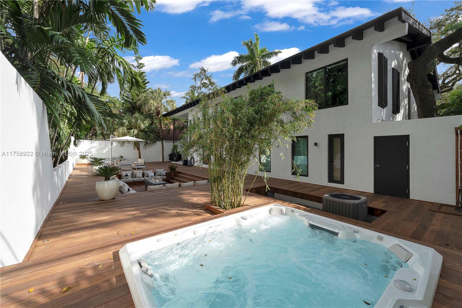 Stunning luxury home in the heat of Coconut Grove! This fully renovated residence offers a seamless blend of modern elegance and tropical charm. The property boasts a brand new updated garage under air. Current owner utilizes this space as a gym. Featuring spacious living areas, high-end finishes, and a gourmet kitchen layout, this home is perfect for those seeking comfort and style. The backyard area is a true show stopper, an incredible deck with a jacuzzi, creates the ultimate private oasis for relaxation and entertaining or enjoy the fire pit for an evening under the stars! Schedule your showing today and witness a new level of Groveite Luxury!
