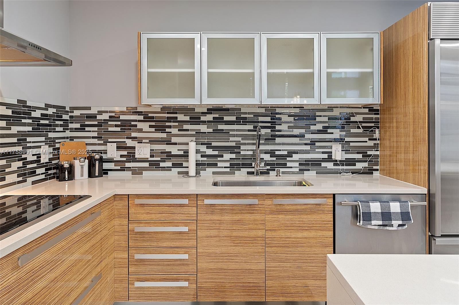 Rare townhouse designed by Steven G. Perfect blend of autonomous living in comfortable luxury at Paramount Bay, one of the most desired buildings in Edgewater. Recently upgraded: storage space built below staircase, additional recessed ceiling lights in the kitchen and wood laminate on stairs replaced the former carpet, electric blinds downstairs. Two-story, 20+ foot living room ceilings. Guest bedroom & private bathroom downstairs, master bedroom upstairs with loft balcony, huge den area, spacious walk-in closet. Subzero & Wolf appliances, wine chiller, full size washer & dryer. Unit has a covered parking space. Access to all amenities which include 2 pools, gym, spa, valet, cabanas, bonfire area and more. Wi-fi & cable included. It can be sold furnished or unfurnished. Pets ok