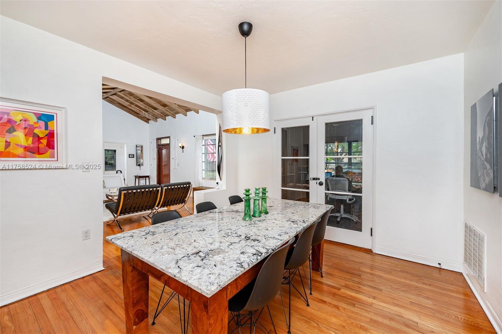 Miami Springs Charm at its Finest!! This Morningside Drive Home has been beautifully maintained by its three owners since 1937. Featuring 3 spacious bedrooms, two bathrooms and a 1-car garage/laundry room, this home is ready to move in and enjoy. Original hardwood floors, 2 wood burning fireplaces, spacious family room, beautiful vaulted tongue and groove ceilings, built ins and more. The primary bedroom is very spacious and features, two walk in closets, sitting area and double sliding doors with tranquil views of the garden and covered patio. The primary bath is complete with double sinks, shower and features imported Moroccan Zellige tile. The split bedroom plan features two additional bedrooms with jack and jill bathroom recently updated with all the modern finishes.