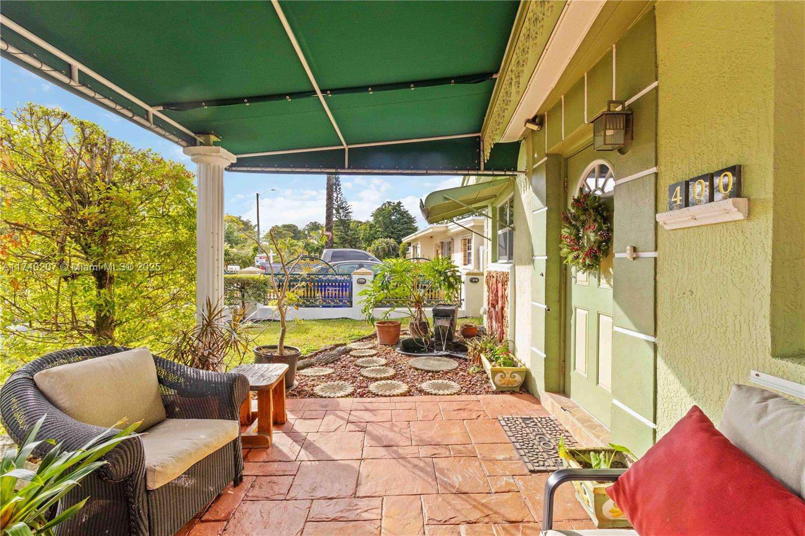 Welcome to this beautifully updated home 2 bed 1 bath, also featuring a bright and airy living space that combines warmth and style with large family room great for entertaining. The sleek kitchen boasts contemporary cabinetry and stainless-steel appliances. Impact Windows in the bedrooms. Enjoy outdoor living on the covered porch surrounded by lush landscaping and stepping stones leading to the entrance. With a convenient wrought-iron gate, off-street parking, and a cozy atmosphere, this home is ideal for anyone looking for comfort and charm. Don’t miss your chance to make it yours!