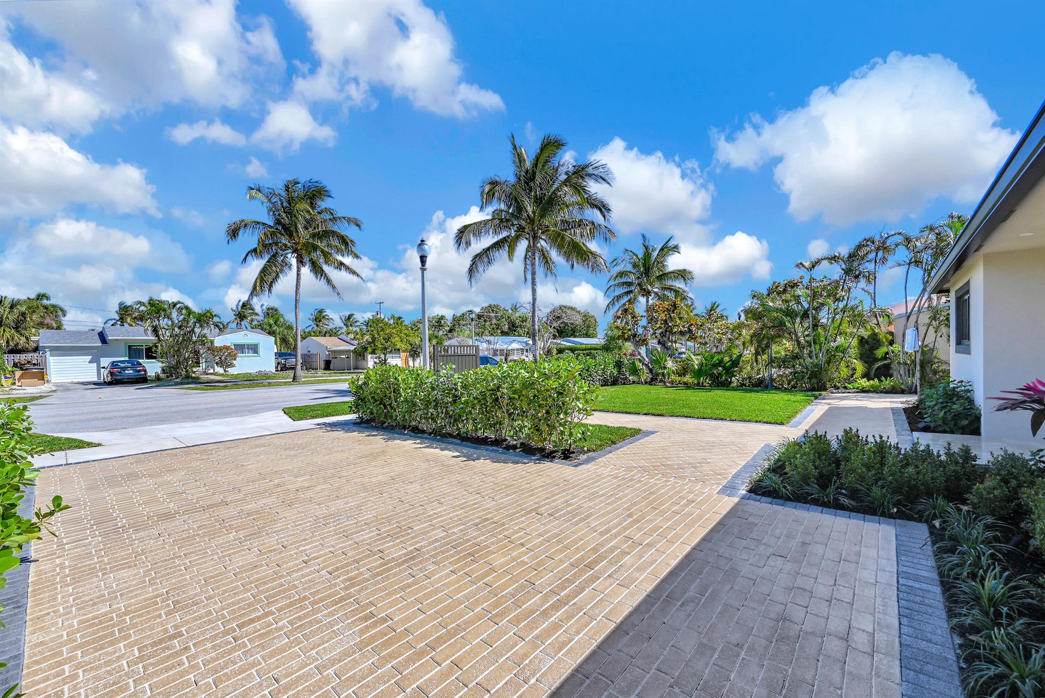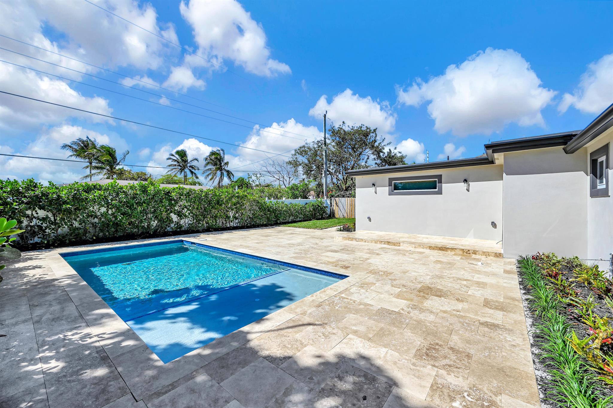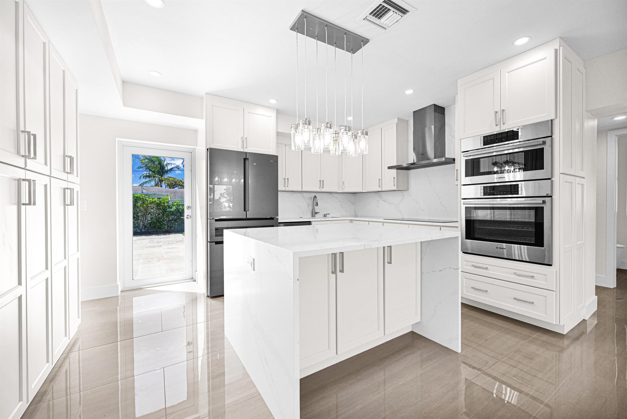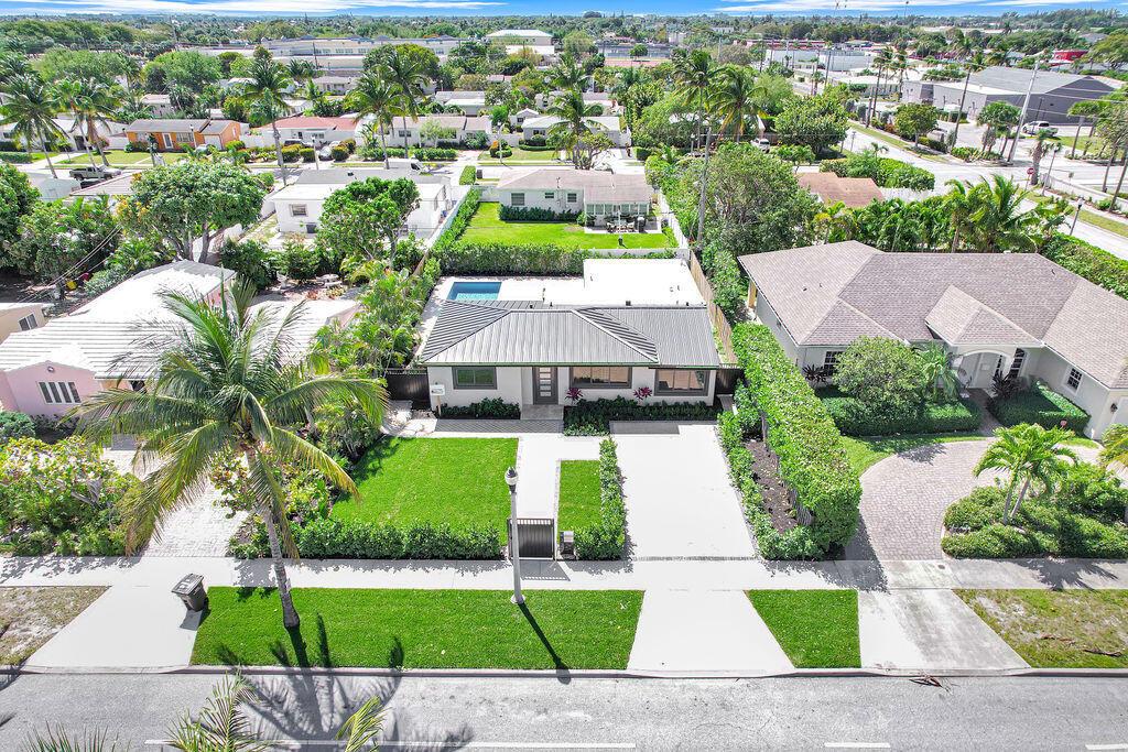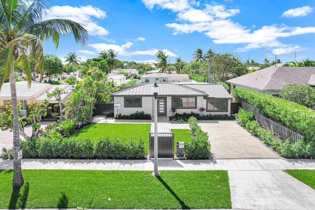 Nestled in the highly sought-after SoSo community of West Palm Beach.This beautifully remodeled home offers a perfect blend of modern luxury and timeless craftsmanship.Every inch of the property has been thoughtfully remodeled, starting with a brand-new sleek metal roof, impact-windows and doors, all-new copper plumbing, and electrical systems, elegant 12'' x 24'' porcelain tile throughout,solid wood doors, stunning kitchen with custom maple cabinetry, quartz counters & high end Bosch appliances. Bathrooms showcase porcelain tile to the ceilings, CastaDiva bidets, Kohler sinks & marble tops. Spray home insulation within walls and attic and an oasis backyard with beach style pool, travertine marble pool deck and lush private landscape. All this just 3 blocks from waterways & downtown areas