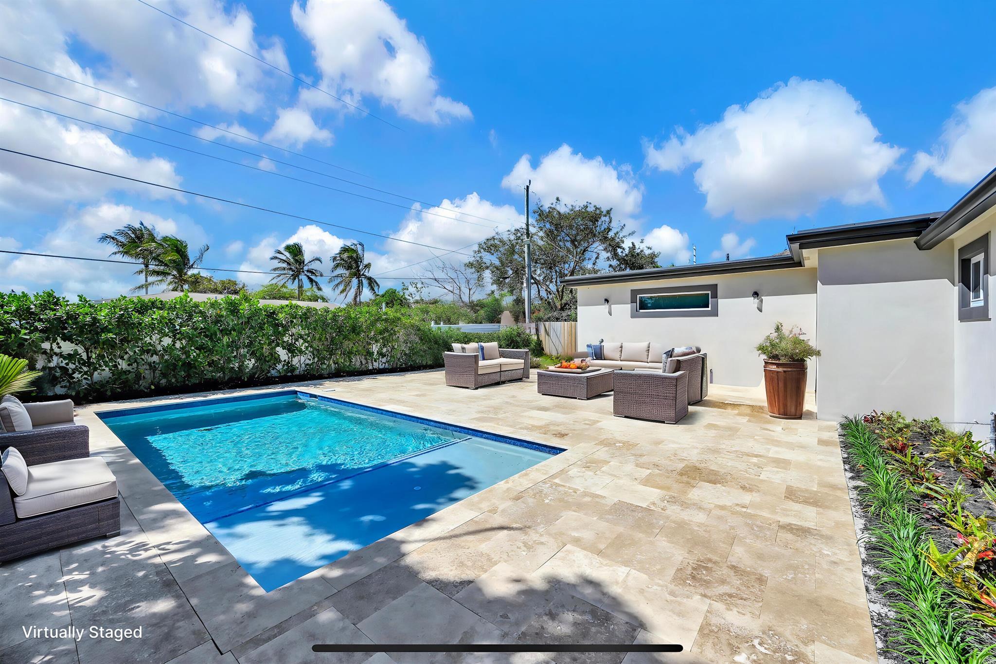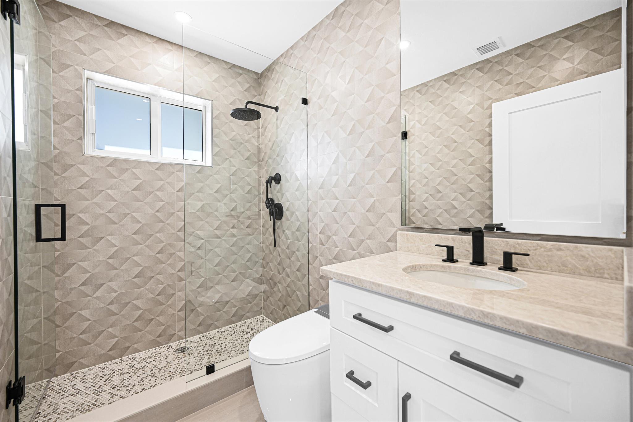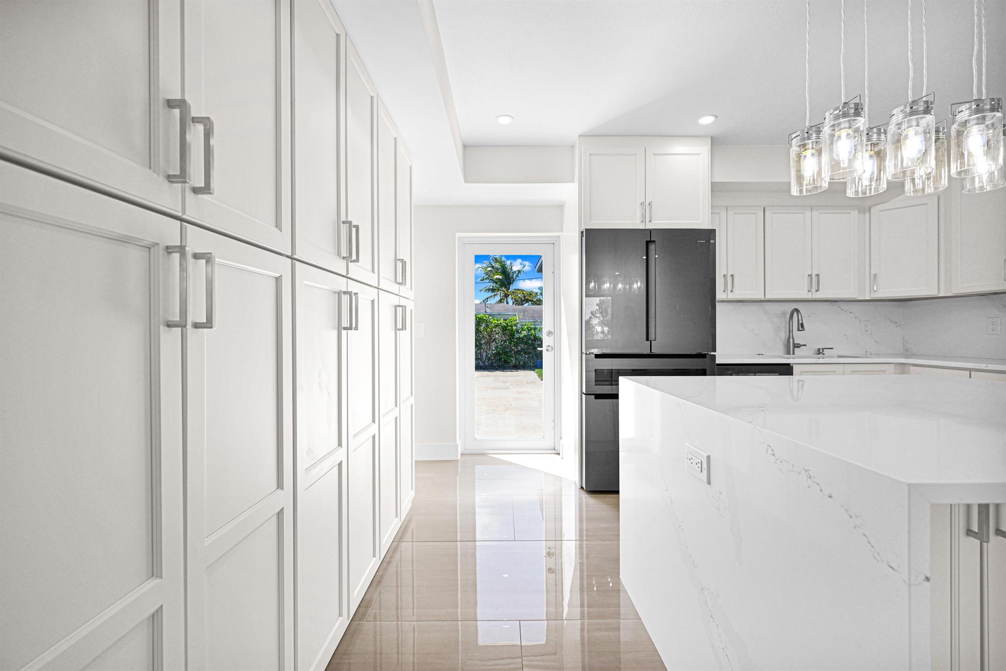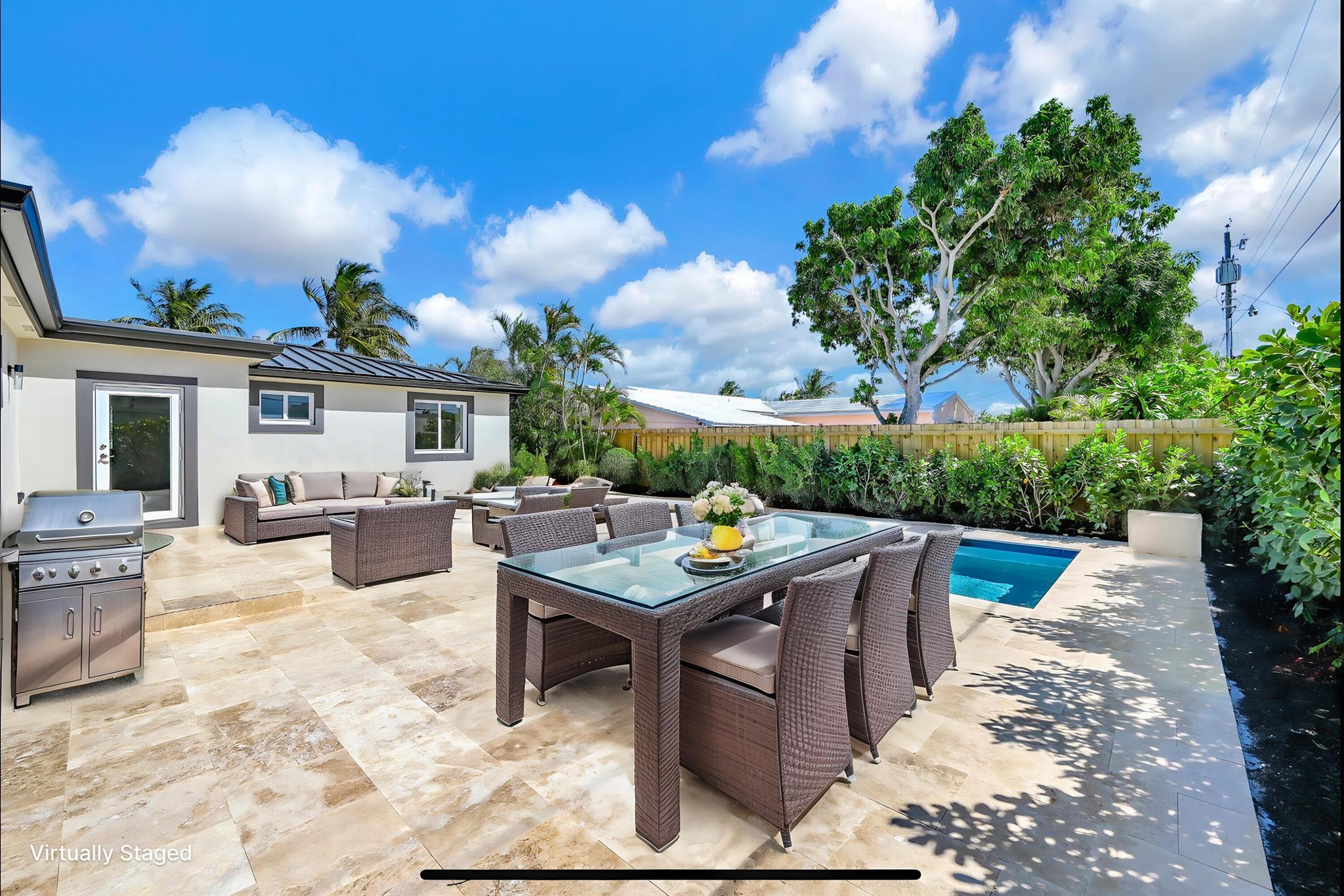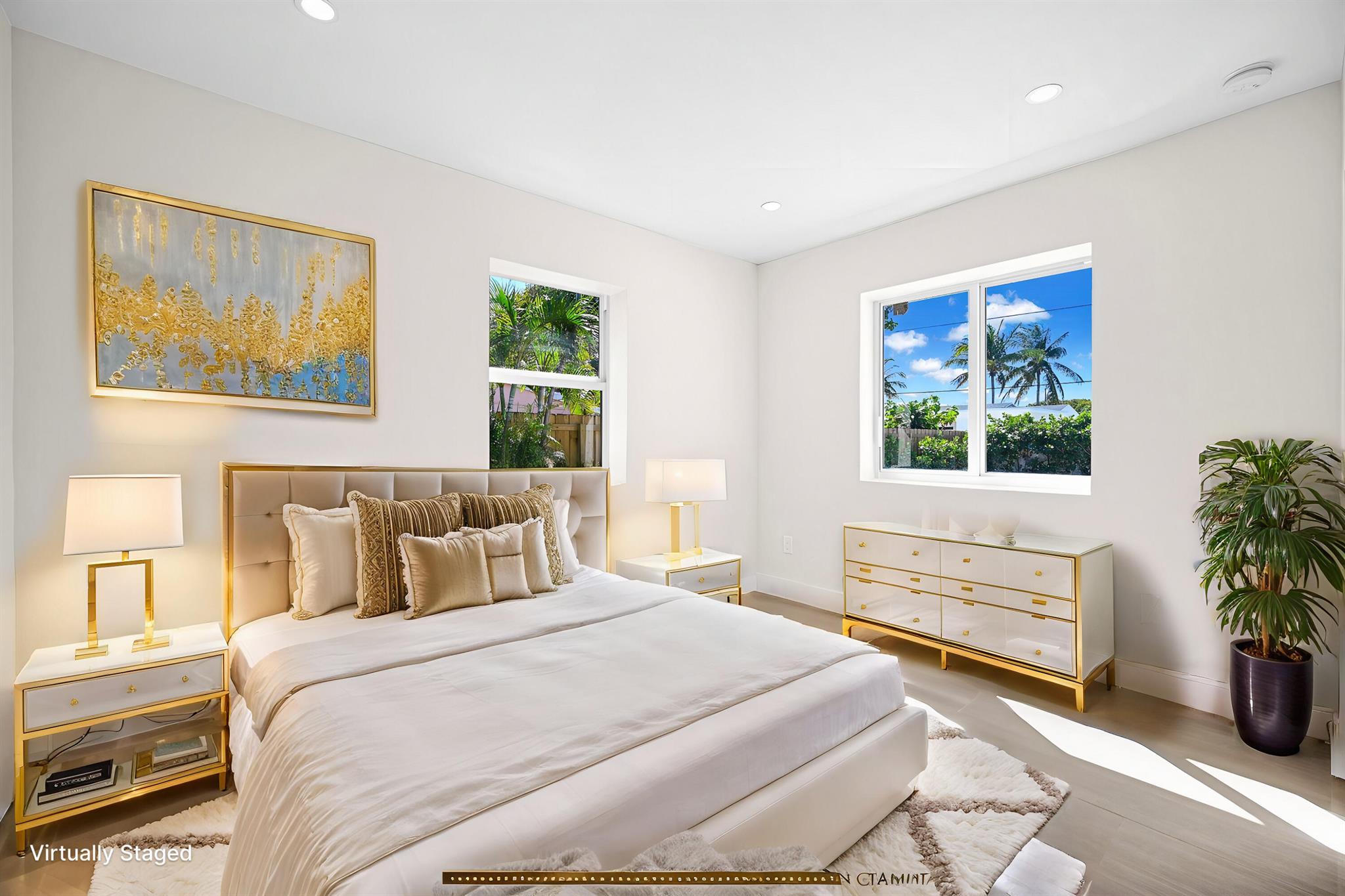 Nestled in the highly sought-after SoSo community of West Palm Beach.This beautifully remodeled home offers a perfect blend of modern luxury and timeless craftsmanship.Every inch of the property has been thoughtfully remodeled, starting with a brand-new sleek metal roof, impact-windows and doors, all-new copper plumbing, and electrical systems, elegant 12'' x 24'' porcelain tile throughout,solid wood doors, stunning kitchen with custom maple cabinetry, quartz counters & high end Bosch appliances. Bathrooms showcase porcelain tile to the ceilings, CastaDiva bidets, Kohler sinks & marble tops. Spray home insulation within walls and attic and an oasis backyard with beach style pool, travertine marble pool deck and lush private landscape. All this just 3 blocks from waterways & downtown areas