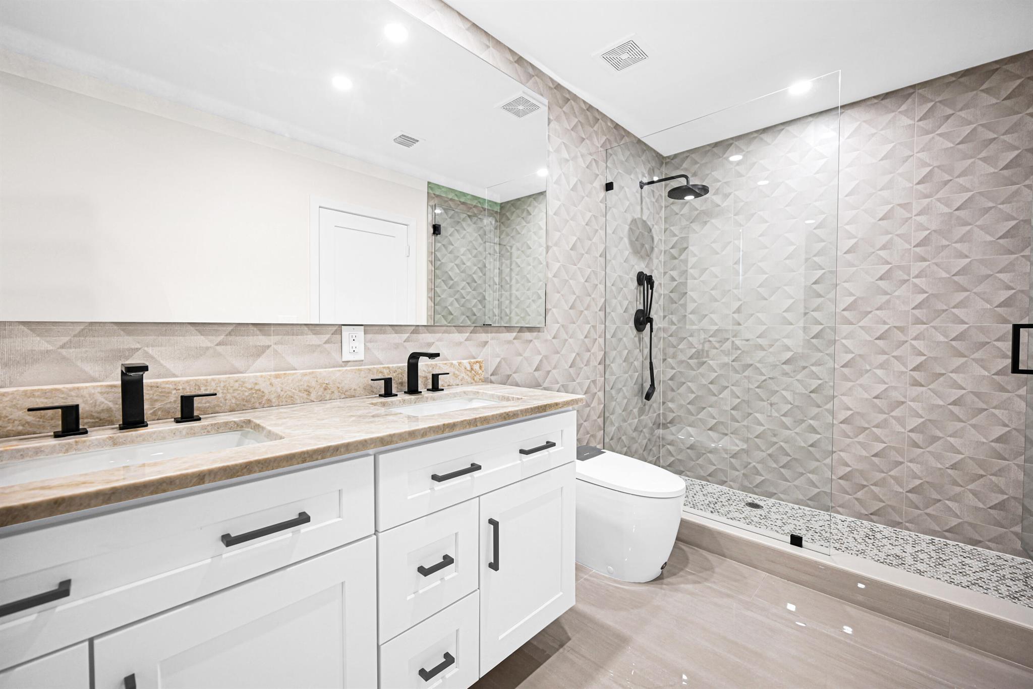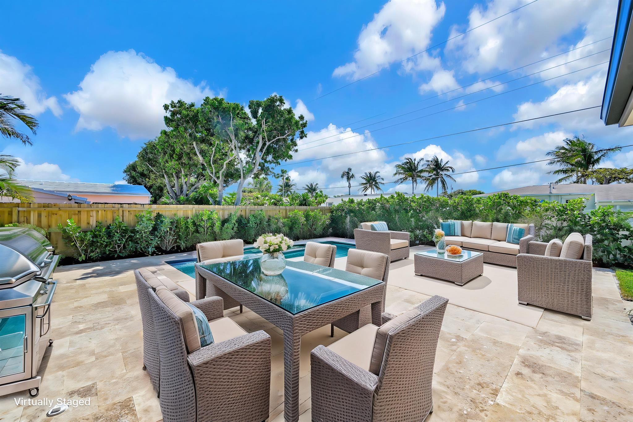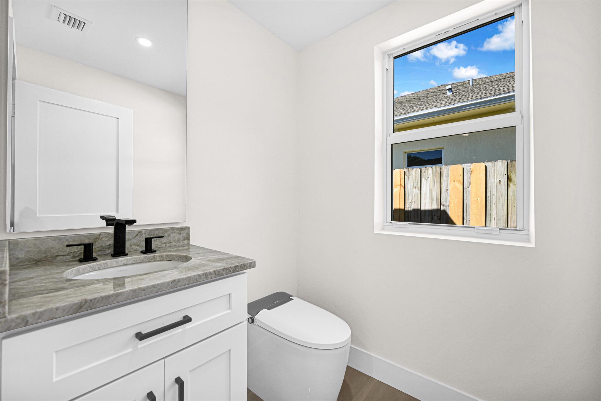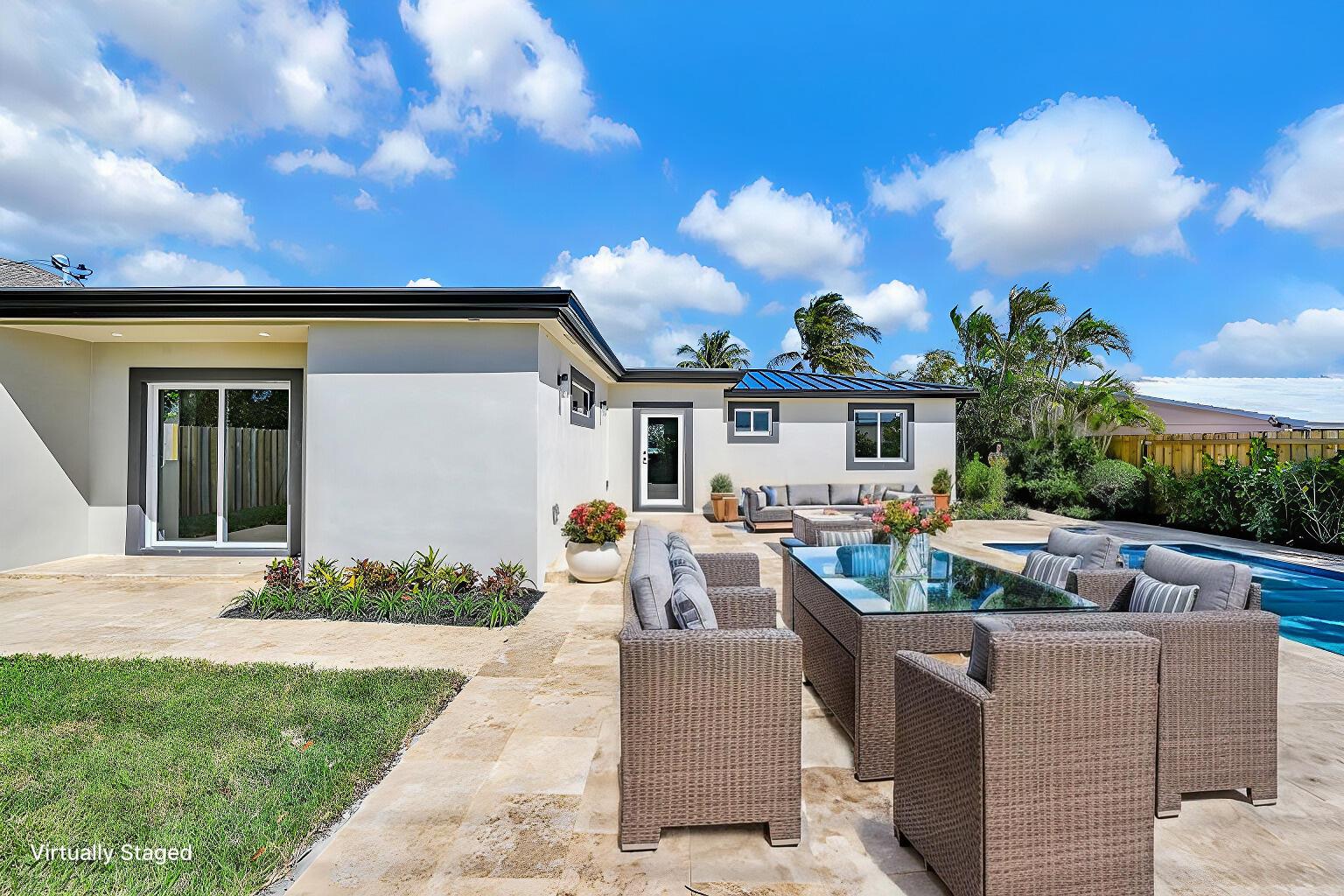 Nestled in the highly sought-after SoSo community of West Palm Beach.This beautifully remodeled home offers a perfect blend of modern luxury and timeless craftsmanship.Every inch of the property has been thoughtfully remodeled, starting with a brand-new sleek metal roof, impact-windows and doors, all-new copper plumbing, and electrical systems, elegant 12'' x 24'' porcelain tile throughout,solid wood doors, stunning kitchen with custom maple cabinetry, quartz counters & high end Bosch appliances. Bathrooms showcase porcelain tile to the ceilings, CastaDiva bidets, Kohler sinks & marble tops. Spray home insulation within walls and attic and an oasis backyard with beach style pool, travertine marble pool deck and lush private landscape. All this just 3 blocks from waterways & downtown areas