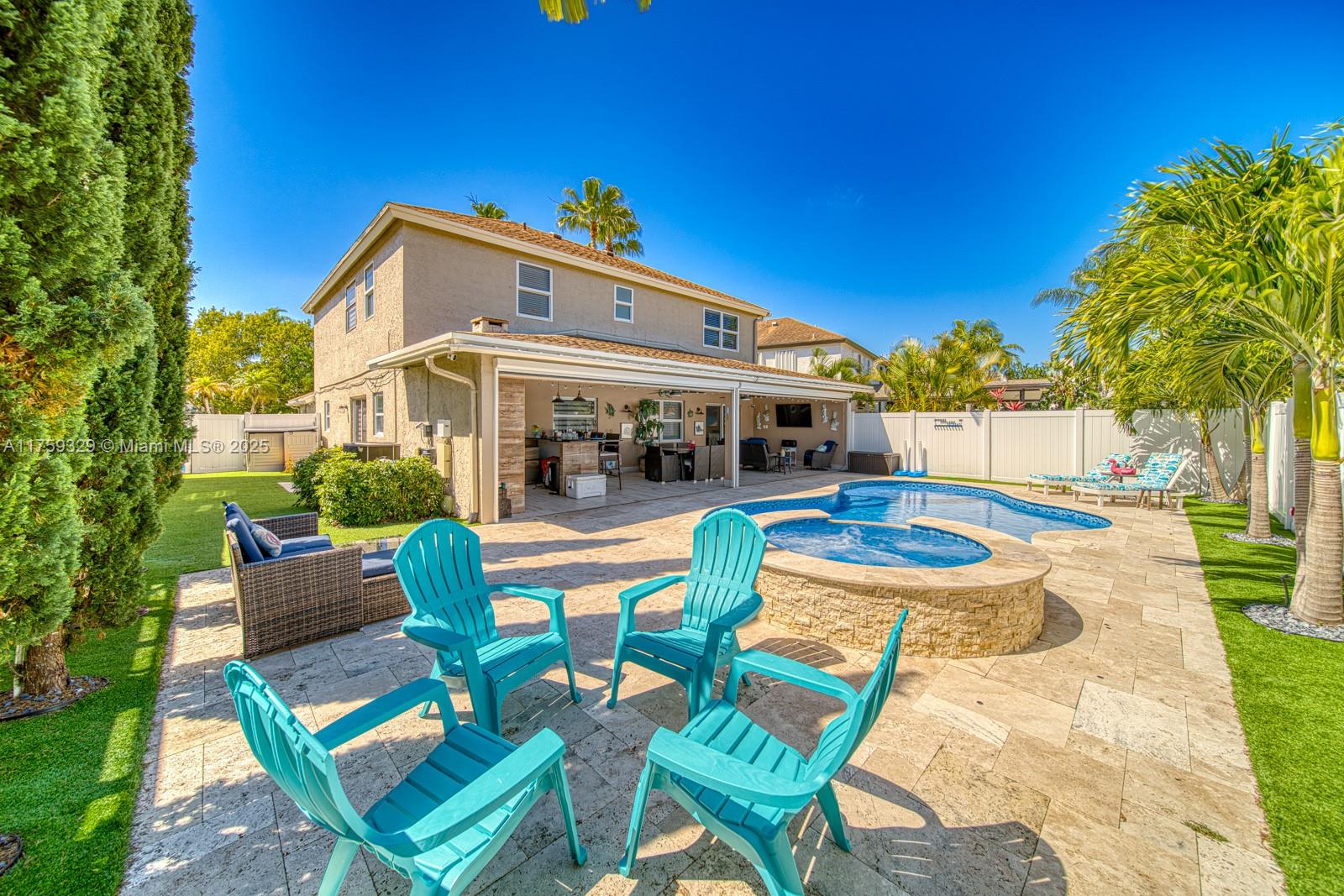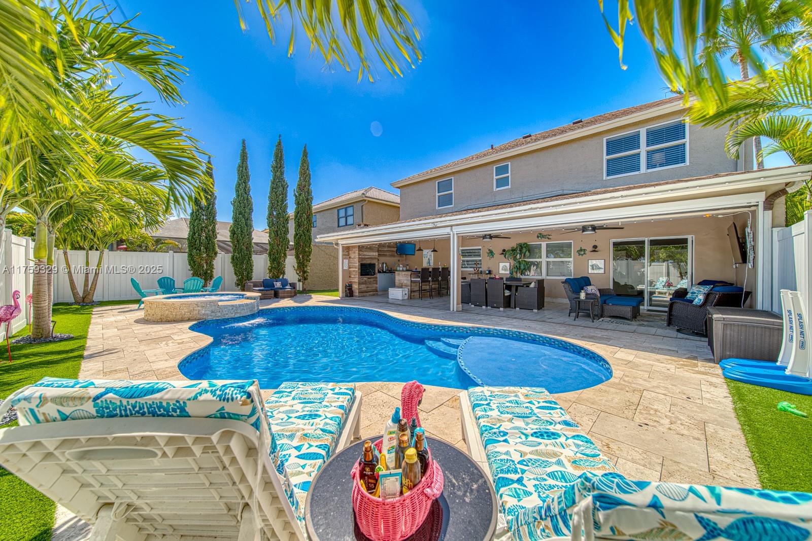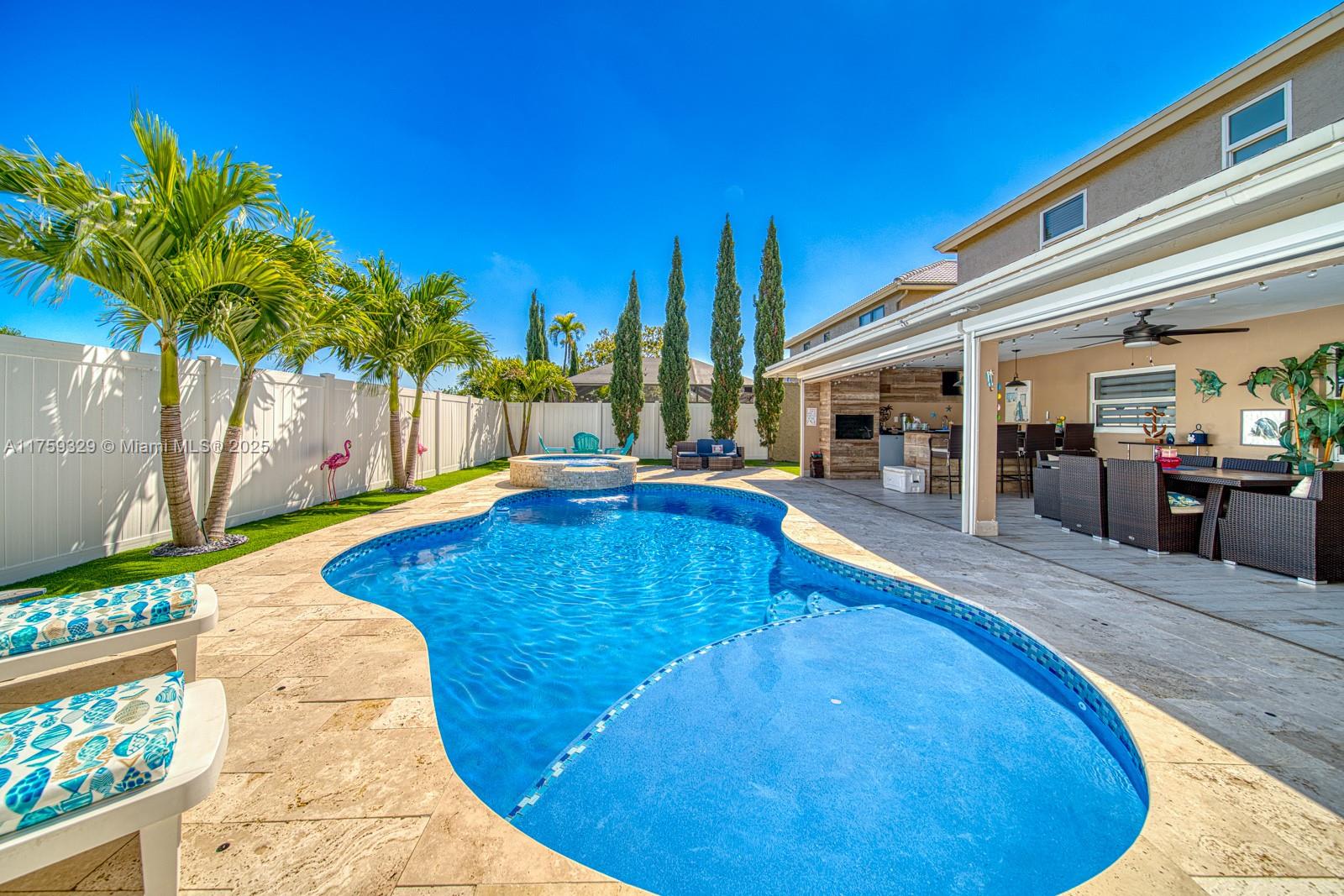 Contemporary Boca Raton Gem! This updated home features sleek porcelain floors, a spacious open living/dining area, and a spectacular open kitchen. The private backyard oasis boasts a new open patio with retractable screens, artificial grass, a custom coal barbecue, and a brand-new saltwater heated pool with spa—perfect for entertaining! Upstairs, enjoy a luxurious master suite with a walk-in closet, plus three spacious bedrooms and renovated bathrooms. Low HOA includes common area maintenance, a heated pool, and a tennis court. Prime location near top restaurants, shopping, Town Center Mall, and major highways.