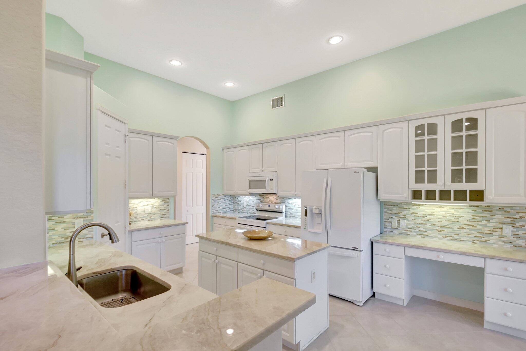 Beautiful Lakefront Home in Baywinds prestigious Estates Section. This spacious 3-bedroom, 3-bath former builder's model perfectly situated on a rare 1/3-acre lot features a light, neutral color palette and open-concept living spaces ideal for both everyday comfort and stylish entertaining. The modern chef's kitchen is a standout, complete with 42'' cabinetry, striking quartzite countertops, a large walk-in pantry, and a center island perfect for prep or casual gatherings. NEW impact glass sliders lead to the covered lanai, where serene lake views provide a peaceful backdrop.