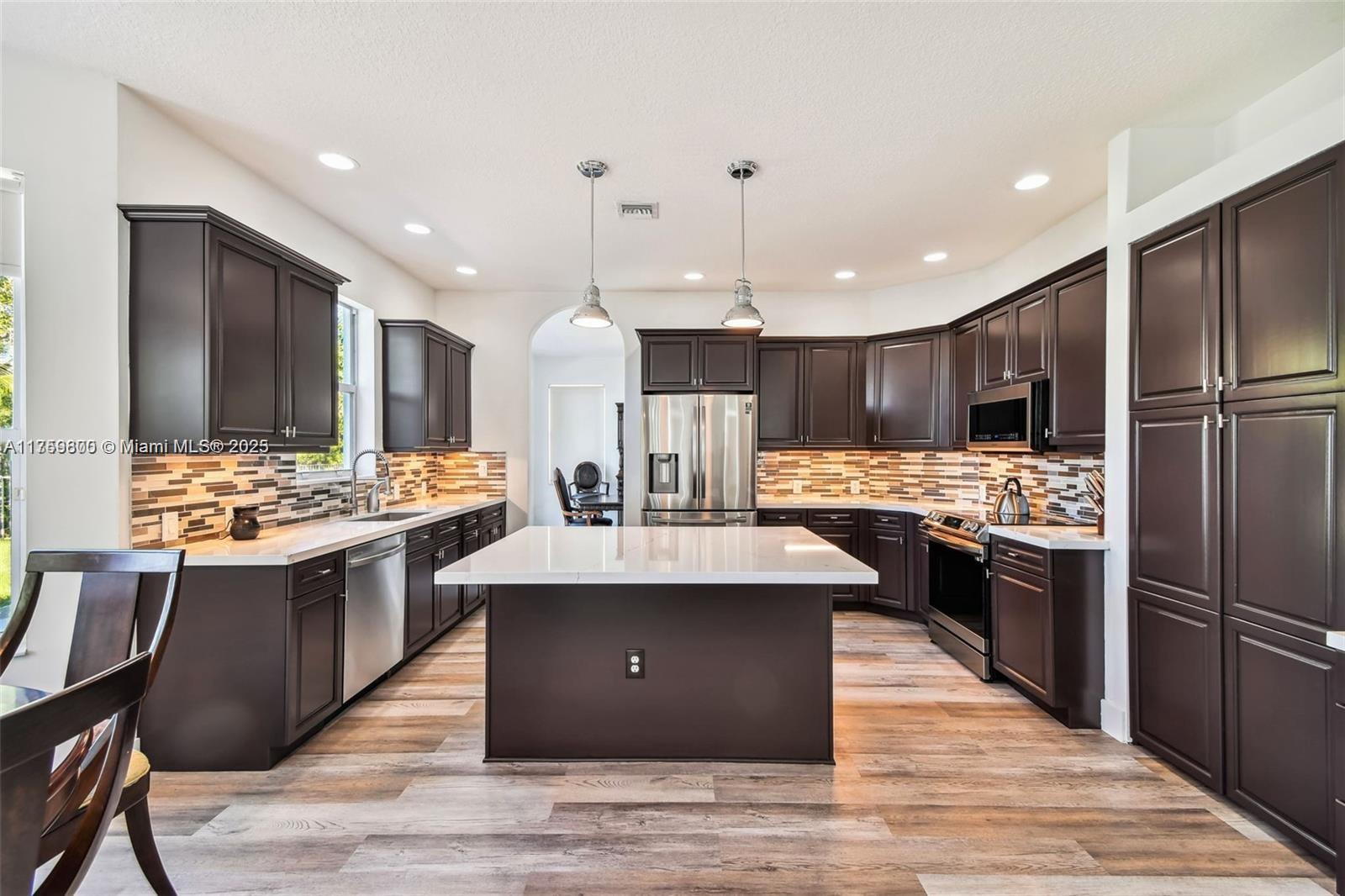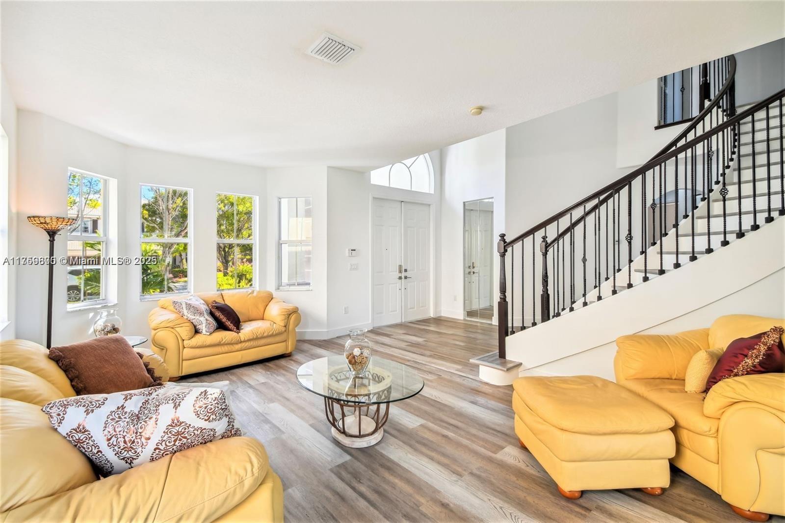 PRICE REDUCED!! TURNKEY LAKE FRONT HOME, NEW ROOF 2023, fully renovated in 2023, spacious single-family home with 5 bedrooms plus an office/nursery or 6th bedroom,( options can be seen in the floor plan pictures ), 4 full bathrooms, 3 car garage. 2 A/C units, new floors, new open concept kitchen with beautiful quartz countertops, wood cabinets, glass tile backsplash, Samsung stainless steel appliances. Fully renovated bathrooms. One bedroom and a full bath on the first floor. New exterior and interior paint. Perfect home for large families, a very large lakefront fenced backyard perfect for a pool and entertainment. All "A" rated excellent schools are within walking distance. The great clubhouse on the lake has an amazing pool, gym, tennis, pickleball, and basketball courts.