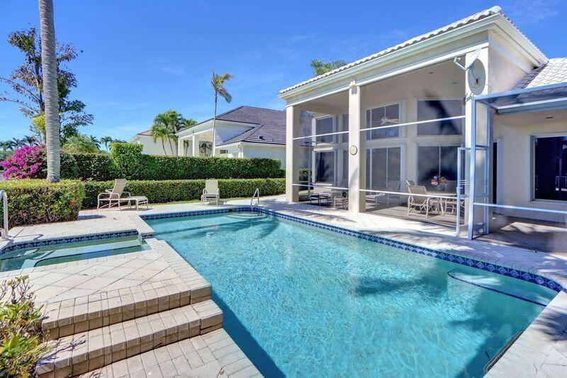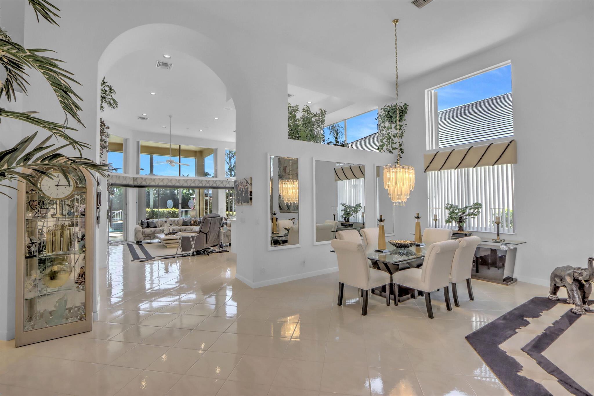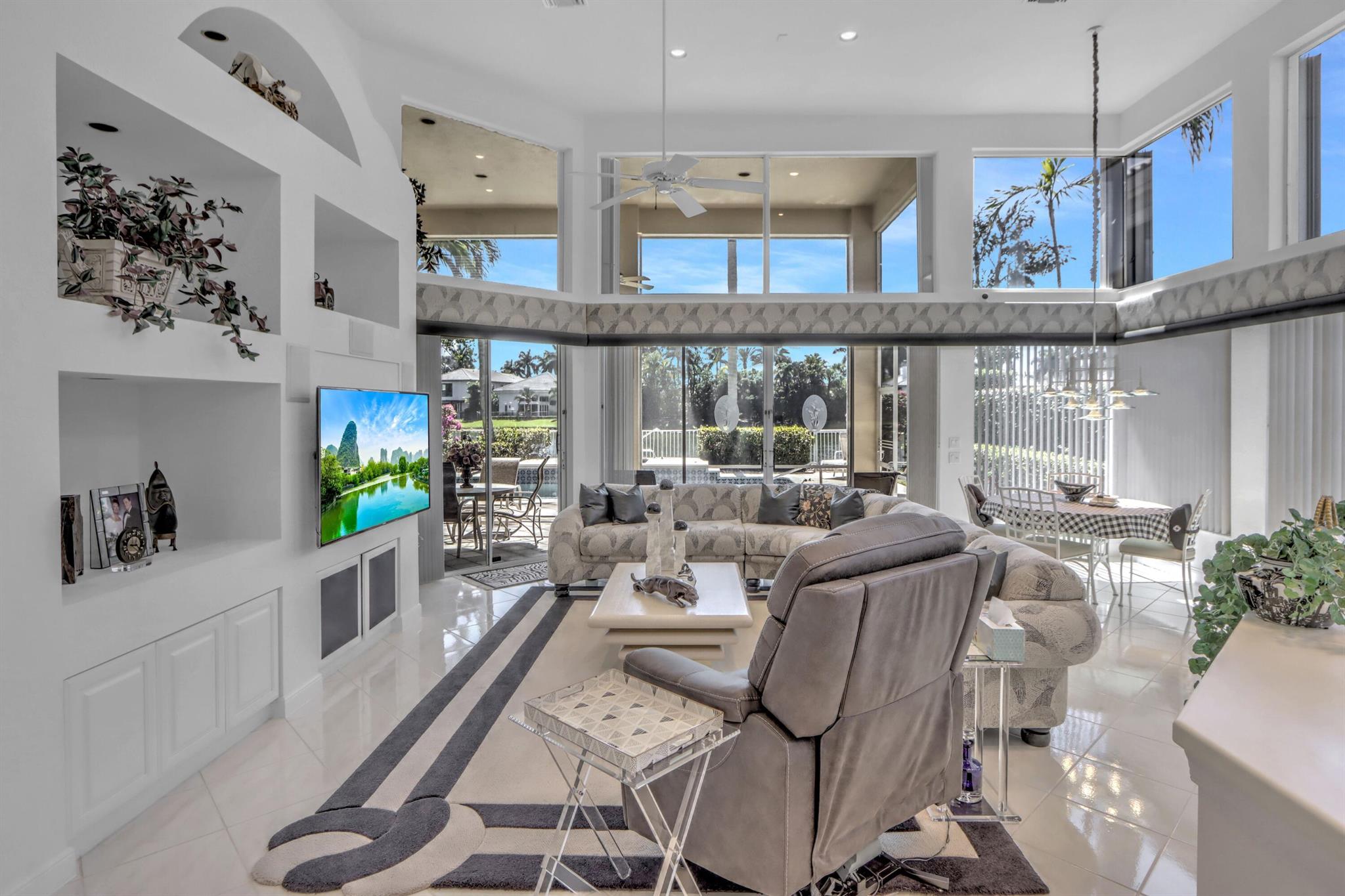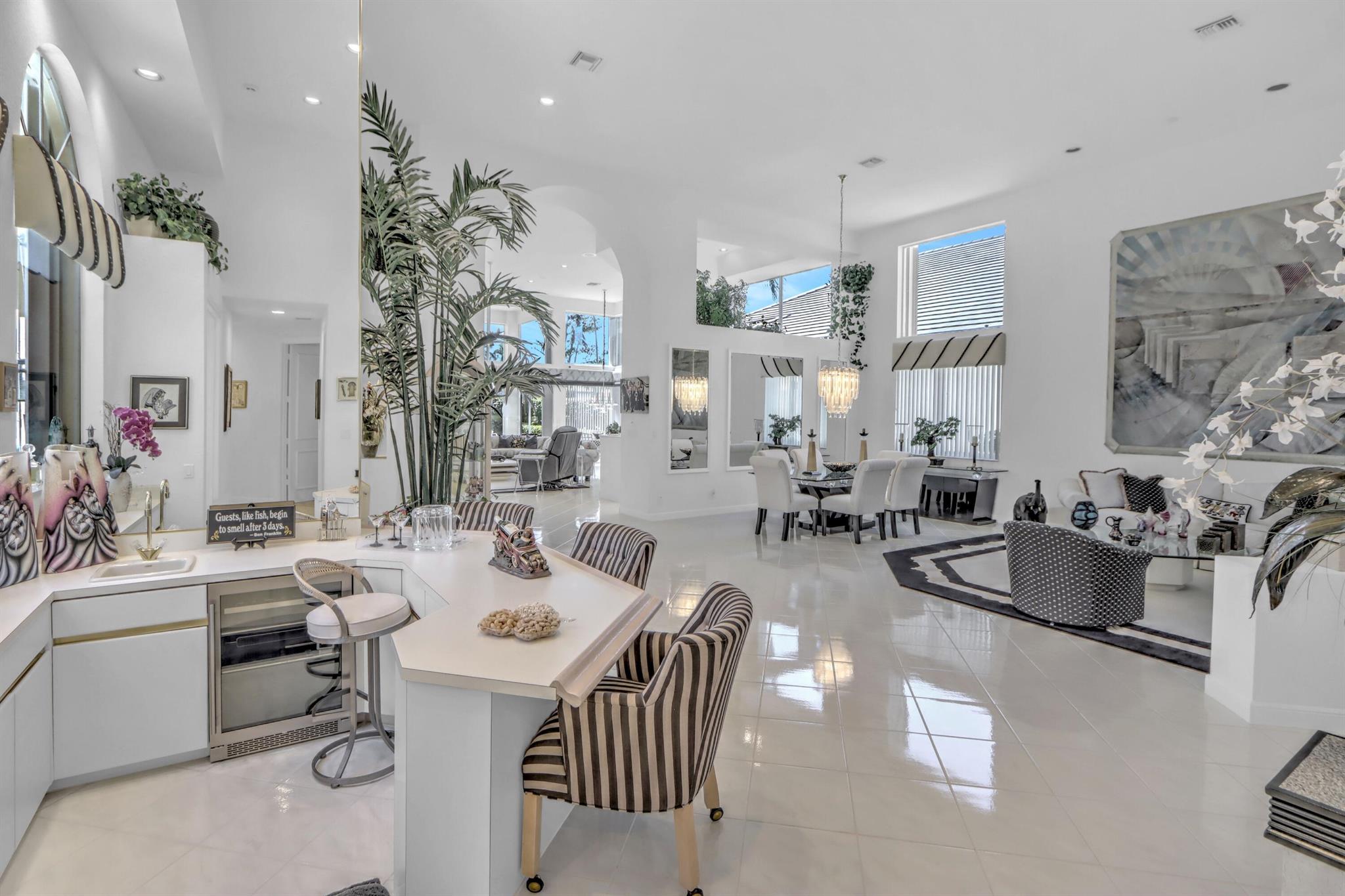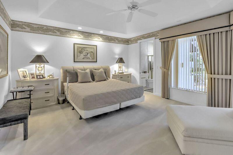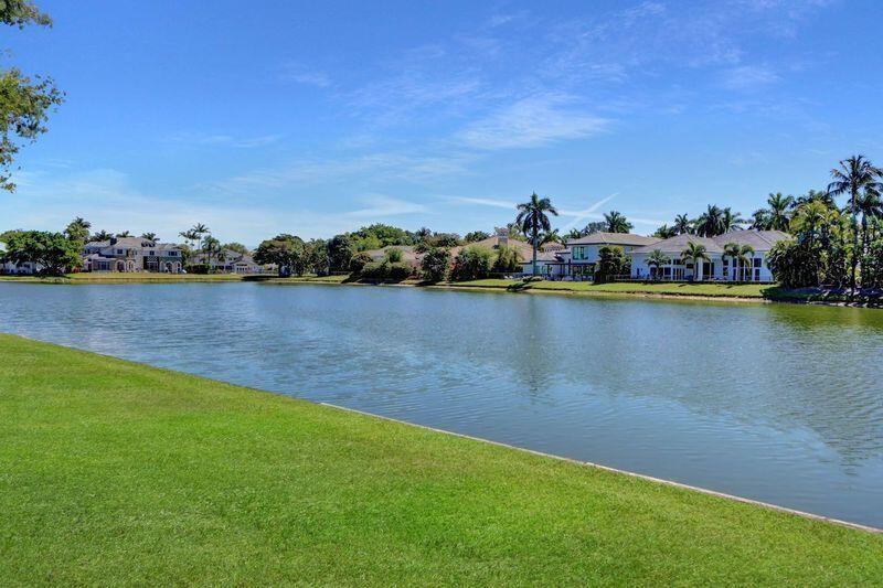 Tranquil lake views and sunlight fill this one-story home of 3 bedrooms plus an office - open & bright featuring volume ceilings with LED high-hat lighting; white neutral tile floors & beige carpeting; and a spacious open kitchen with white 42'' high-gloss cabinetry. The Primary Suite offers his & hers marble bathroom with elevated toilets; the Library has a built-in desk and shelves; the Living Room has a built-in wet bar with refrigerator and the Garage has epoxy flooring. Other features include sold core molded doors; central vacuum & water filtration systems; interior surveillance cameras. The backyard offers a screened patio & an open area with a pool & spa overlooking the lake. Offered furnished or unfurnished at the same price. Roof replaced in 2017.