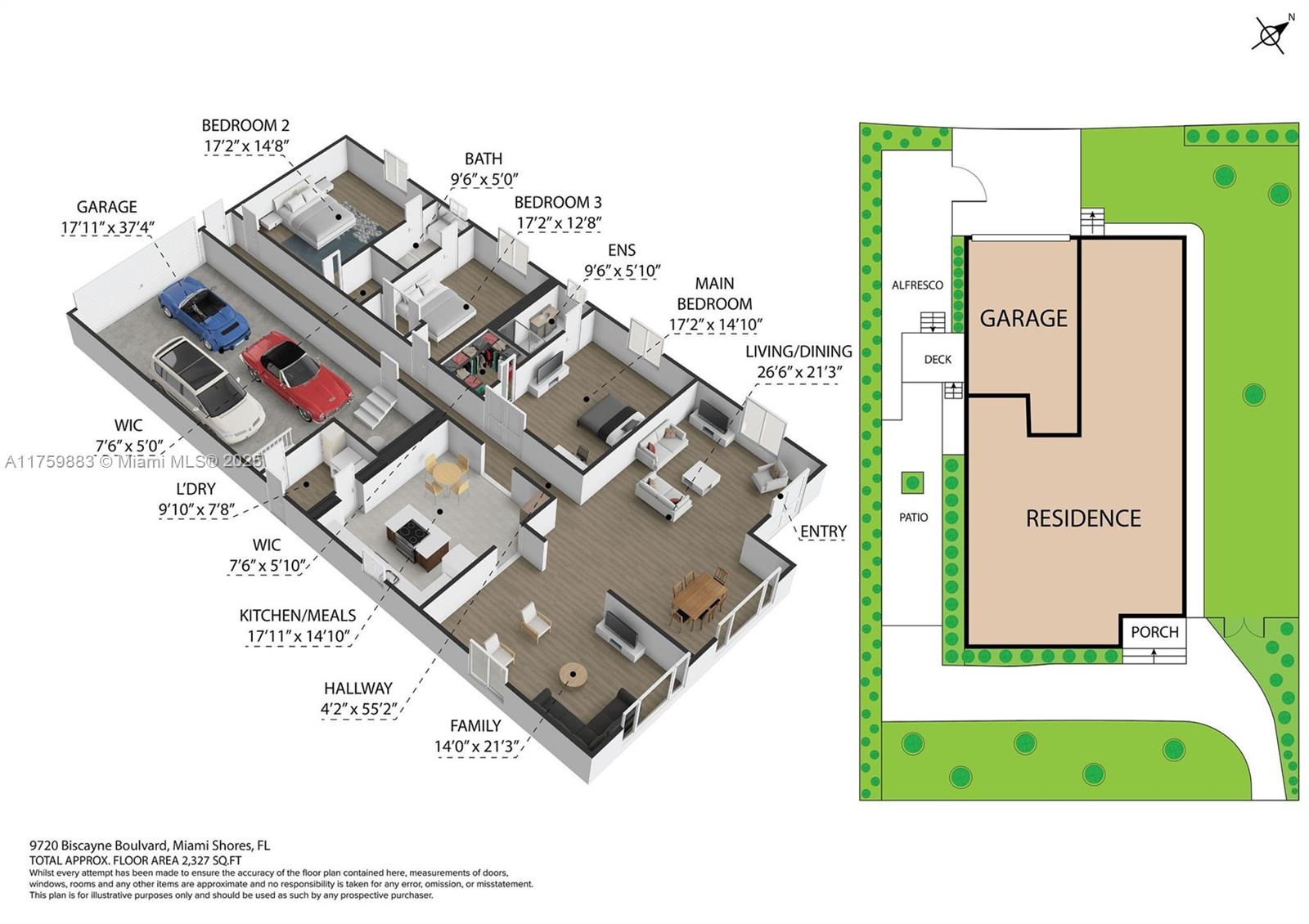 Welcoming you to 9720 Biscayne Blvd, a spacious 3 bed/2 bath home in the heart of Miami Shores. The home is laid out in a flexible floor plan to suit the next homeowner's lifestyle. The property has gone through tasteful renovations from installation of bamboo flooring, fully updated kitchen, laundry room with modern touches, PVC plumbing throughout, new AC system and duct, lighting, impact windows and a newer roof. Sitting on an oversized lot, accessing the home has never been easier with the circular driveway off Biscayne Blvd. Alternatively a more discreet arrival, your back alley way that guides you directly to your garage, with Tesla charging station. Featuring a charming patio with lush landscaping, it's perfectly designed for hosting intimate gatherings. Schedule your showing today