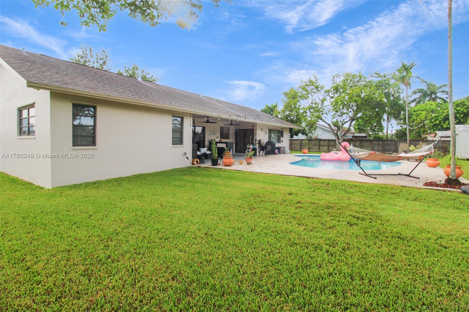 get up to 10K in SELLER CONCESSIONS( just add to purchase price). STUNNING remodeled kitchen w/Viscount White waterfall edge granite counters. Just off the kitchen is a HUGE EXTRA ROOM measuring 22'4" x 14'10"- that can be transformed to a 4th bedroom, extended kitchen area, or a 2nd living area! Then you step outside to your own private retreat with a gorgeous covered porch where you can relax by the sparkling pool YEAR ROUND, as well as a convenient cabana bath -all inside your own private fenced yard with gates that open on both sides. Roof is only 9 years old & comes w/TRANSFERRABLE warranty with 16 years LEFT. A shed w/electric adds storage/ workspace! 2 car garage w/washer/dryer. Bring your RV, truck, equipment, boat or whatever you want! Both gates have access to back yard.