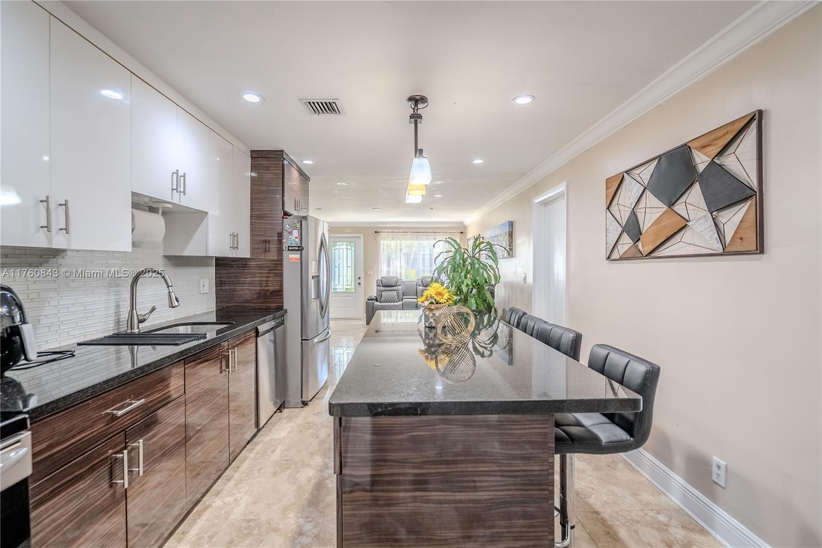 Impeccably maintained 3-bed, 3-bath home in a quiet Hollywood neighborhood. Features a lush green backyard with an avocado tree and a second one in the front, plus a covered patio and well-kept pavers, perfect for outdoor living. The huge driveway fits 3-4 cars. Inside, enjoy a modern kitchen and baths, newer appliances (2022/2023), and a 2022 roof. No flood zone. Windows have impact glass or shutters for added security. Includes a spacious laundry room. Conveniently located near highways, schools, and Hard Rock Casino. Move-in ready!