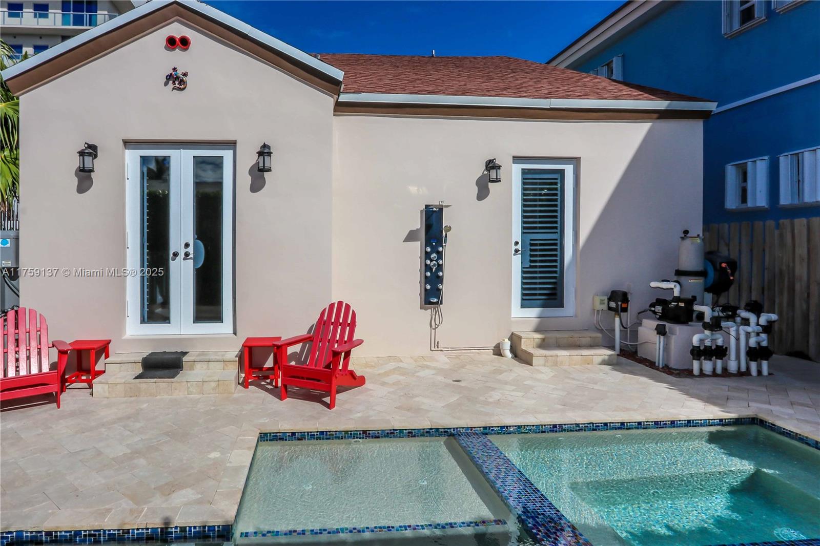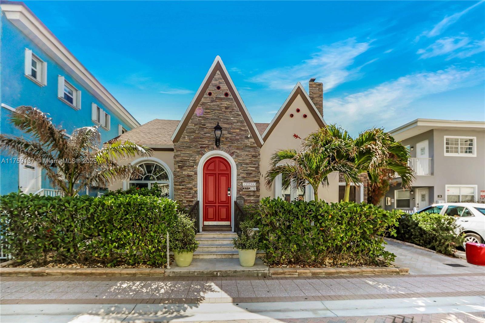 Indulge in beachfront living in the heart of Hollywood Beach, steps from the sand, vibrant Boardwalk, restaurants, and entertainment. This one-of-a-kind, castle-inspired home offers elegance and charm at every turn. Newly remodeled kitchen remodeled with a large eat-in island, wine cooler, and quartz countertops. Inside you'll find 3 bedrooms, 2 baths, and a cozy patio sitting area, all adorned with marble floors and graceful arches. (Third bedroom is currently being used as a den). The second floor provides a private primary suite oasis. Featuring a private bath with dual sinks and a large balcony terrace to enjoy your morning coffee or unwind in the evening! Whether you're enjoying the serene coastal breeze or relaxing in the inviting interior, this home is a storybook escape by the sea.