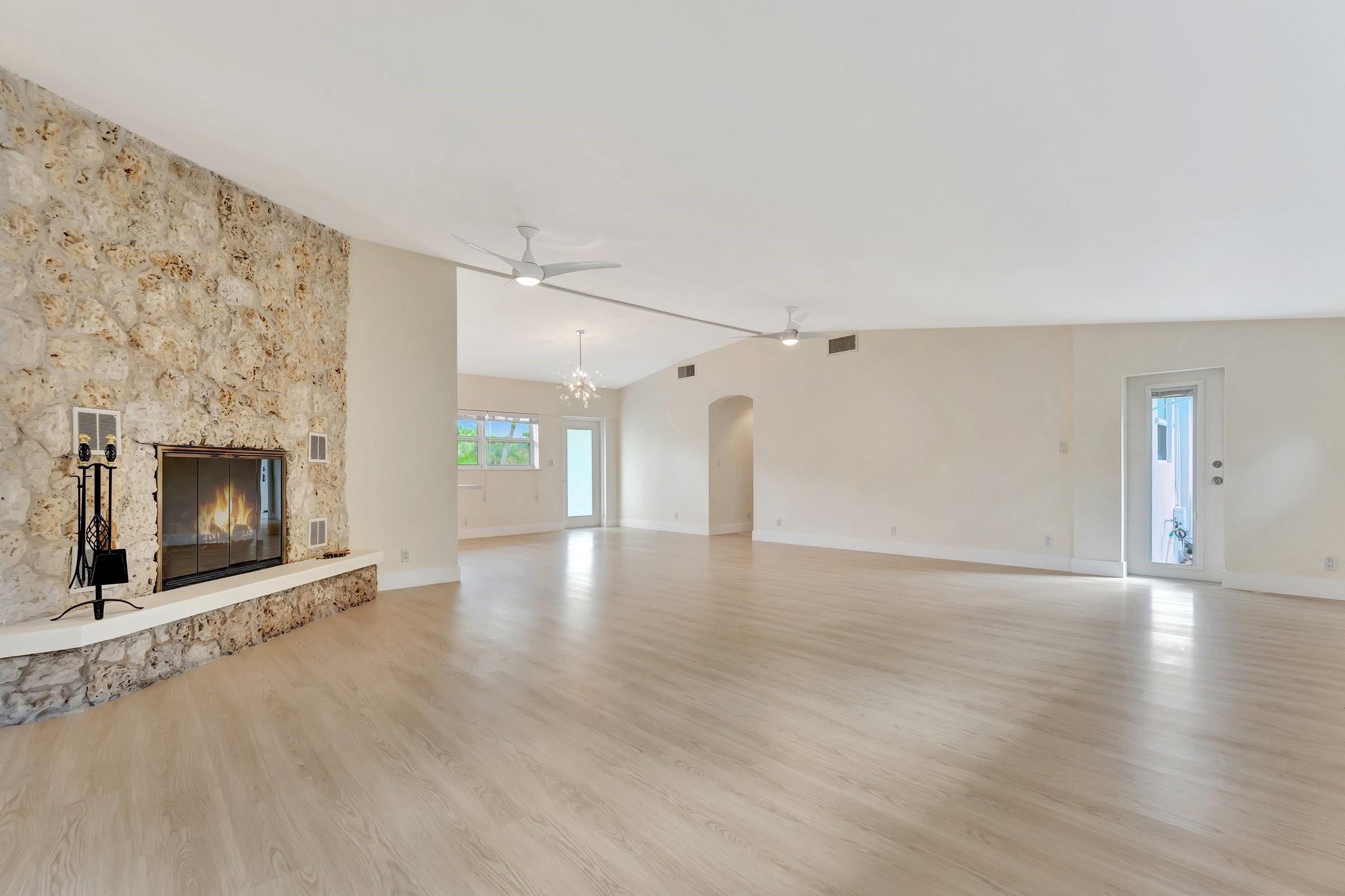 PRICED TO SELL. Amazing Location east of US1, Ideal for Investors! Located 1 mile from the beach, Alsdorf Boat Launch and Pompano Golf Course. This 3-bed, 2-bath home sits on a 10,000+ sq ft lot with no HOA, offering ample parking for your boat, jet skis, and golf cart. The open-concept living area features vaulted ceilings and a stunning coral fireplace. Enjoy a resort-style pool with a large patio, plus room for a tiki hut, outdoor kitchen, or playground. Recent updates include new roof (2022), AC (2014), water heater (2022), and electrical panel (2022). Impact windows/doors, solar pool equipment, and a 2-car garage. Possible 27' boat dock available across the street.