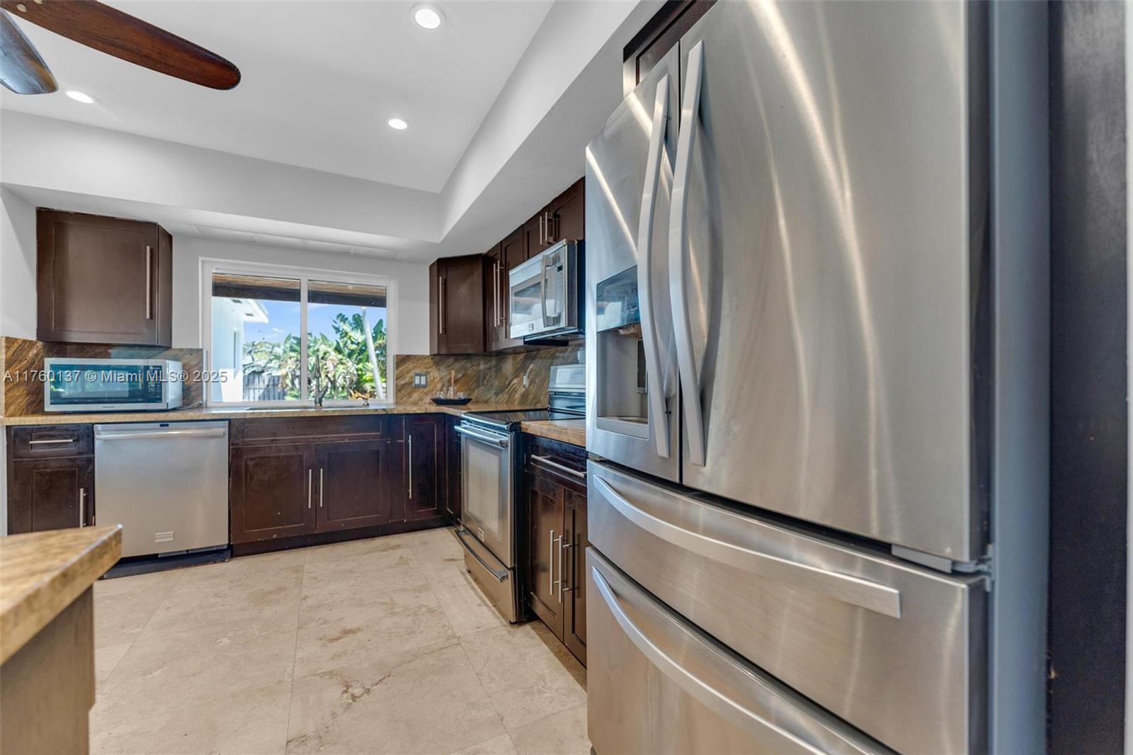 OPPORTUNITY KNOCKS! A true 4-bedroom, 2-bathroom (1 Cabana bath), 1 car garage pool home situated on OVER 10,000+ Sq Ft lot! Interior offers a DESIRED SPLIT BEDROOM DESIGN with marble tile flooring & recessed lighting throughout. Open floor concept with well-appointed kitchen & spacious living. WORRY FREE items include NEW ROOF, NEW A/C, NEW PVC PLUMBING THROUGHOUT, & COMPLETE IMPACT WINDOWS / DOORS. Exterior features a paver circular driveway in the front with a one car garage in the back & plenty of space for an RV or boat. Backyard oasis made ideal for entertaining with a large, covered patio, oversized pool, coral tile & mature tropical landscaping. Centrally located with easy access to all places of interest.
