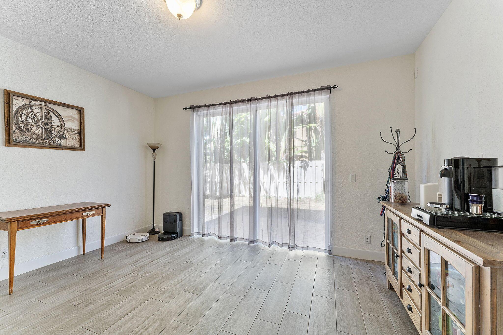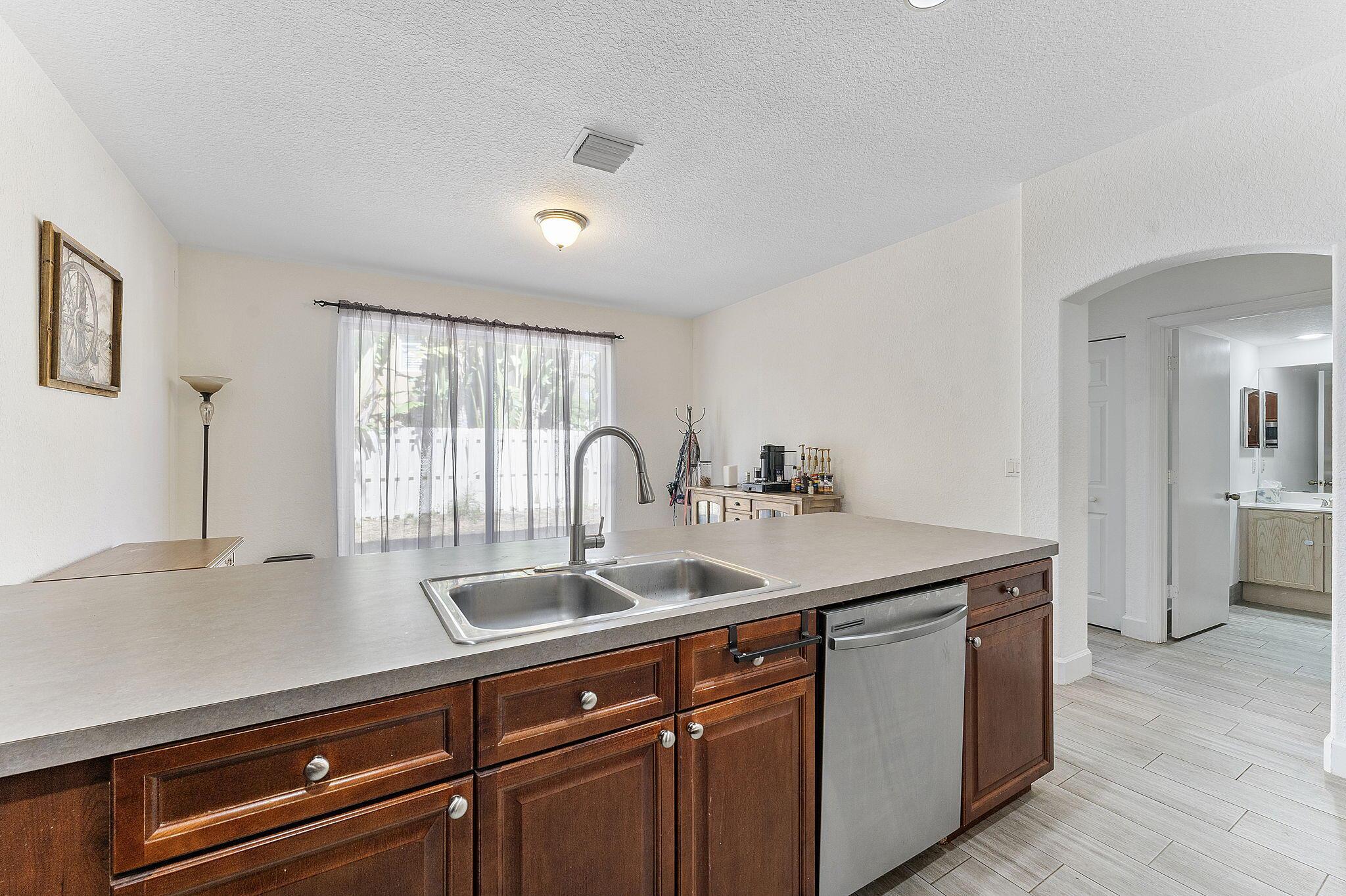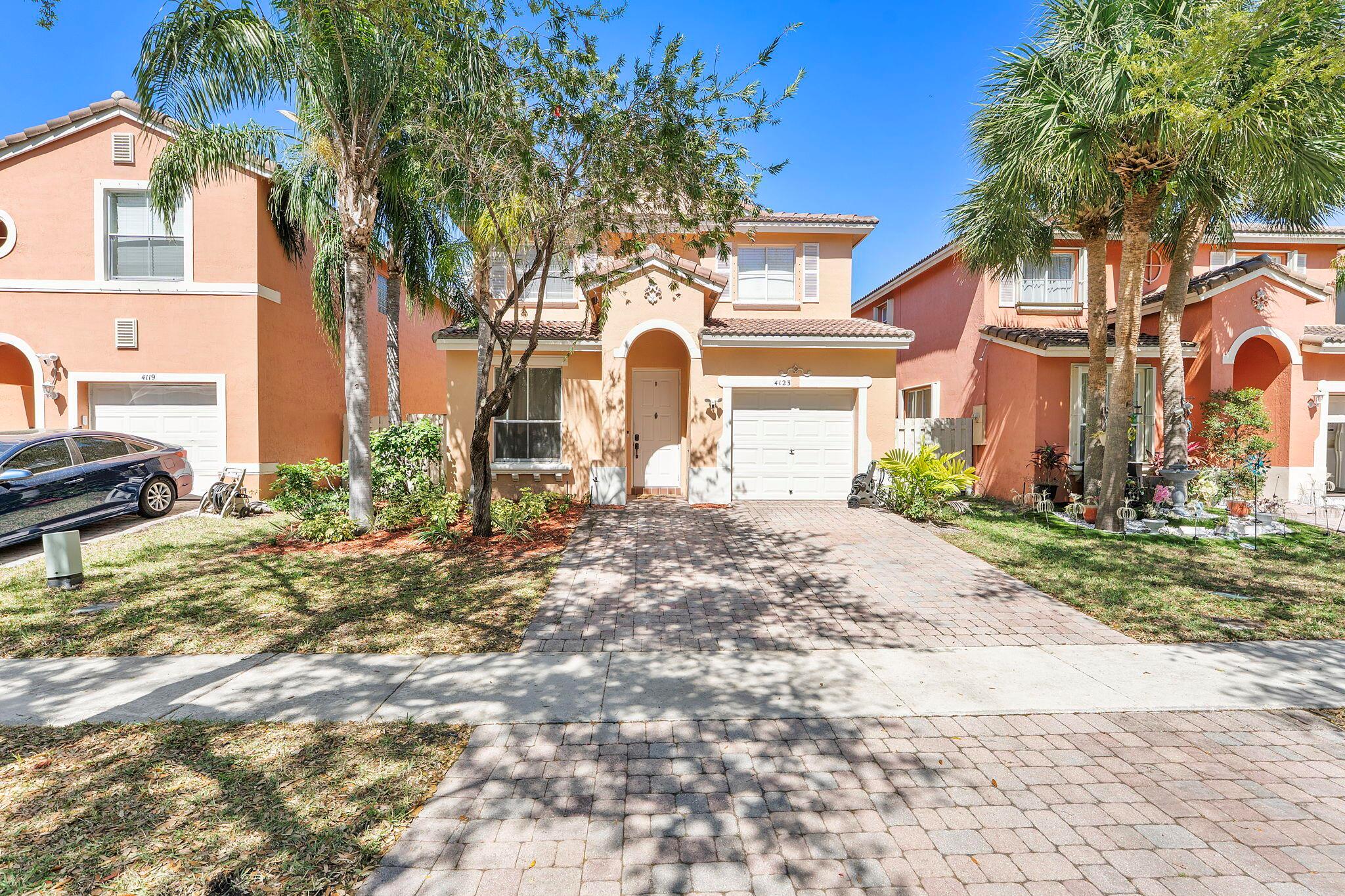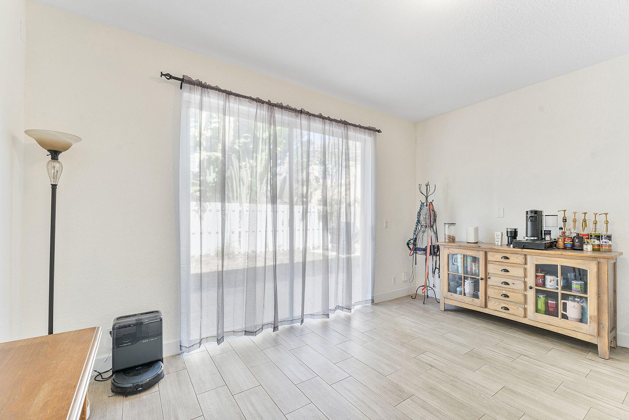 This stunning 4-bedroom, 3-bathroom home in a sought-after gated community is an absolute gem! From the moment you arrive, the charming curb appeal and lush landscaping invite you in. Step inside to find a bright and airy living space with elegant tile flooring, large windows, and modern lighting. The open-concept kitchen is a dream, featuring rich wood cabinetry, stainless steel appliances, and a spacious island,perfect for entertaining! A cozy dining area opens to a private, fenced backyard with a paved patio, offering the ideal spot for relaxation or gatherings. The generously sized bedrooms include ample closet space, and the primary suite boasts an en-suite bath with dual vanities.