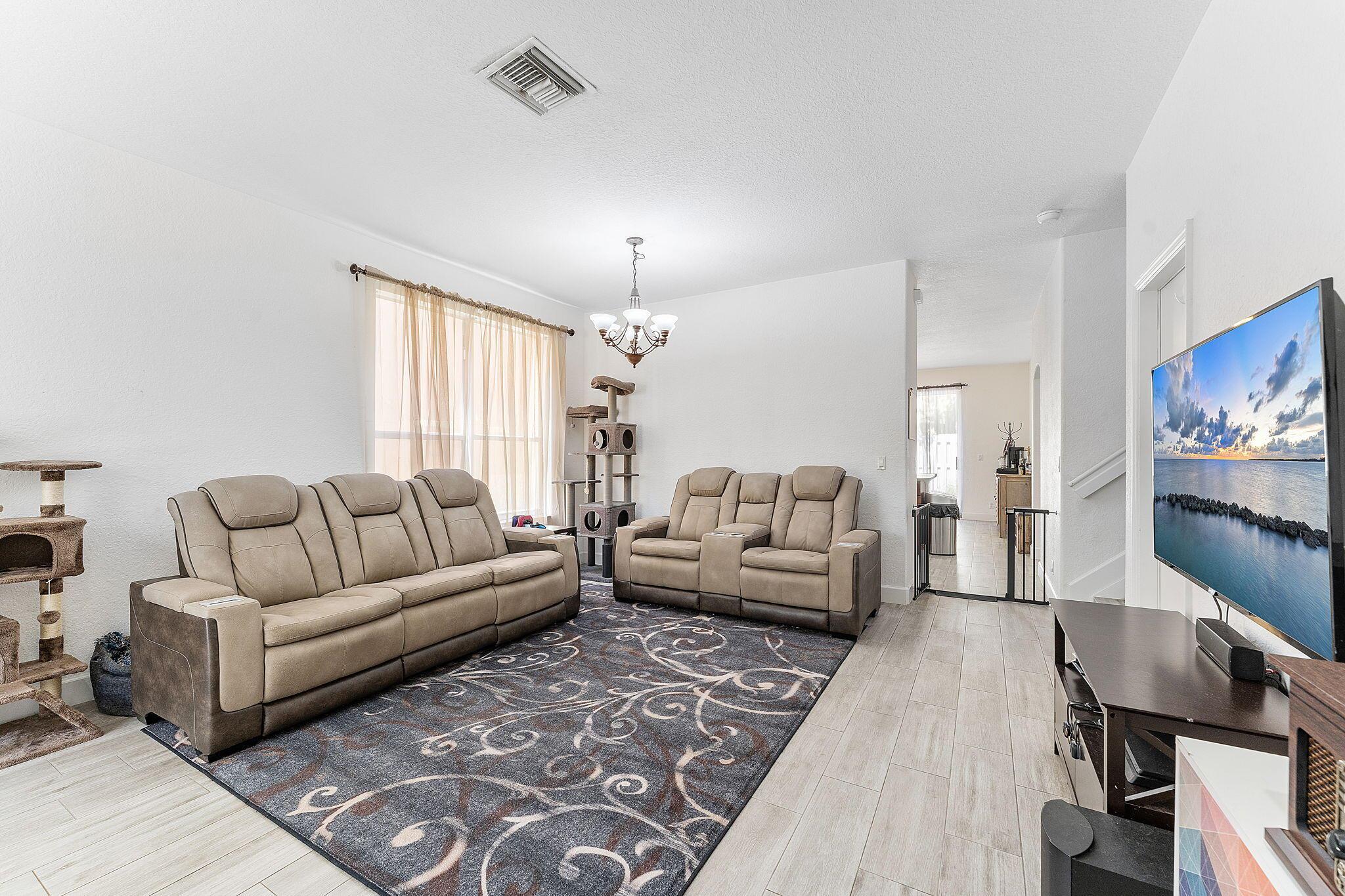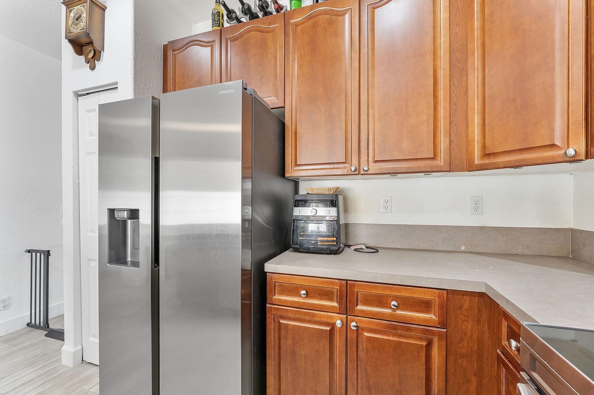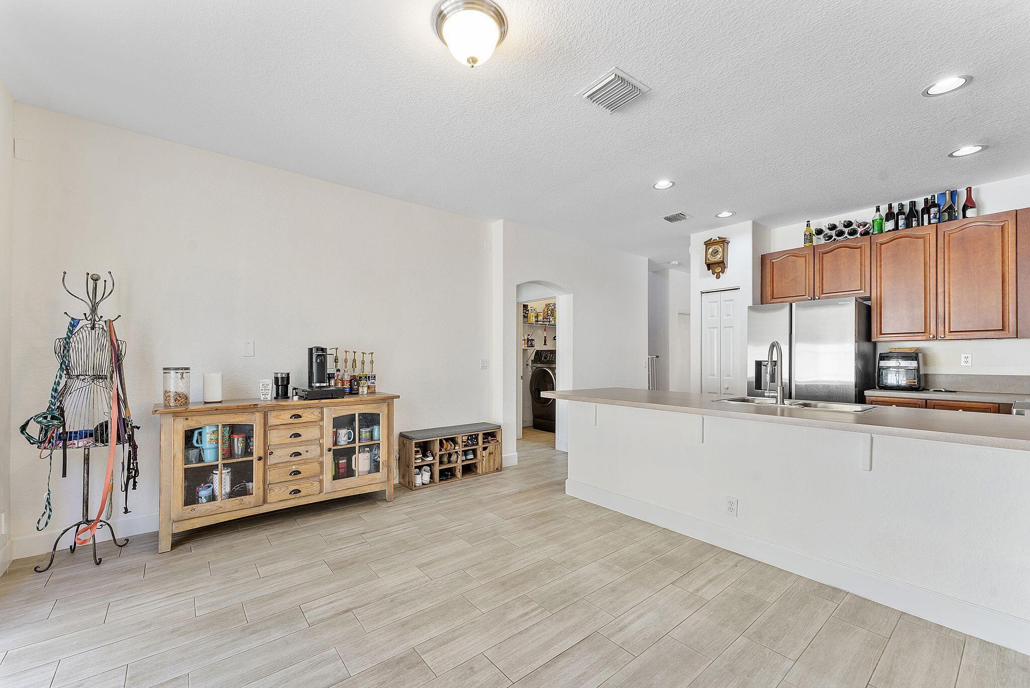 This stunning 4-bedroom, 3-bathroom home in a sought-after gated community is an absolute gem! From the moment you arrive, the charming curb appeal and lush landscaping invite you in. Step inside to find a bright and airy living space with elegant tile flooring, large windows, and modern lighting. The open-concept kitchen is a dream, featuring rich wood cabinetry, stainless steel appliances, and a spacious island,perfect for entertaining! A cozy dining area opens to a private, fenced backyard with a paved patio, offering the ideal spot for relaxation or gatherings. The generously sized bedrooms include ample closet space, and the primary suite boasts an en-suite bath with dual vanities.