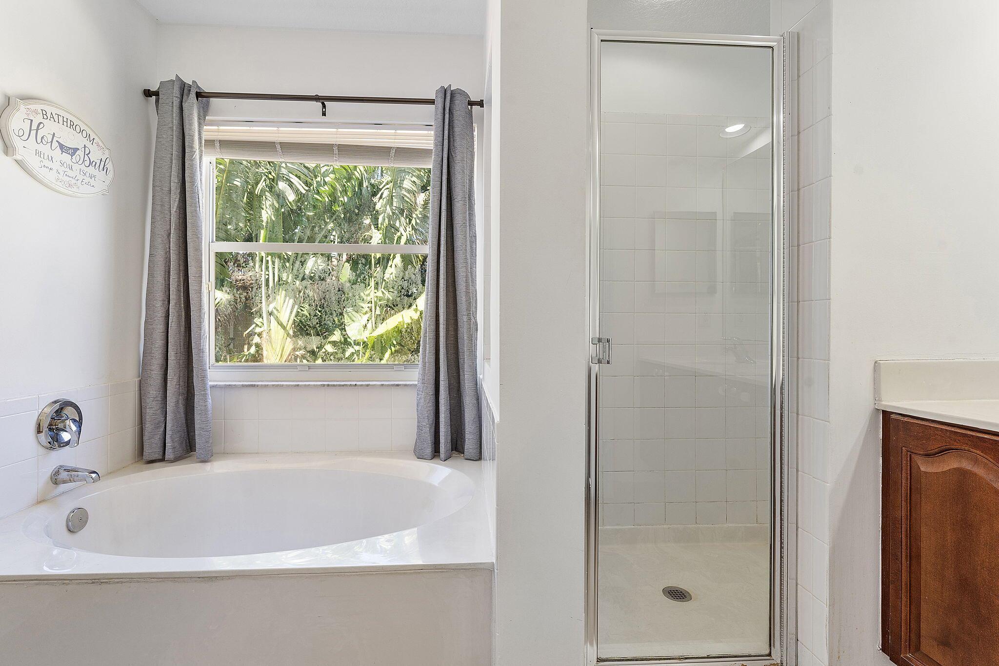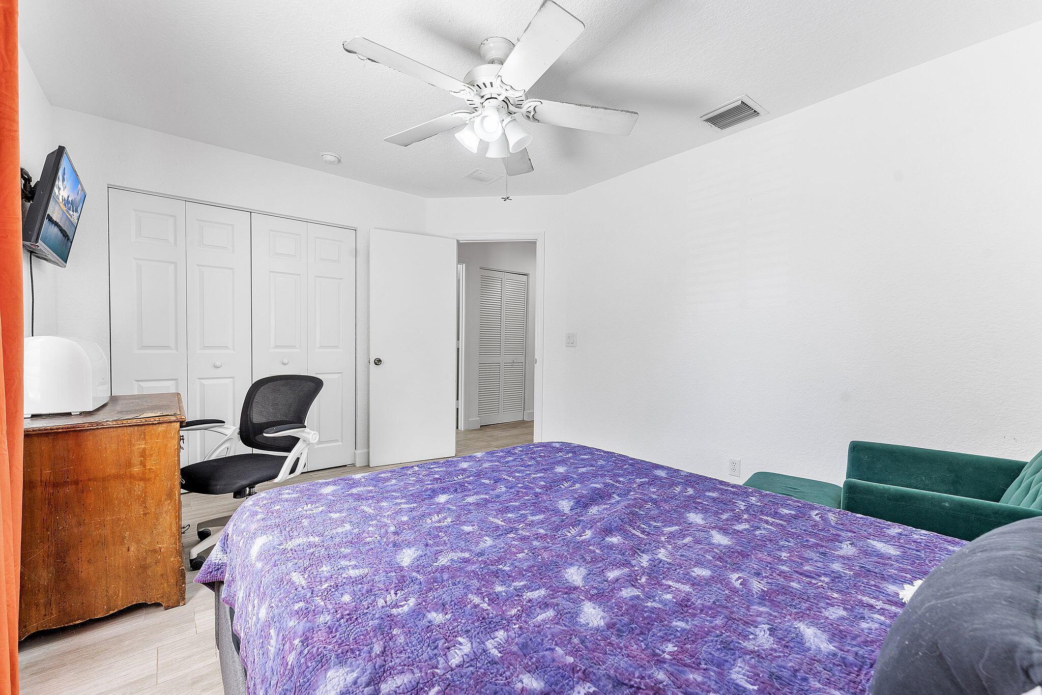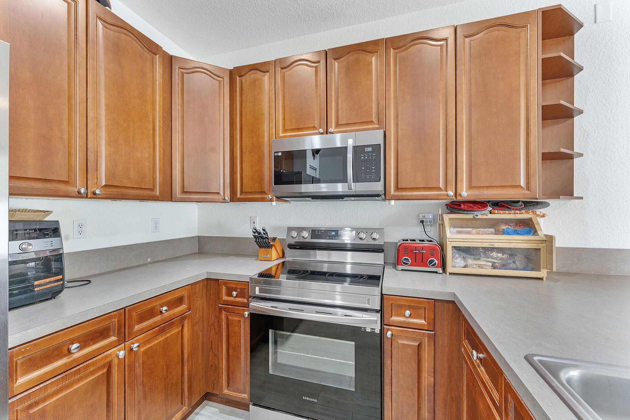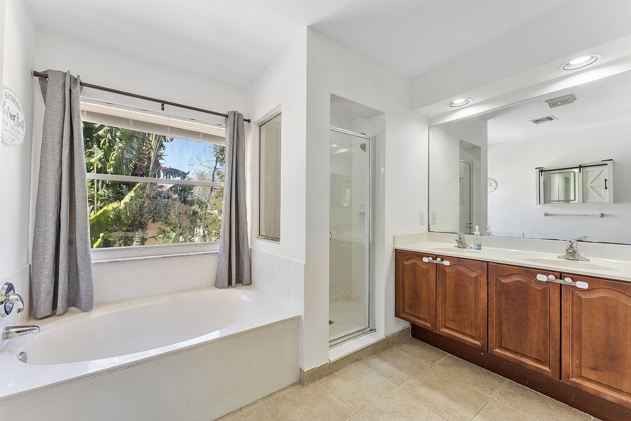 This stunning 4-bedroom, 3-bathroom home in a sought-after gated community is an absolute gem! From the moment you arrive, the charming curb appeal and lush landscaping invite you in. Step inside to find a bright and airy living space with elegant tile flooring, large windows, and modern lighting. The open-concept kitchen is a dream, featuring rich wood cabinetry, stainless steel appliances, and a spacious island,perfect for entertaining! A cozy dining area opens to a private, fenced backyard with a paved patio, offering the ideal spot for relaxation or gatherings. The generously sized bedrooms include ample closet space, and the primary suite boasts an en-suite bath with dual vanities.