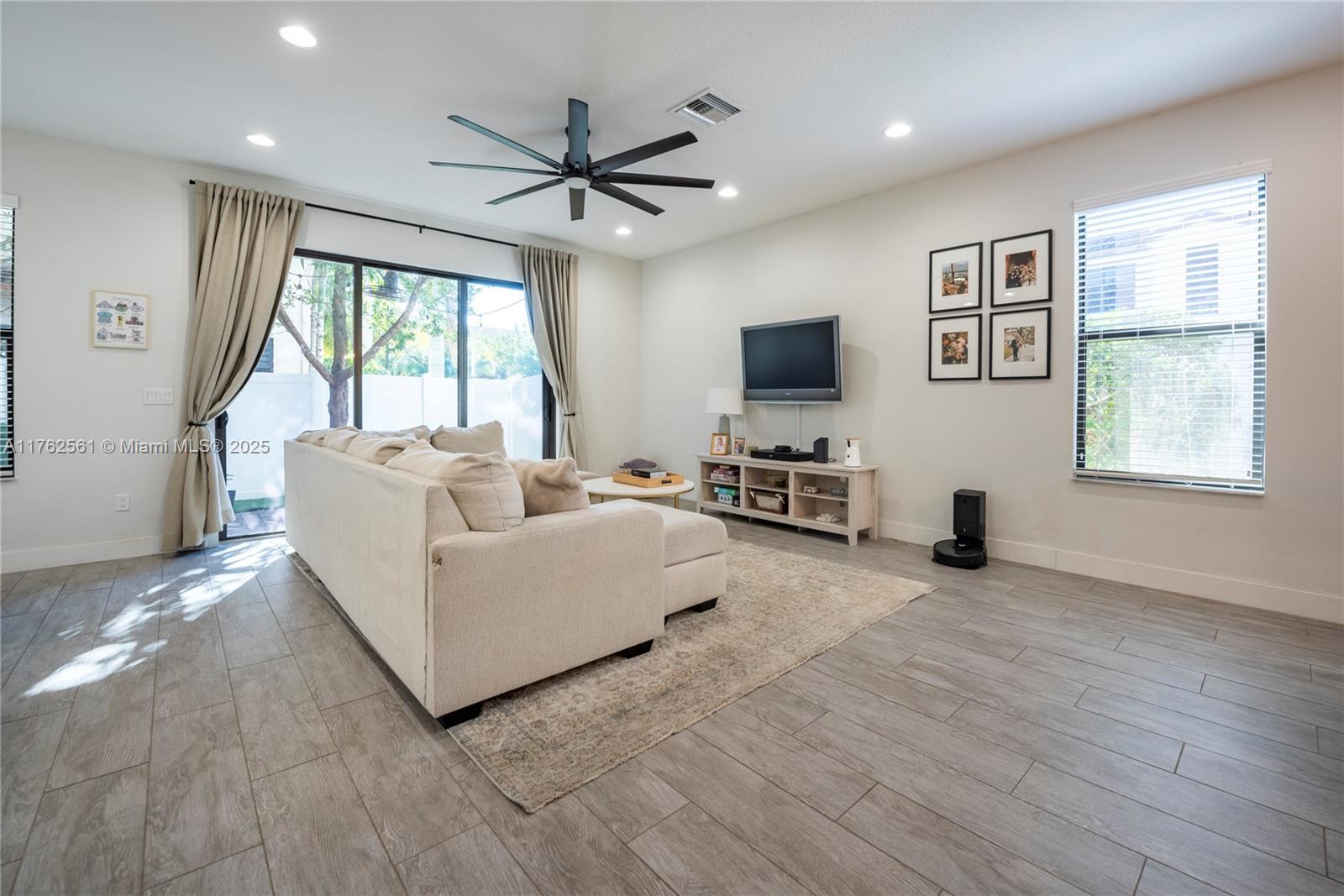 Come see this stunning corner unit townhome in Chapel Grove in Pembroke Pines. This home features 3 bedrooms, 2 1/2 baths with a 1 car garage. Big open floor plan that includes an eat in kitchen with quartz countertops, stainless steel appliances and plenty of cabinet space. The master bedroom includes his and hers walk in closet and dual sinks. washer, dryer in unit on second floor. The fenced back yard is perfect for entertaining. Amenities and clubhouse include pool, basketball court, fitness center and playground. Impact windows and doors throughout. Close to great schools, restaurants and shopping. Don't wait long:)