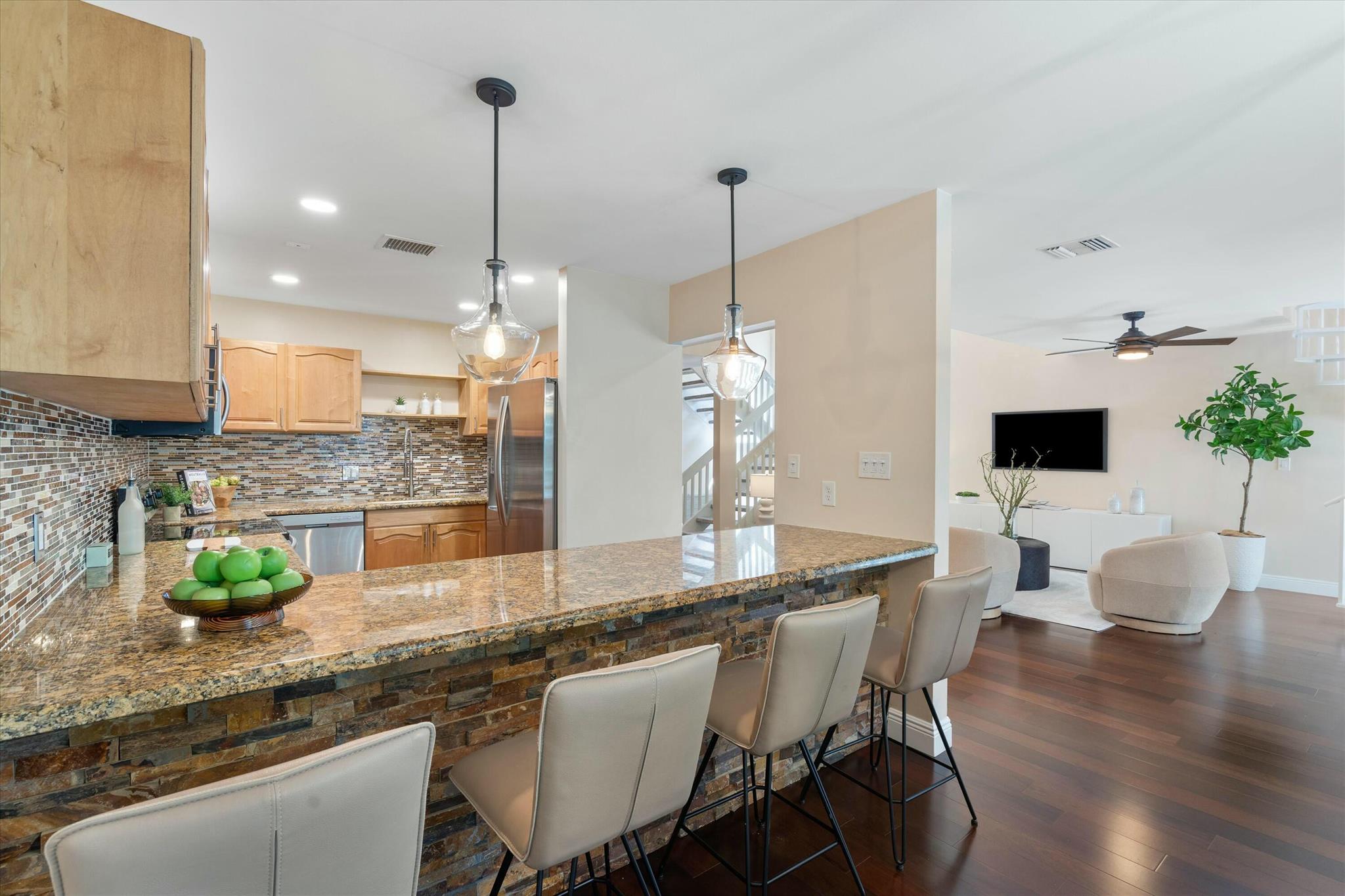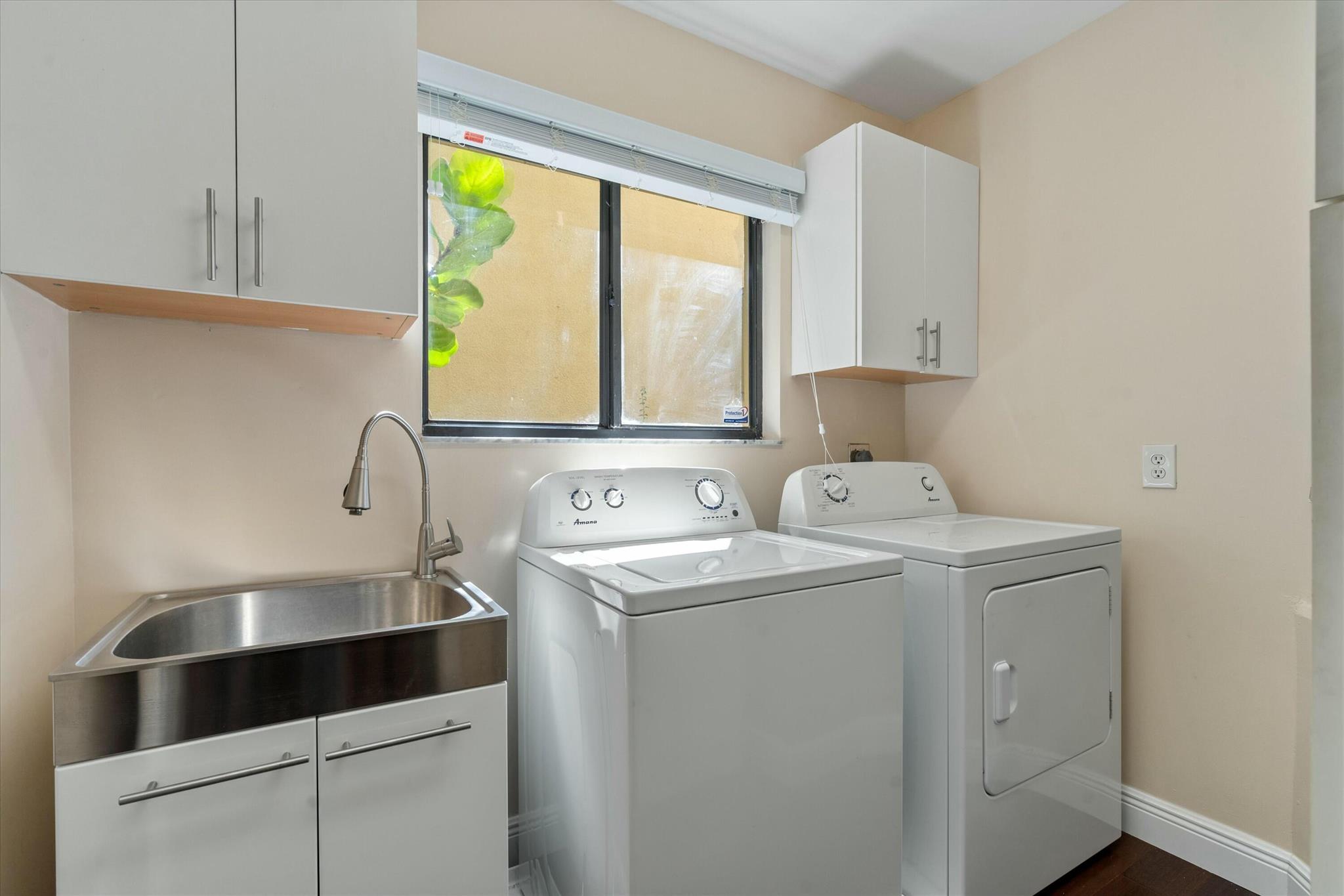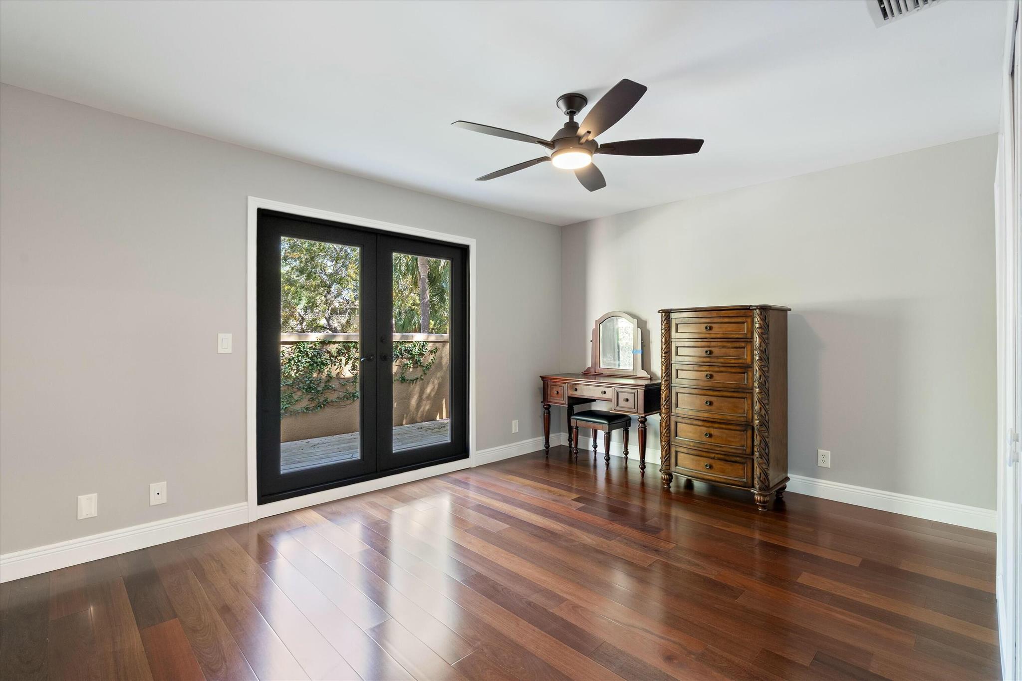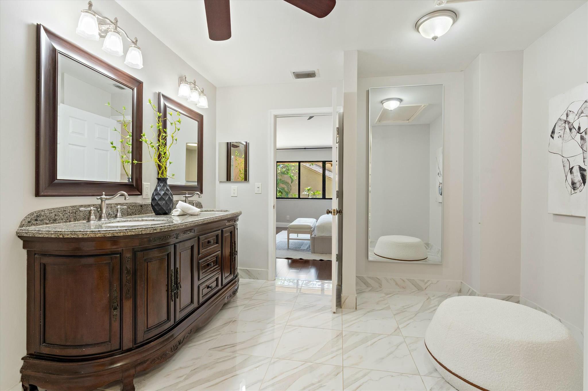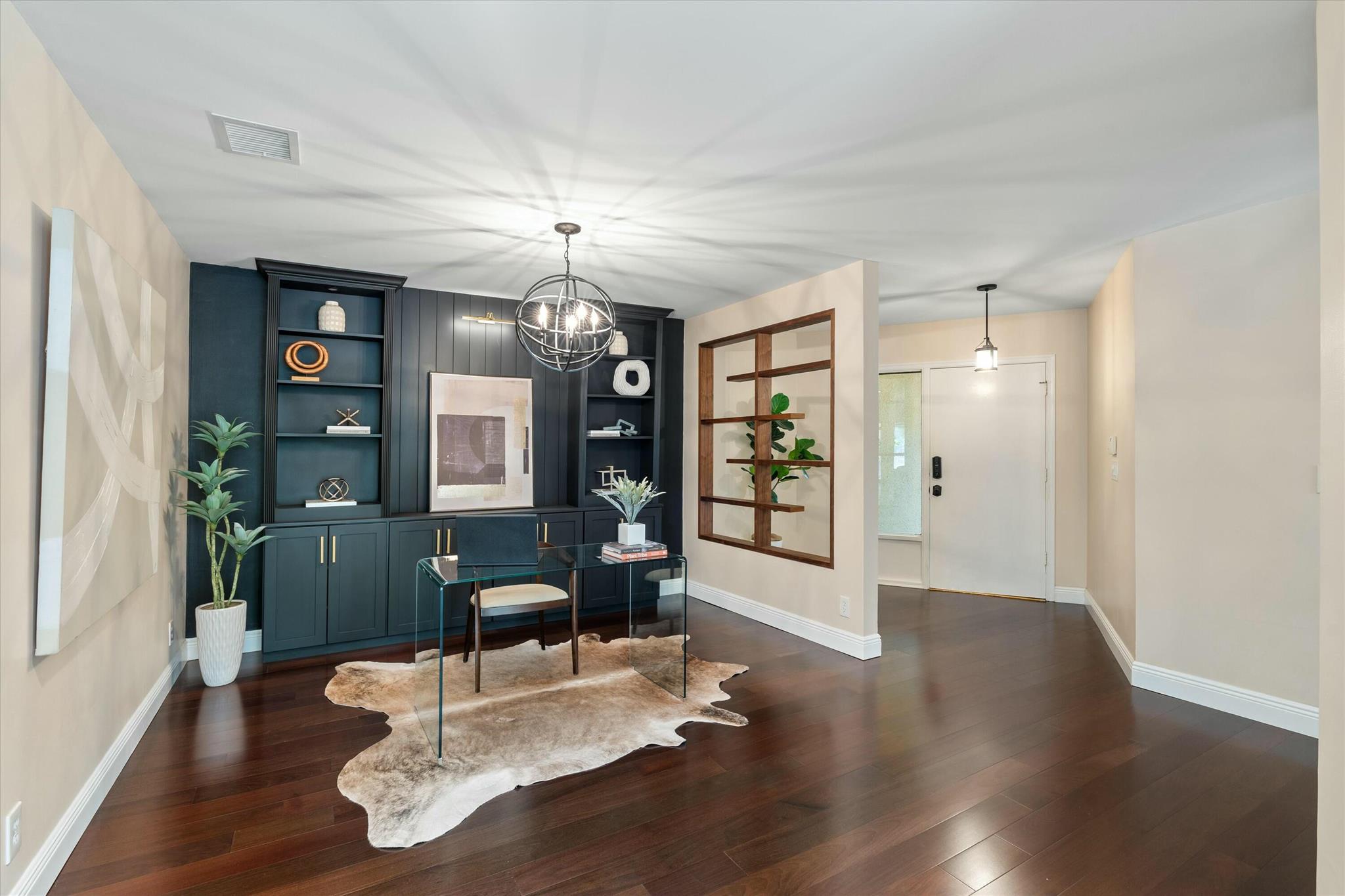 LARGEST townhome in the community! NO STEP DOWNS!!! Brazilian walnut engineered hardwood flooring throughout. large windows, lots of sunshine makes this unit bright and airy!! Soaring ceilings, large rooms, open staircase, tons of kitchen cabinets. Beautiful home office. Whimsical, secret-garden like landscaping with corner lagoon view. Primary suite has large professionally outfitted walk-in closet, Large marble bathroom with double sinks, dressing areas, separate shower and tub. Freshly painted 2+ car garage. Within walking distance to FAU Campus and Baptist/Hospital Boca Campus, 3 miles or 7 mins to the BEACH!! Close to shopping, restaurants, Mizner Park, the new Boca library, Boca Museum and I-95. This is a very special, sophisticated home.