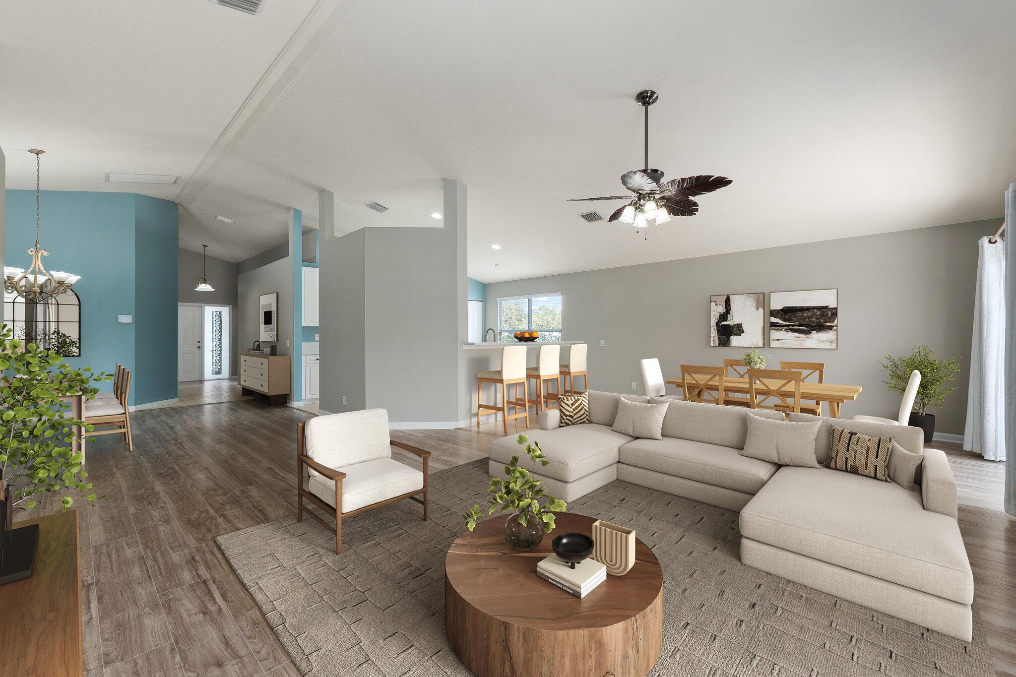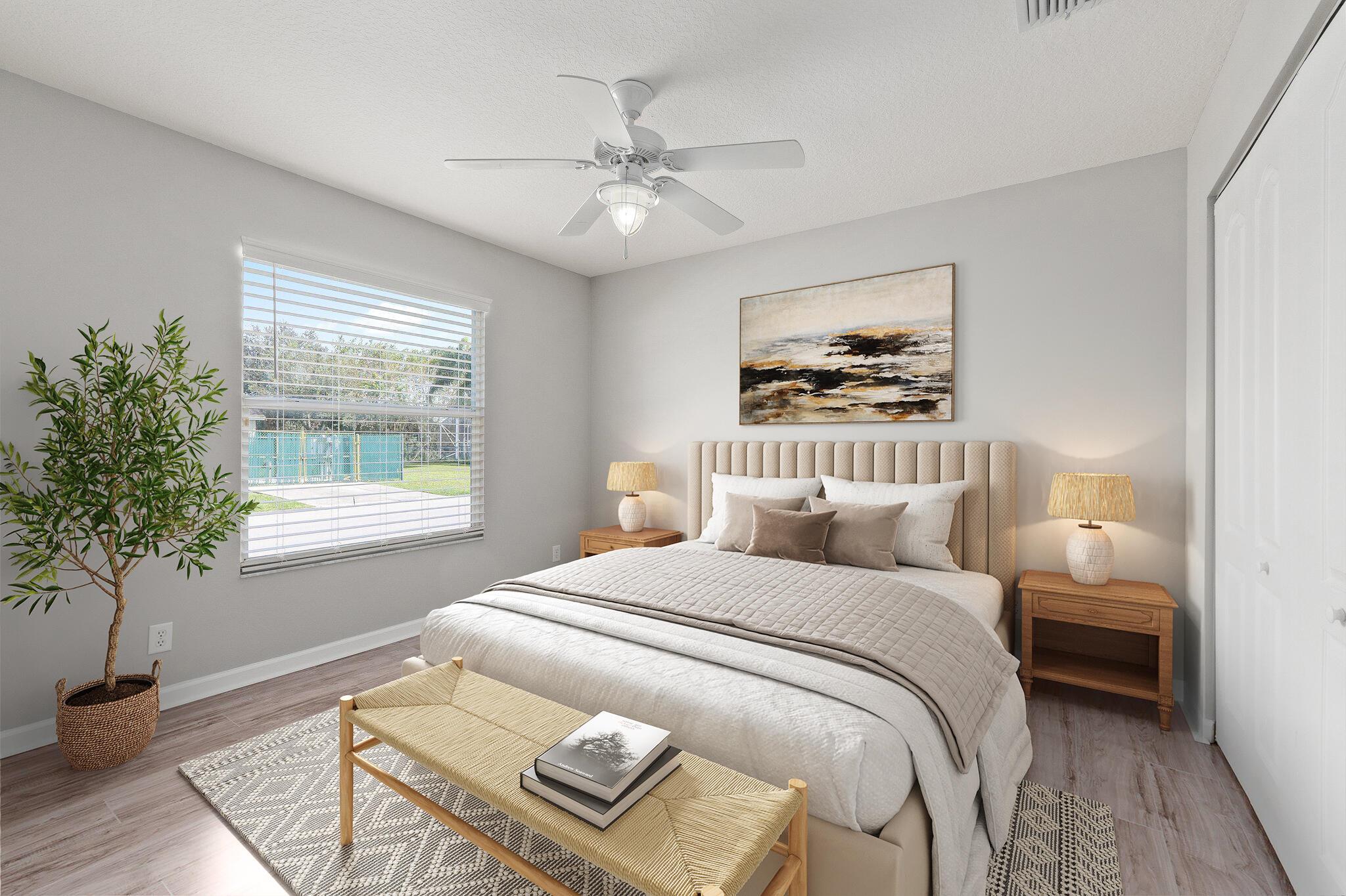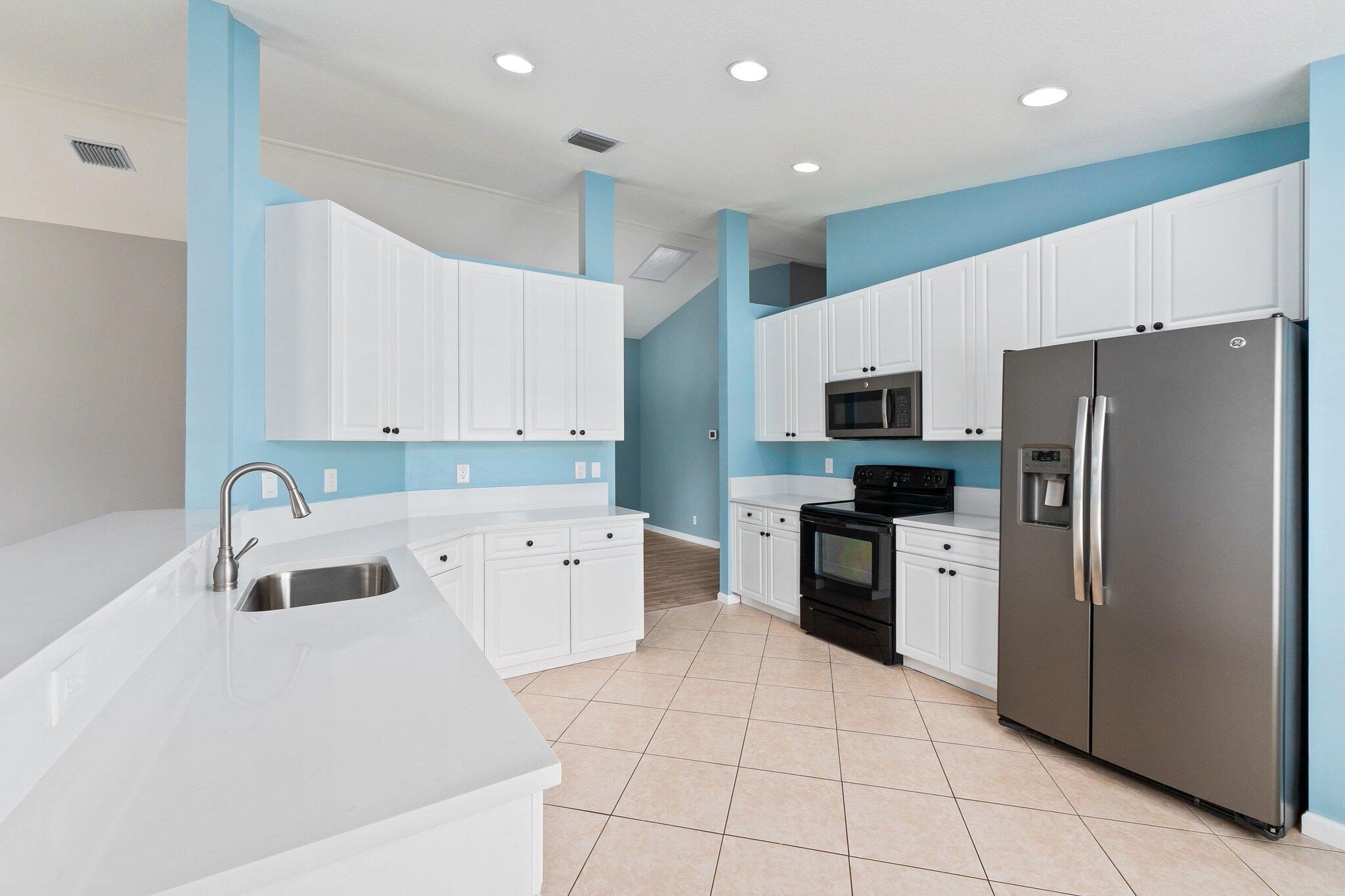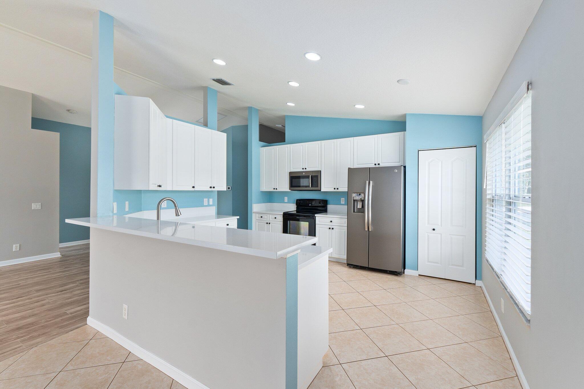 Welcome to this newly renovated 4-bedroom, 2-bathroom home where an open floor plan with vaulted ceilings creates a bright and airy space. Located in the desirable boating community of River Forest, this home is built with solid poured concrete reinforced with steel--three times stronger than standard CBS and topped with a sturdy 2018 metal roof. Ideally situated at the end of a quiet dead-end street, this home offers exceptional privacy with no front-facing neighbors, just a serene view of lush trees. Inside, the split-bedroom layout provides versatility and generous sized rooms. The primary suite features his-and-her closets with built-ins, an upgraded shower, and dual vanities. The kitchen, laundry room, and master bathroom have all been upgraded with stunning quartz countertops. The