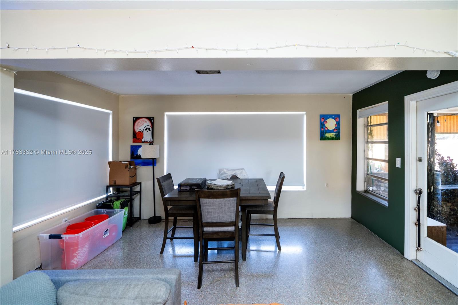 This super-clean home is packed with fantastic features! A versatile room can be used as an office, hobby room, exercise room,. The master bedroom includes a cedar walk-in closet, while the second bedroom boasts an oversized closet. The newly updated master bath, new light fixtures, and blackout blinds add a fresh, modern touch. Step outside to a large, fully fenced backyard with plenty of room for a pool. A storage shed and an automatic pump and sprinkler system make maintenance easy. Beautiful terrazzo floors flow throughout the home, and the screened patio is perfect for relaxing. Both the kitchen and bathrooms have been upgraded, and hurricane panels are included for all windows and doors. easy access to beaches and highways.