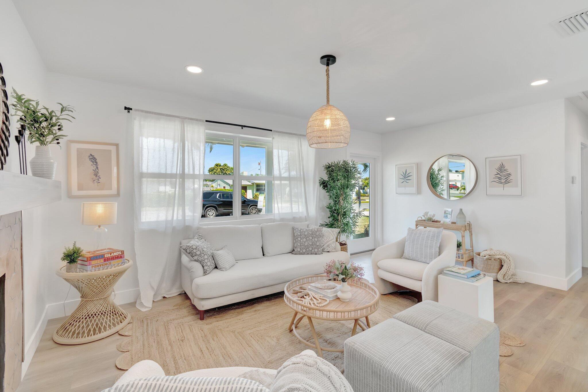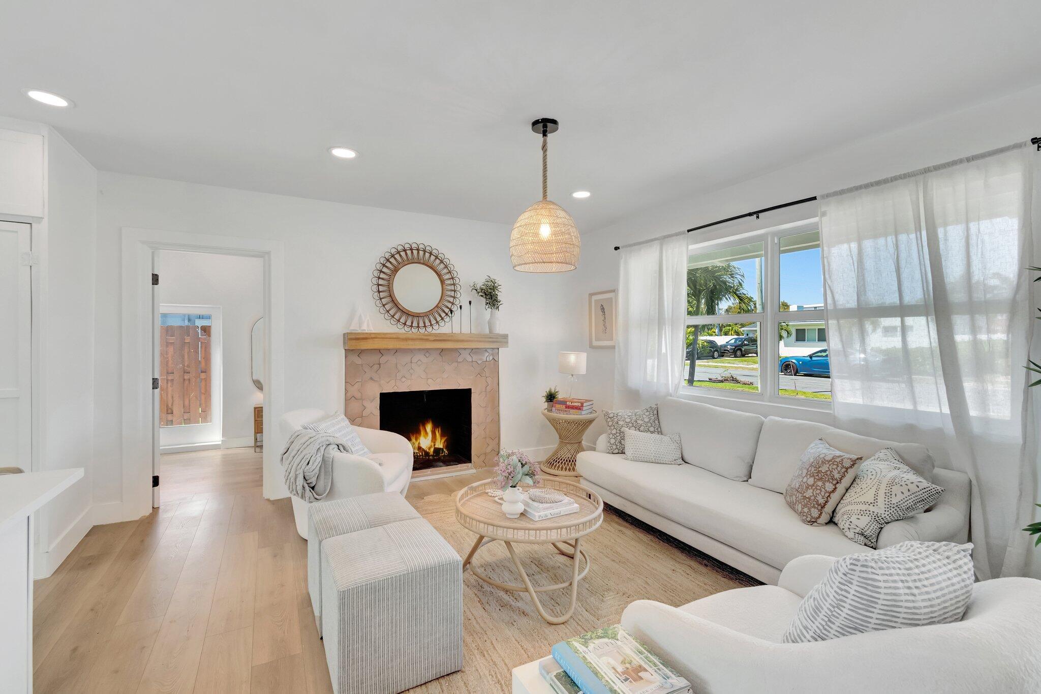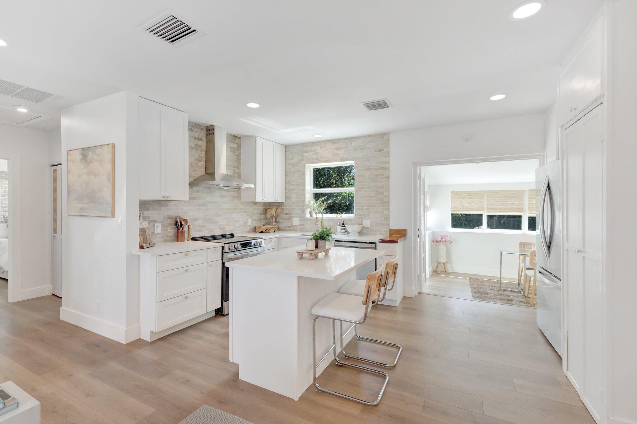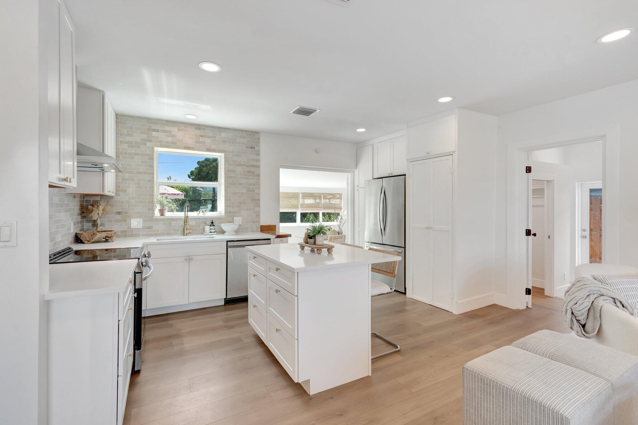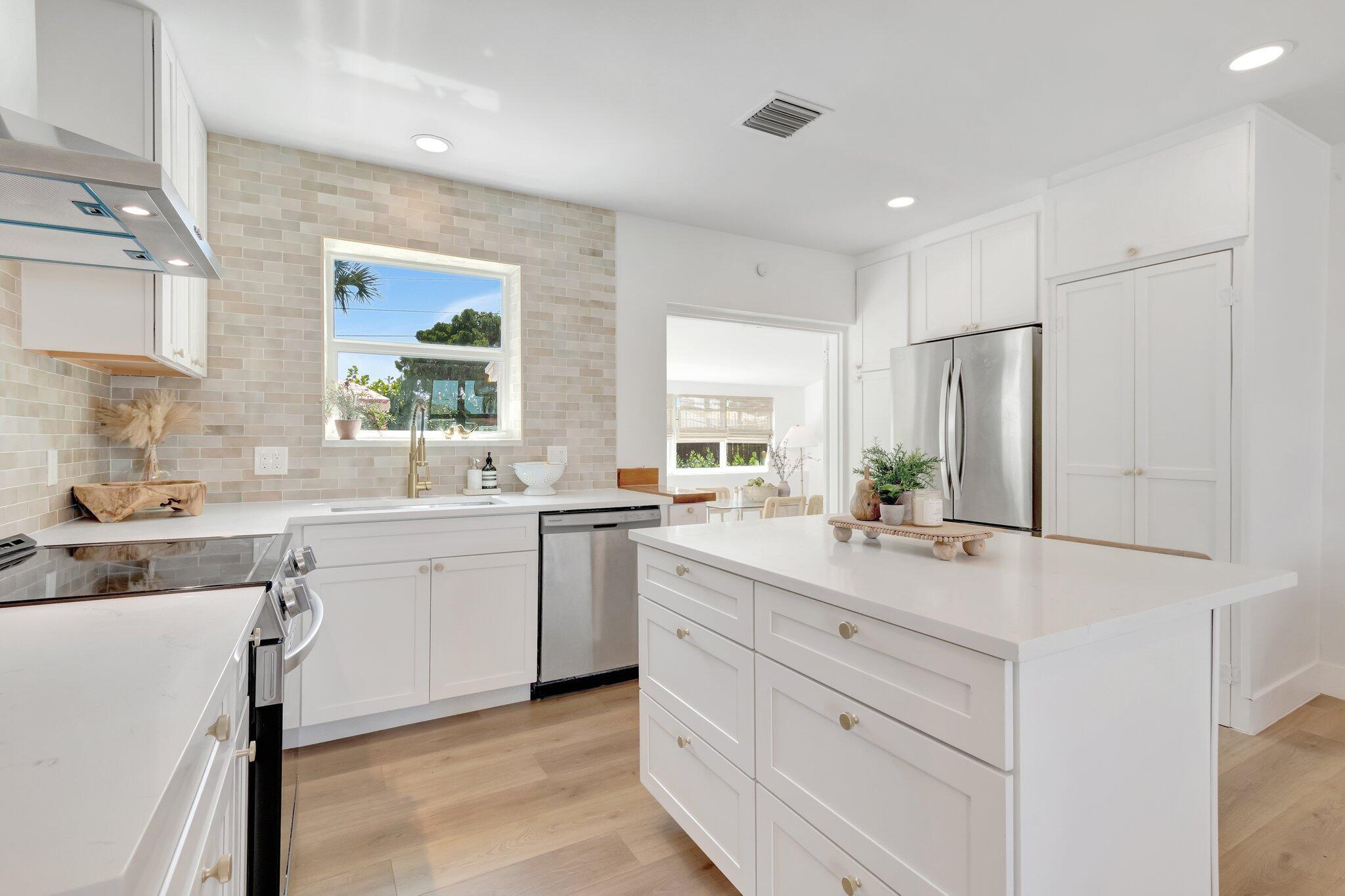 Located in the highly sought-after SOSO neighborhood of West Palm Beach, this beautifully renovated home offers the perfect blend of modern elegance and prime location. Just moments from the scenic Intracoastal Waterway, residents can enjoy waterfront walks, top-rated dining, and easy access to downtown West Palm Beach and Palm Beach Island. This home has been thoughtfully updated with high-end finishes throughout, including a brand-new roof, impact windows, and doors. The interior features wide plank wood laminate flooring, new appliances, and brand-new quartz countertops in the kitchen and bathrooms.
