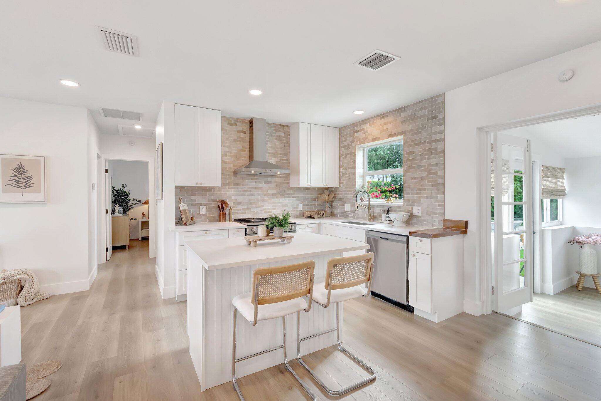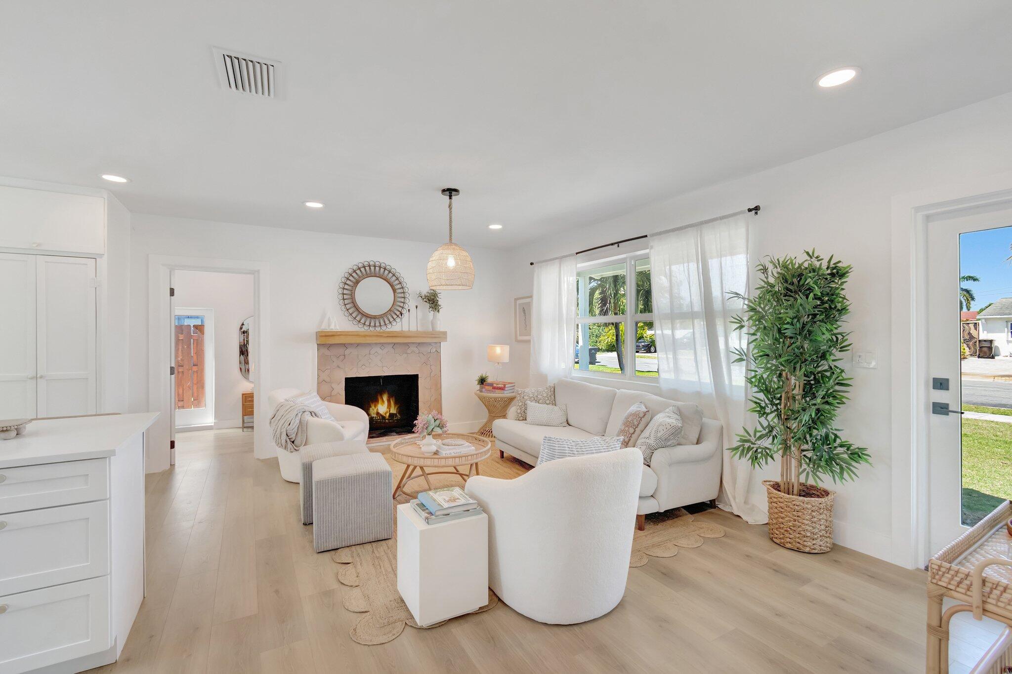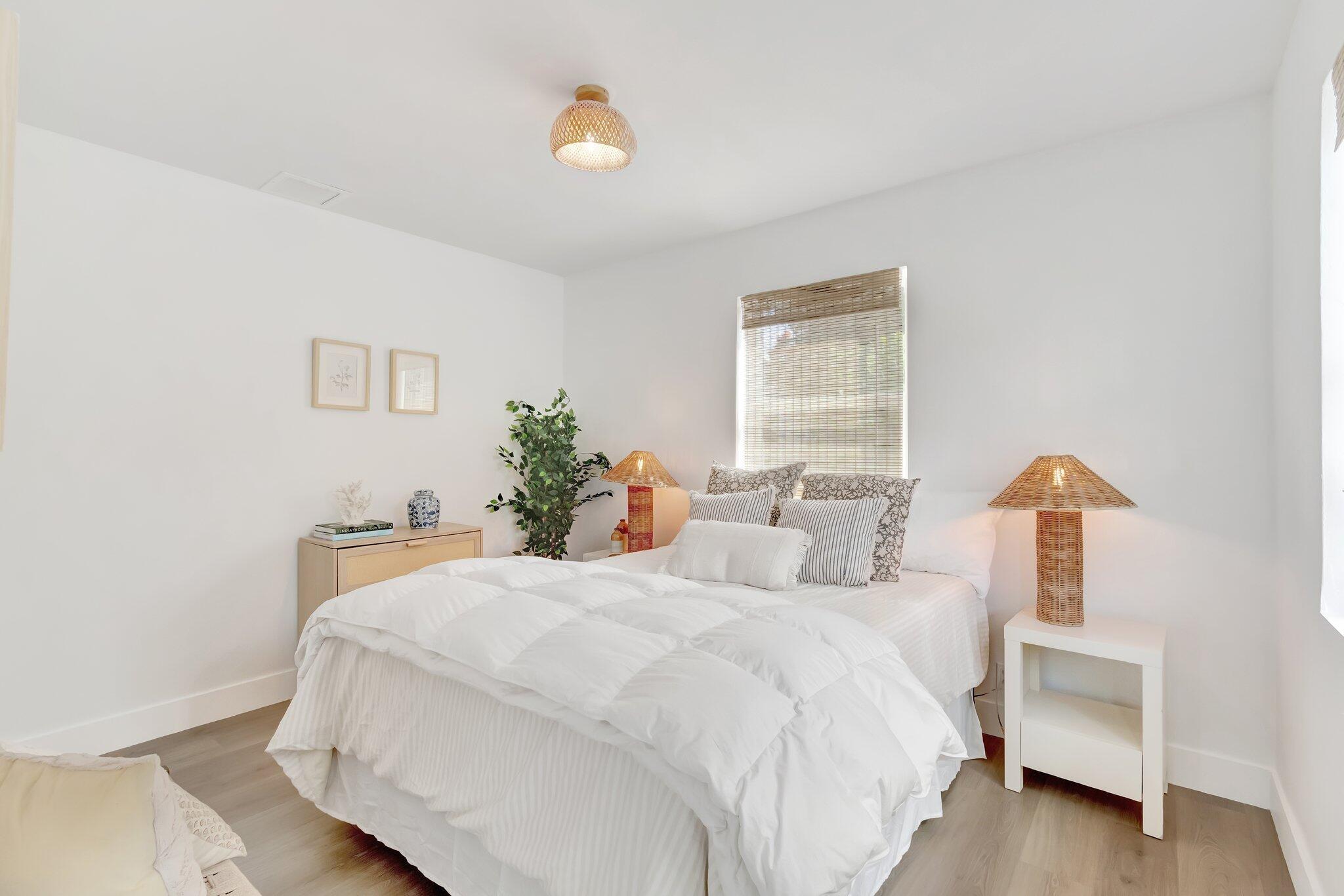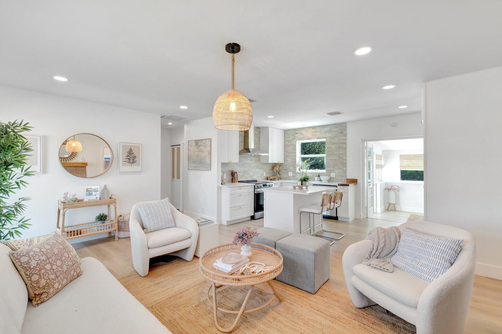 Located in the highly sought-after SOSO neighborhood of West Palm Beach, this beautifully renovated home offers the perfect blend of modern elegance and prime location. Just moments from the scenic Intracoastal Waterway, residents can enjoy waterfront walks, top-rated dining, and easy access to downtown West Palm Beach and Palm Beach Island. This home has been thoughtfully updated with high-end finishes throughout, including a brand-new roof, impact windows, and doors. The interior features wide plank wood laminate flooring, new appliances, and brand-new quartz countertops in the kitchen and bathrooms.