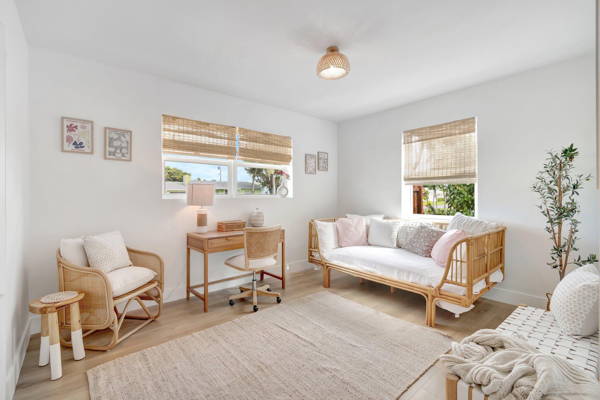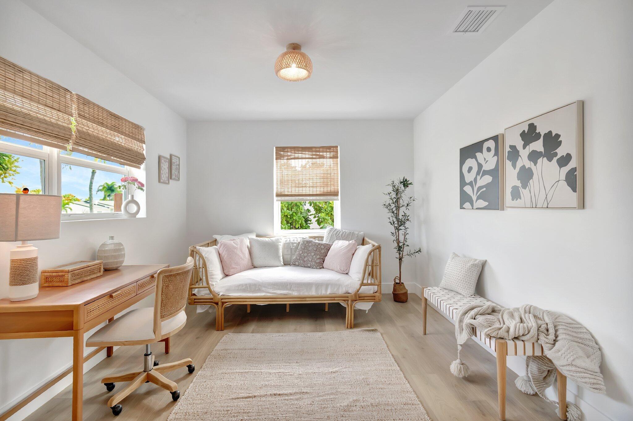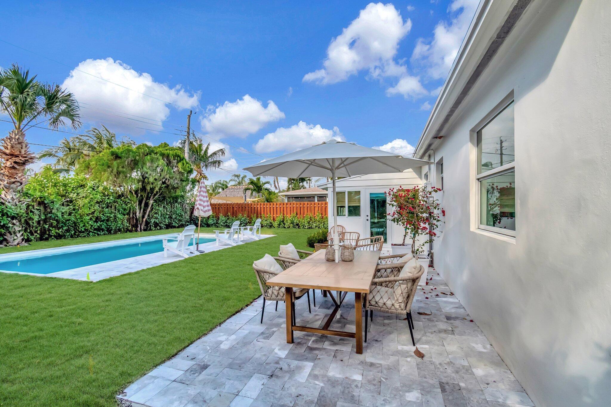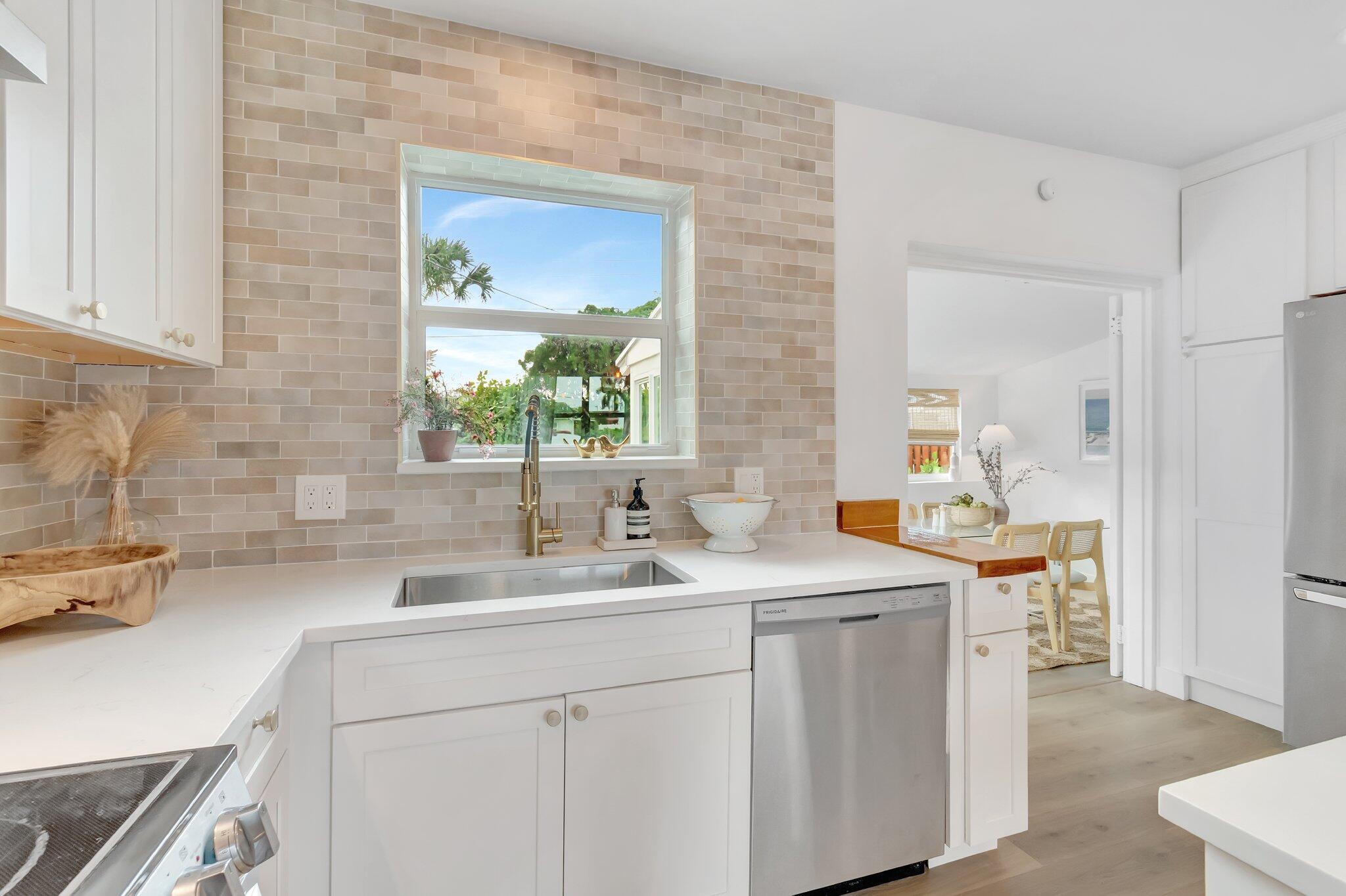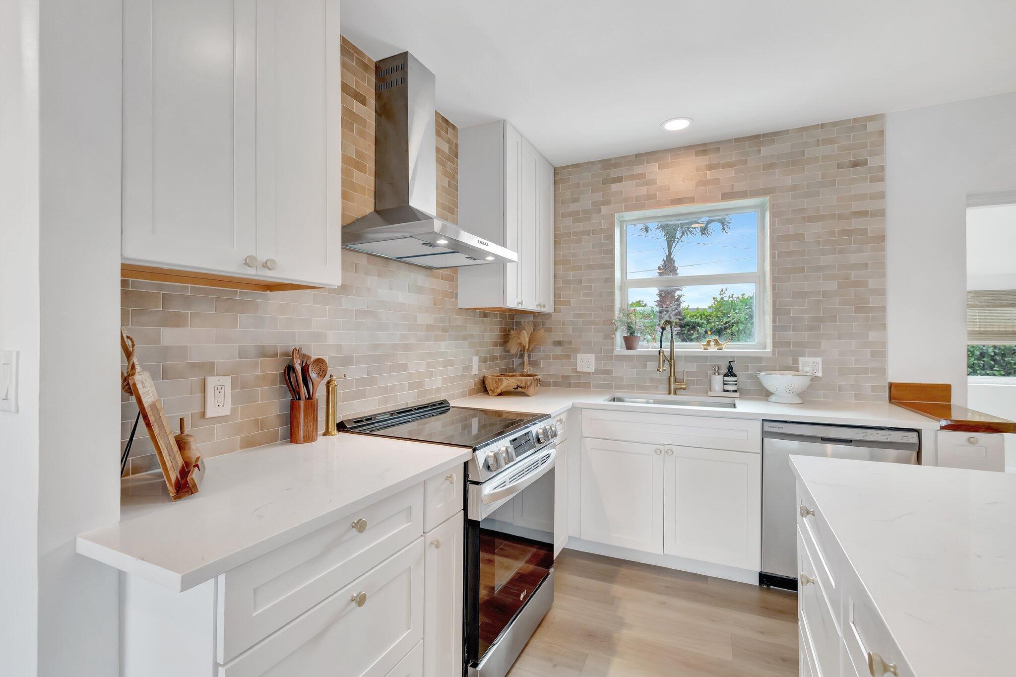 Located in the highly sought-after SOSO neighborhood of West Palm Beach, this beautifully renovated home offers the perfect blend of modern elegance and prime location. Just moments from the scenic Intracoastal Waterway, residents can enjoy waterfront walks, top-rated dining, and easy access to downtown West Palm Beach and Palm Beach Island. This home has been thoughtfully updated with high-end finishes throughout, including a brand-new roof, impact windows, and doors. The interior features wide plank wood laminate flooring, new appliances, and brand-new quartz countertops in the kitchen and bathrooms.