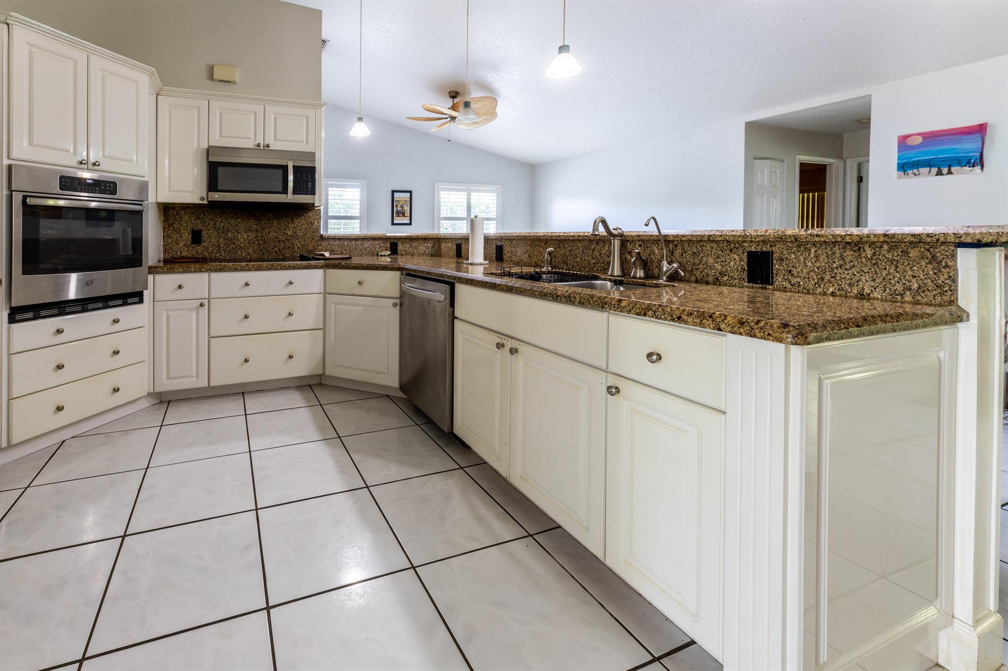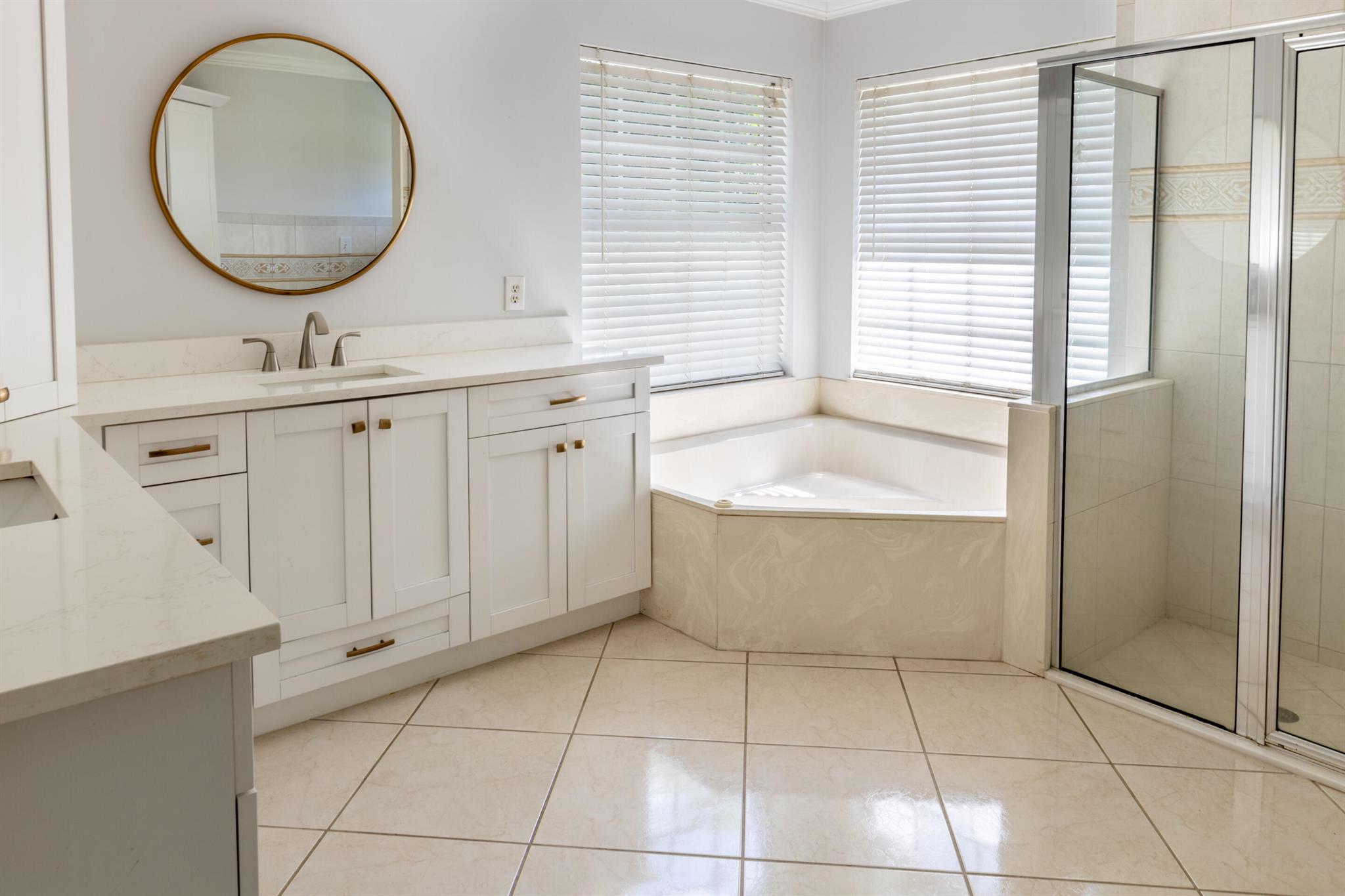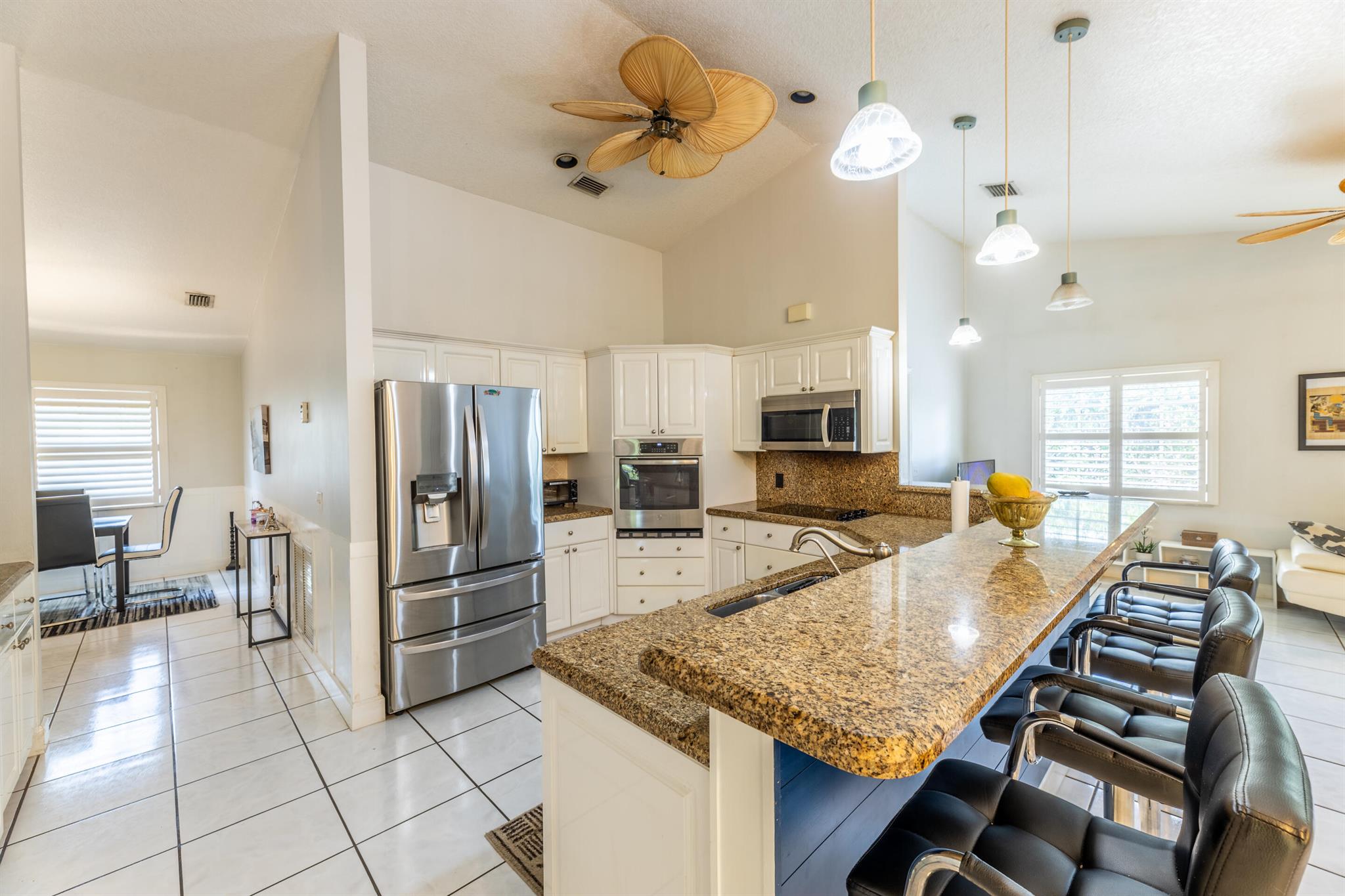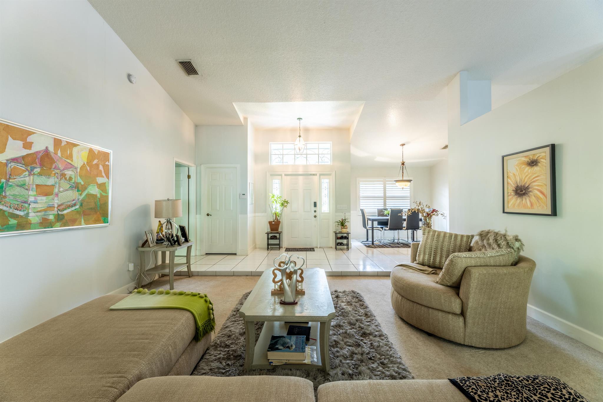 Make this spacious custom built ranch home located in Albert Lakes your own. Situated on .377 acres surrounded by lush landscaping, the fully fenced backyard has plenty of room for a pool, playset or both! The Chef's kitchen w/ stainless steel appliances, on trend white cabinetry, granite countertops, breakfast bar & eat in dining area opens to the spacious family room. Owner's suite is dreamy & large & has a walk-in closet with built ins. Recently updated en suite bath w/ dual vanities, soaking tub & a standing shower with neutral tiling. The split floor plan offers 2 additional bedrooms that share an updated full bath on the opposite end for maximum privacy. Conveniently located minutes to 1-95, shopping, dining, hospitals, schools, PBI airport & the beach.