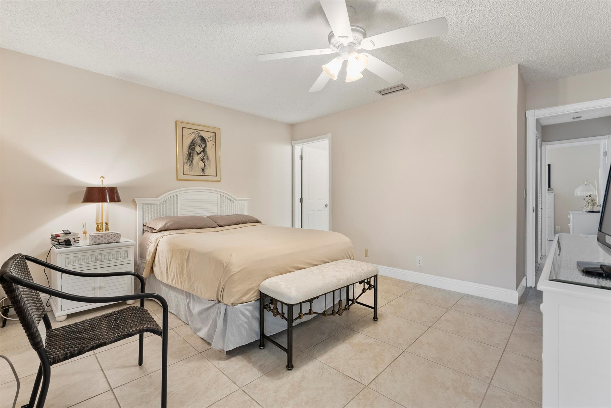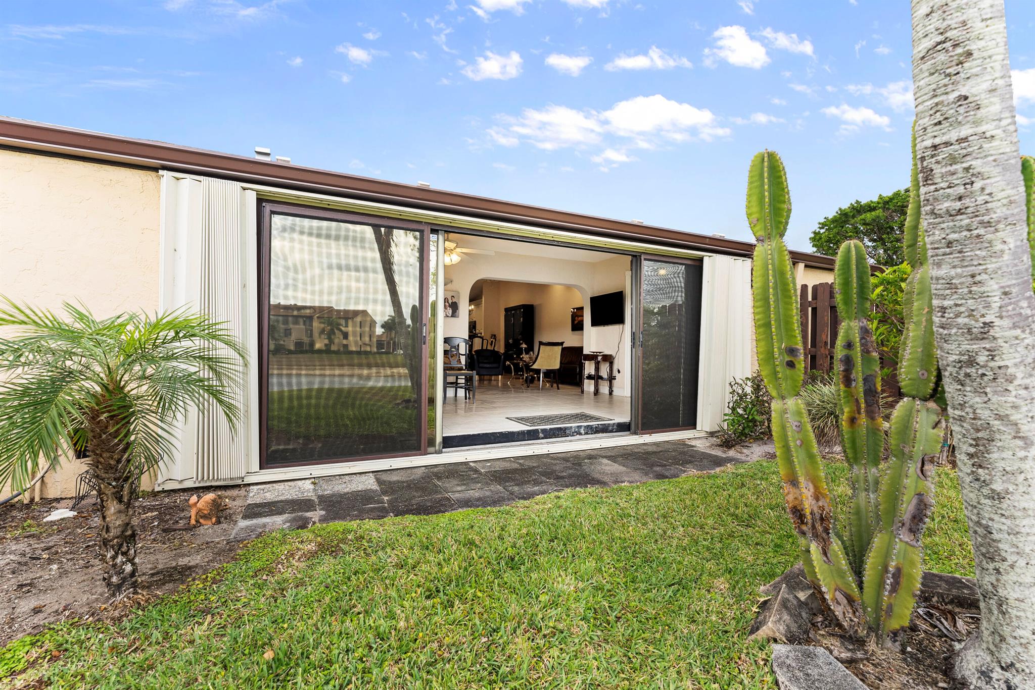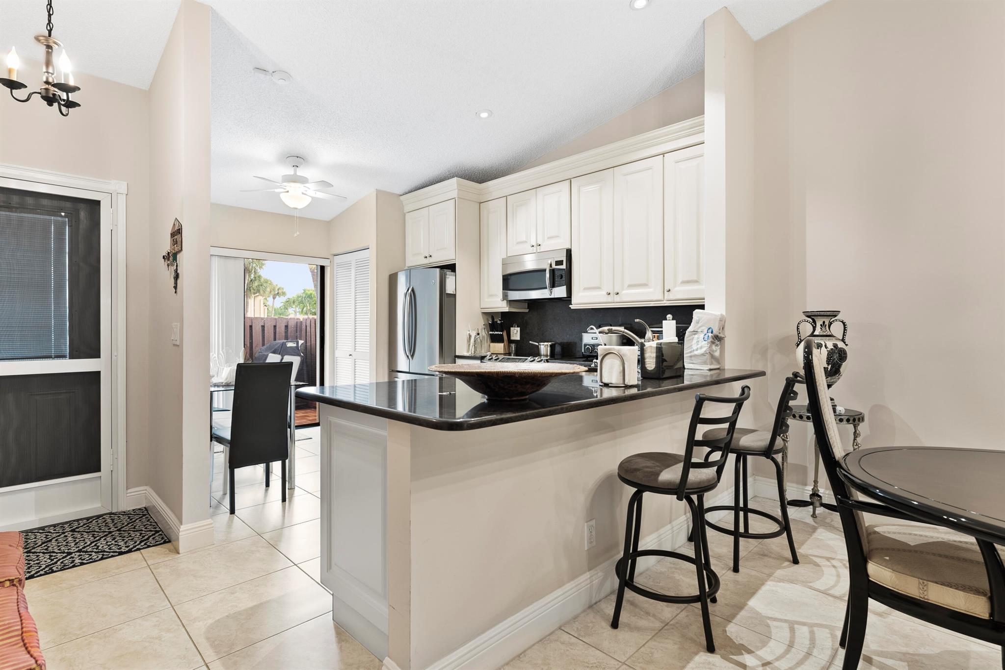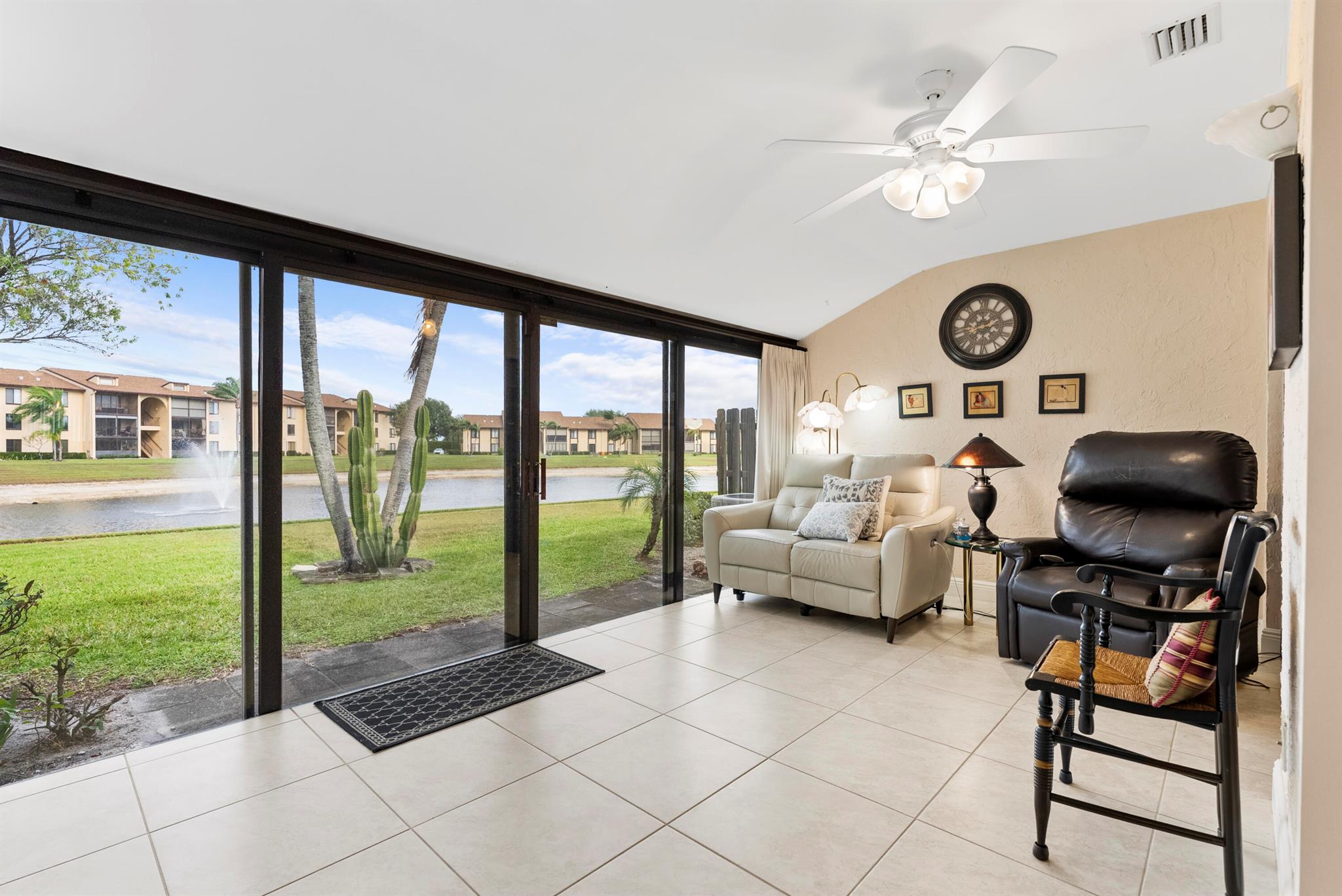 Welcome to your dream home in the heart of South Florida's vibrant 55+ community, Pine Ridge North in Greenacres! This well-maintained 2-bedroom, 2-bath villa offers over 1,300 sq. ft. of comfortable living space with breathtaking lake views. Begin your day with coffee on the porch The villa boasts a bright eat-in kitchen with white appliances and cabinetry, creating an inviting atmosphere. The open-concept living and dining areas are ideal for entertaining. Enjoy the convenience of an in-unit washer and dryer. Your dedicated parking spot is right in front of the home, leading to a beautifully tiled entryway. Experience the active lifestyle that Pine Ridge North has to offer!