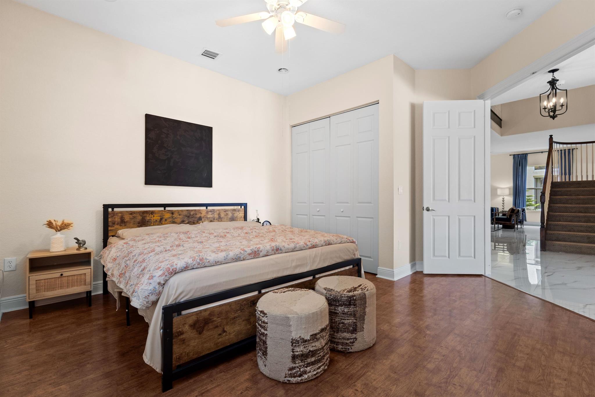 Welcome to your oasis, a hidden gem nestled in west Boca Raton. This highly desired Chateau Lafite model with Veranda offers a unique blend of comfort, style, and utility. The spacious layout is thoughtful and versatile, featuring a 1st floor bedroom that can also serve as a home office, library, or den. The primary suite is a haven of relaxation, complete with dual walk-in closets and a luxurious bathroom featuring dual sinks, a separate shower, and an oversized tub. This suite, along with a guest/second bedroom, grants access to a full-length screened veranda, offering tranquil views of the tranquil pool area and untouched preservation land - a perfect spot for your morning coffee or evening read.