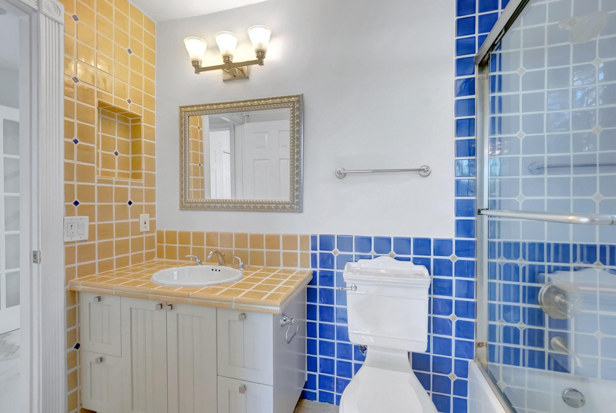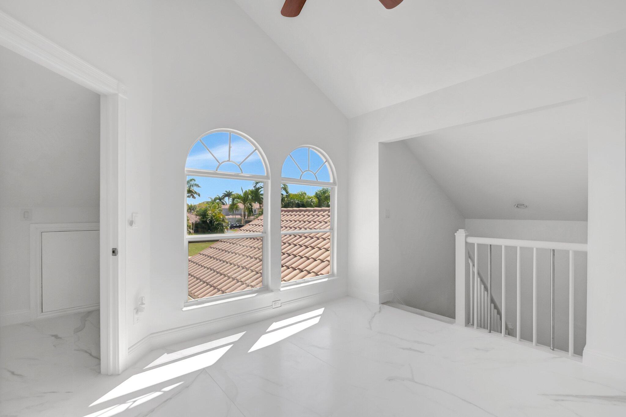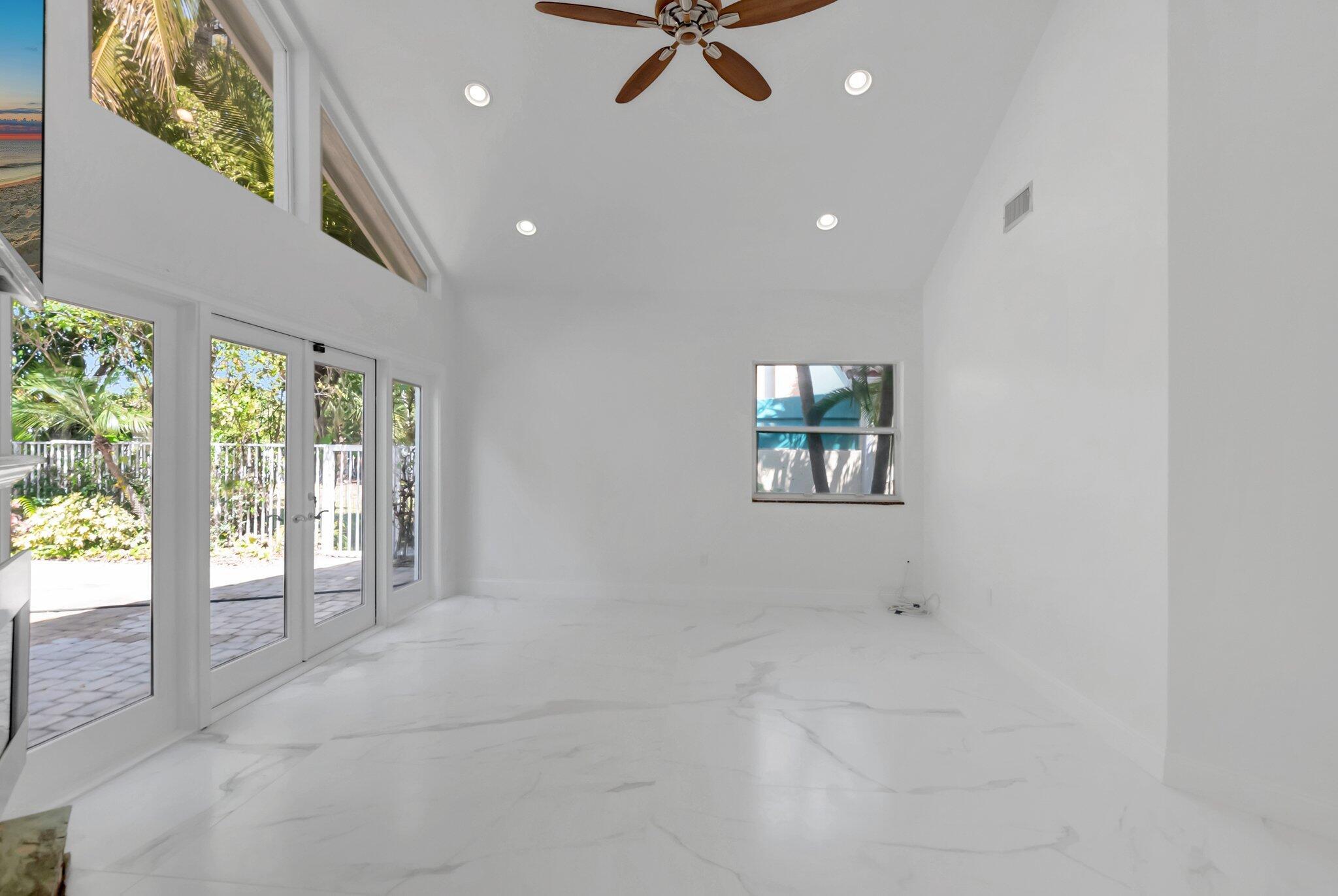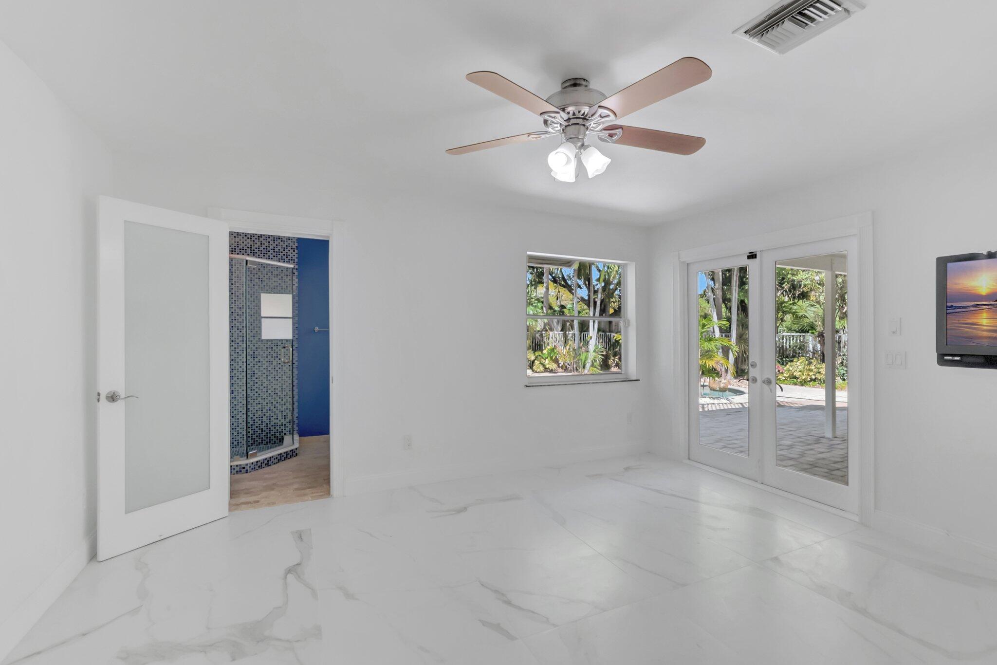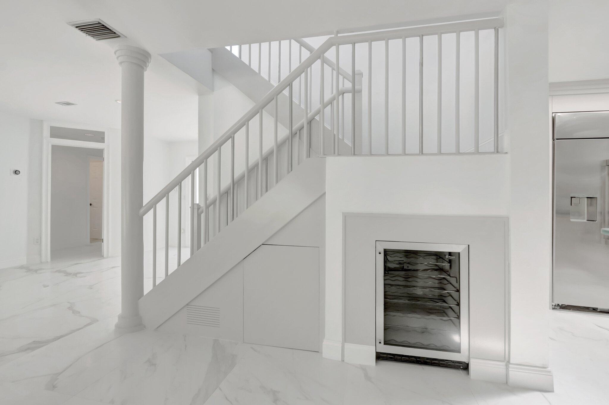 Fantastic home in a prime location! Features include Chicago brick driveway, tropical landscape, new flooring, S Tile roof (2015), A/C 2016 and 2017, Certainteed Residential Solar Tiles, large front yard, vaulted ceilings, freshly painted interior and exterior, stone fireplace with electric insert, kitchen cabinets were professionally painted, GE monogram refrigerator, Jenn Air double ovens, built in wine fridge, decorative glass cabinets, open floorplan with great space for entertaining, Good size primary bedroom with large bathroom, walk in closet, and a balcony. The back yard is a tropical paradise with a kidney shaped pool with tropical landscape, pavers, tiki bar, pool and spa are heated. All of this within walking distance to shops, restaurants and places of worship